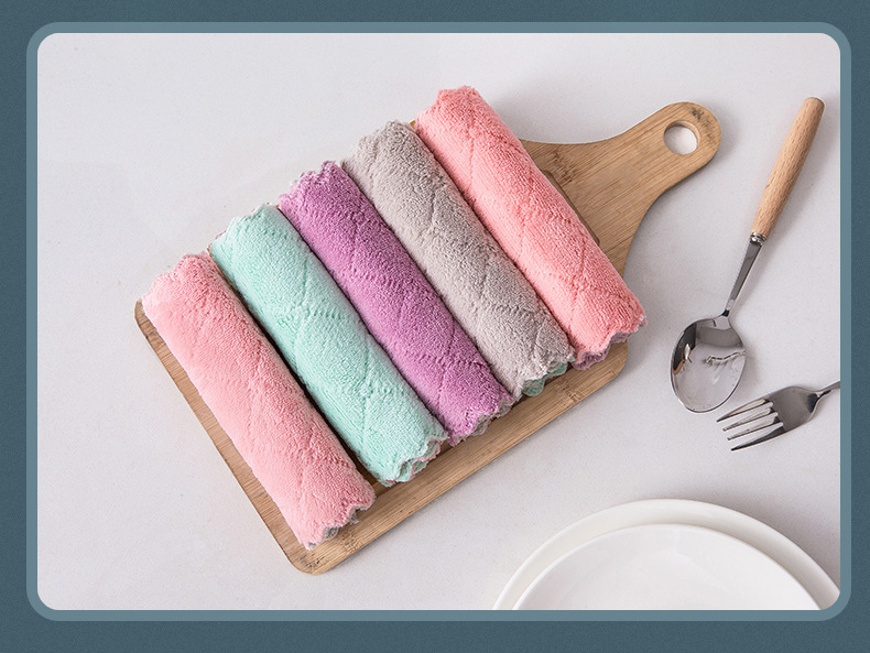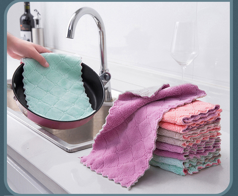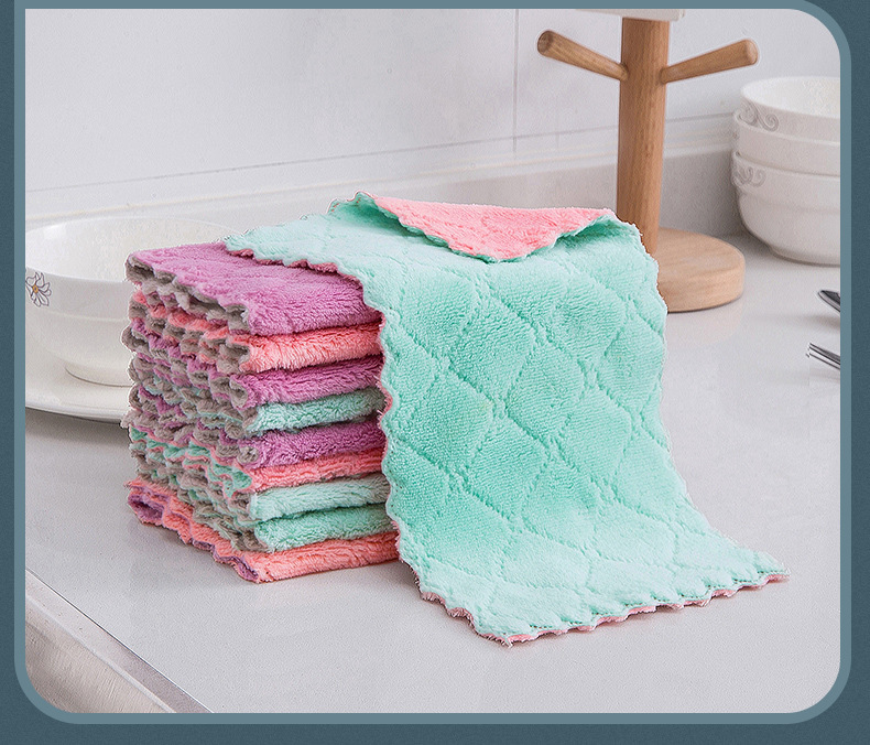 두꺼운 산호벨벳 청소포, 물을 흡수하고 기름이 묻지 않으며 얼룩 제거, 가정용 설거지 수건, 설거지 천, 보푸라기 없는 다용도 수세미