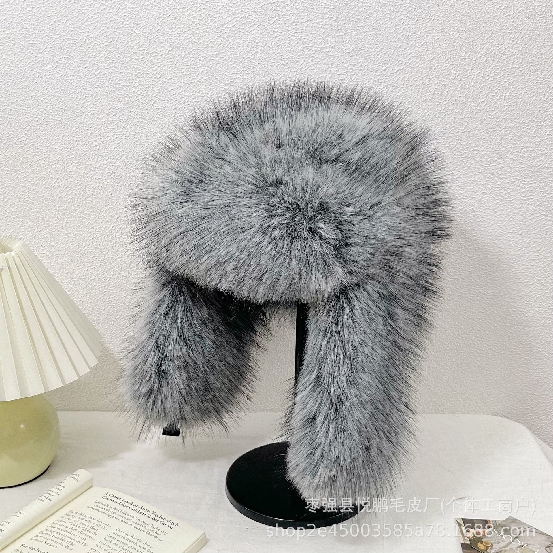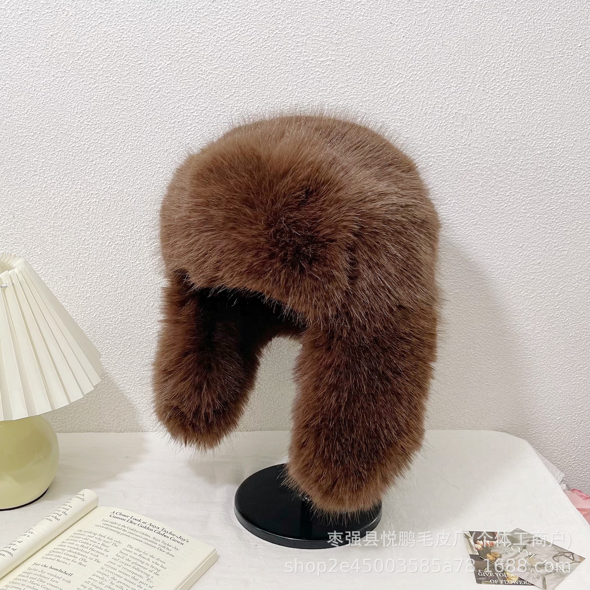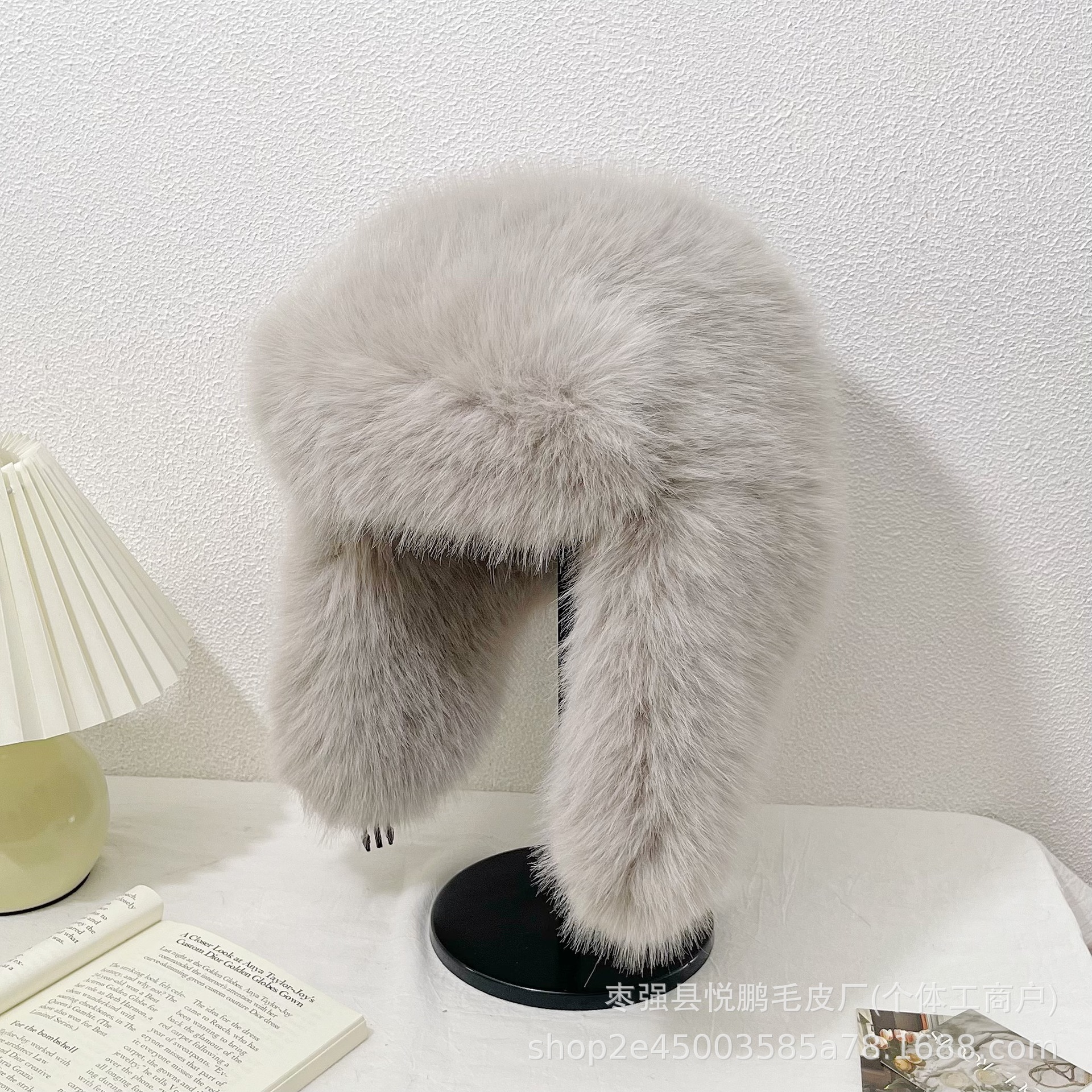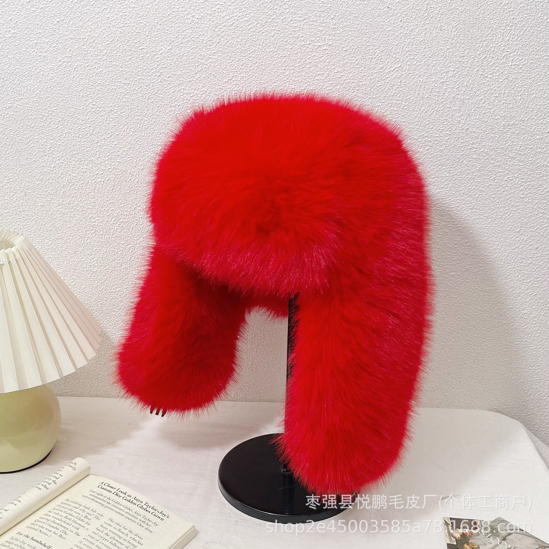 여성용 Maomao Lei Feng 새 모자, 두껍고 따뜻한 후드, 모조 가죽 여우 크로스보더 눈 모자, 방한 귀 보호 모자