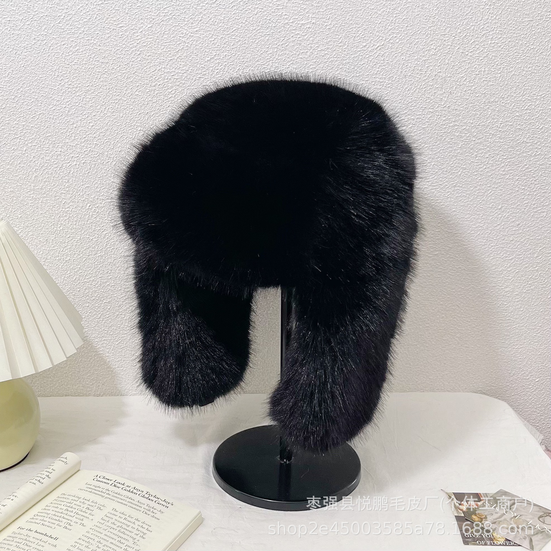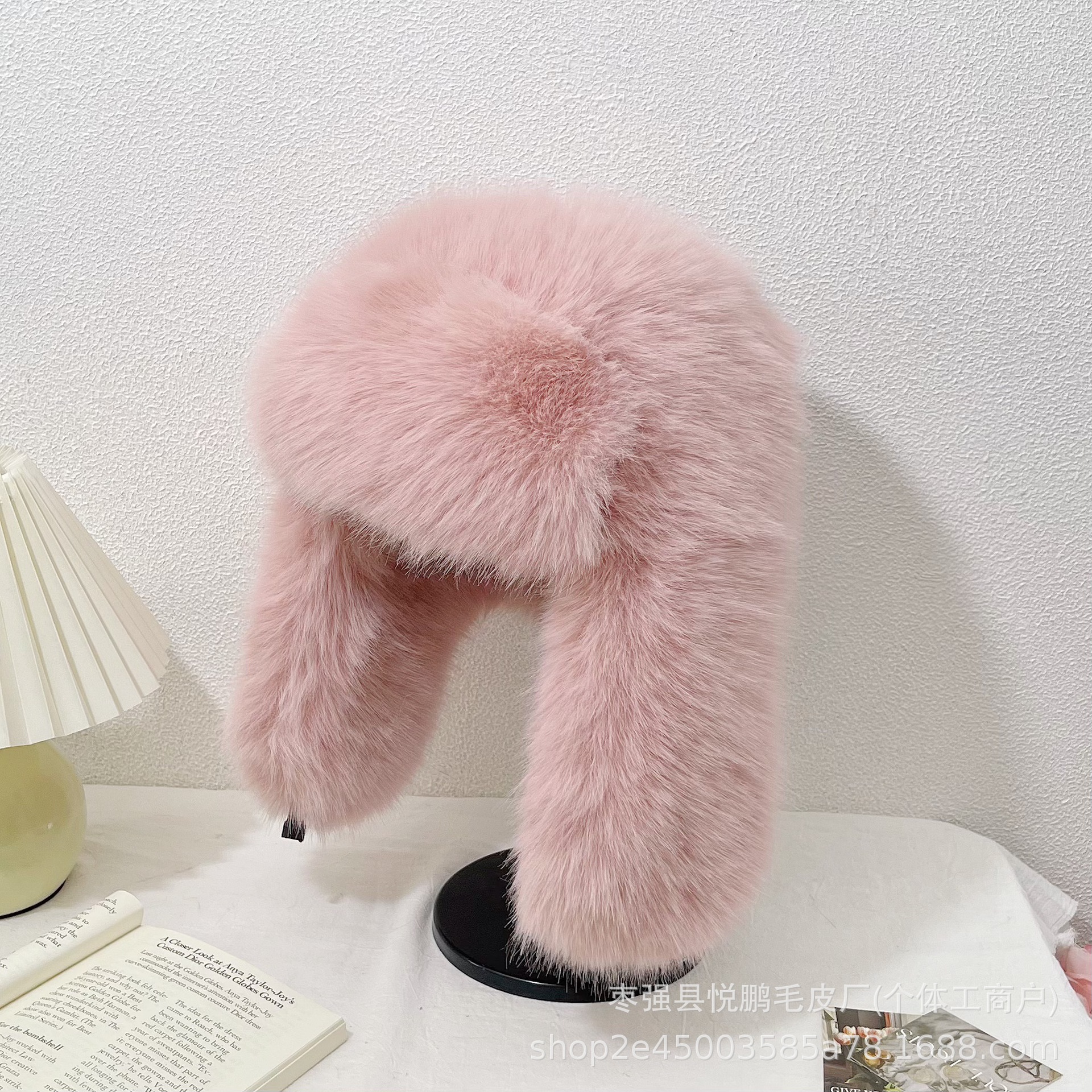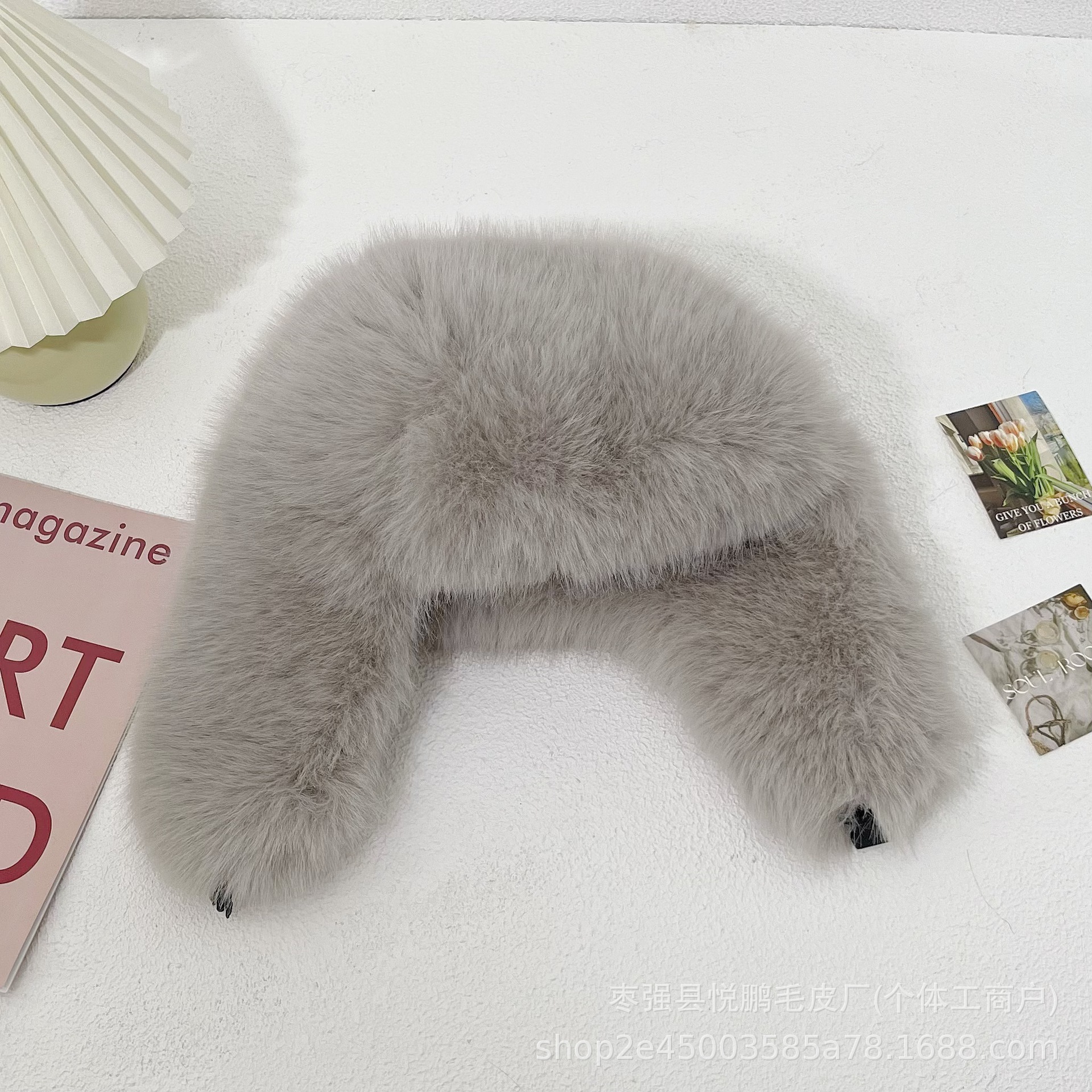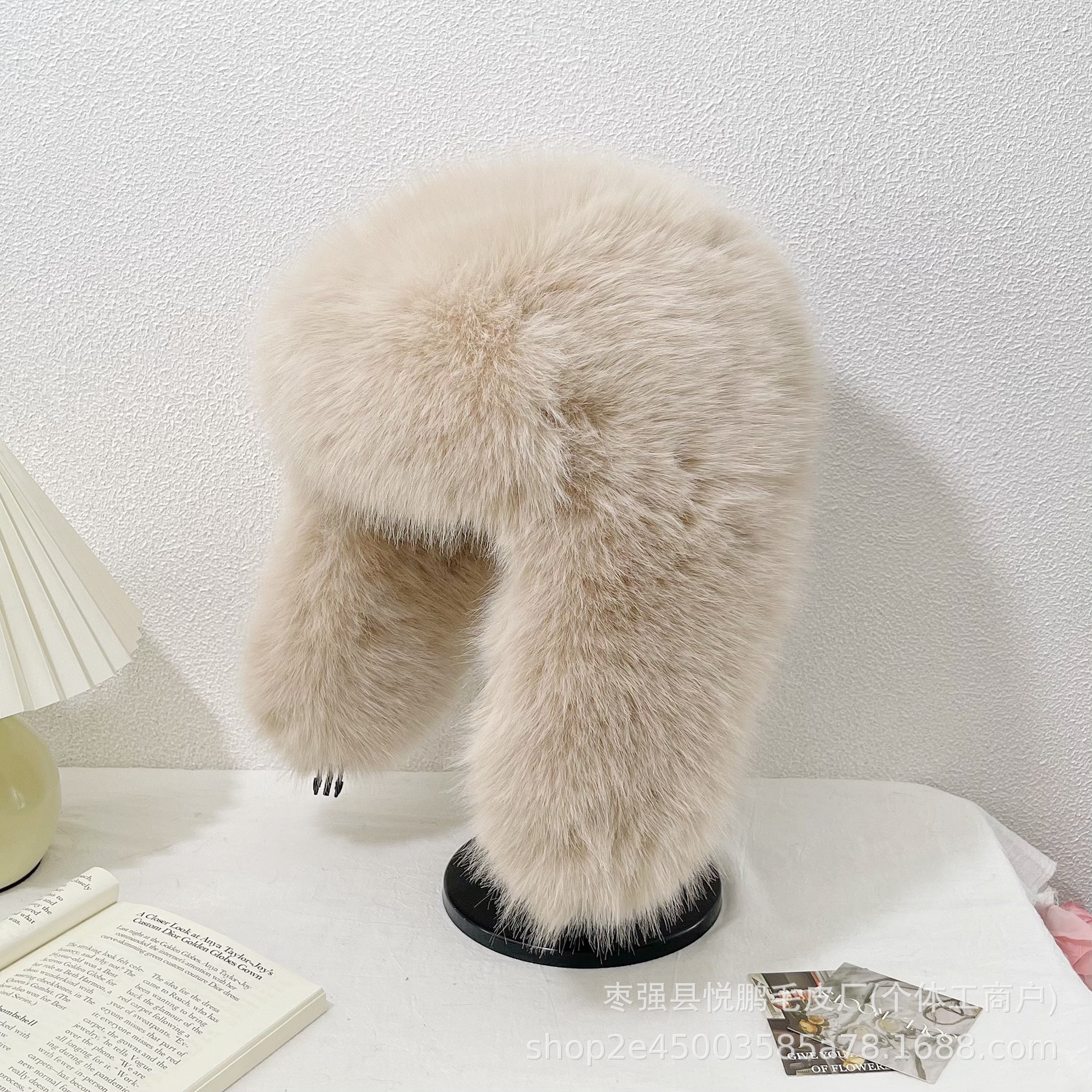 여성용 Maomao Lei Feng 새 모자, 두껍고 따뜻한 후드, 모조 가죽 여우 크로스보더 눈 모자, 방한 귀 보호 모자