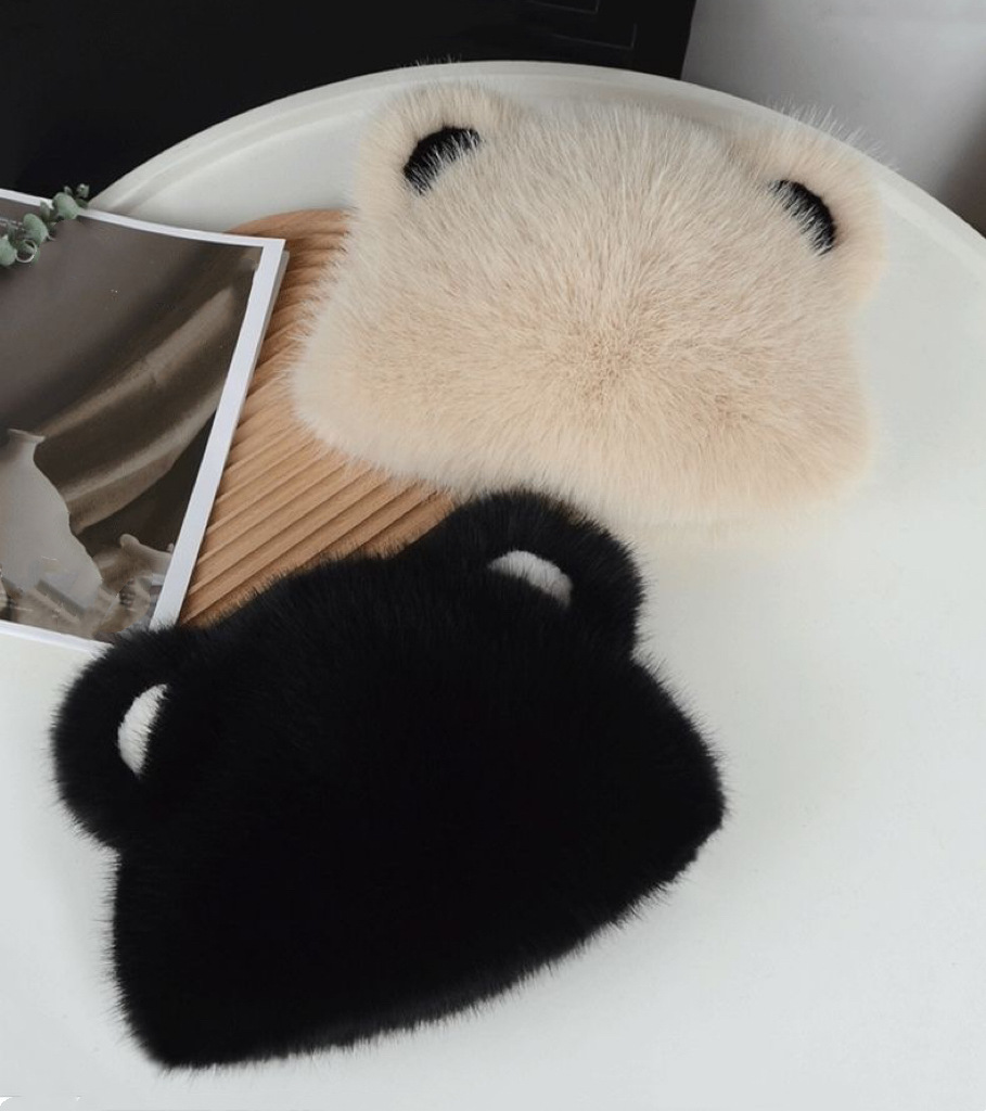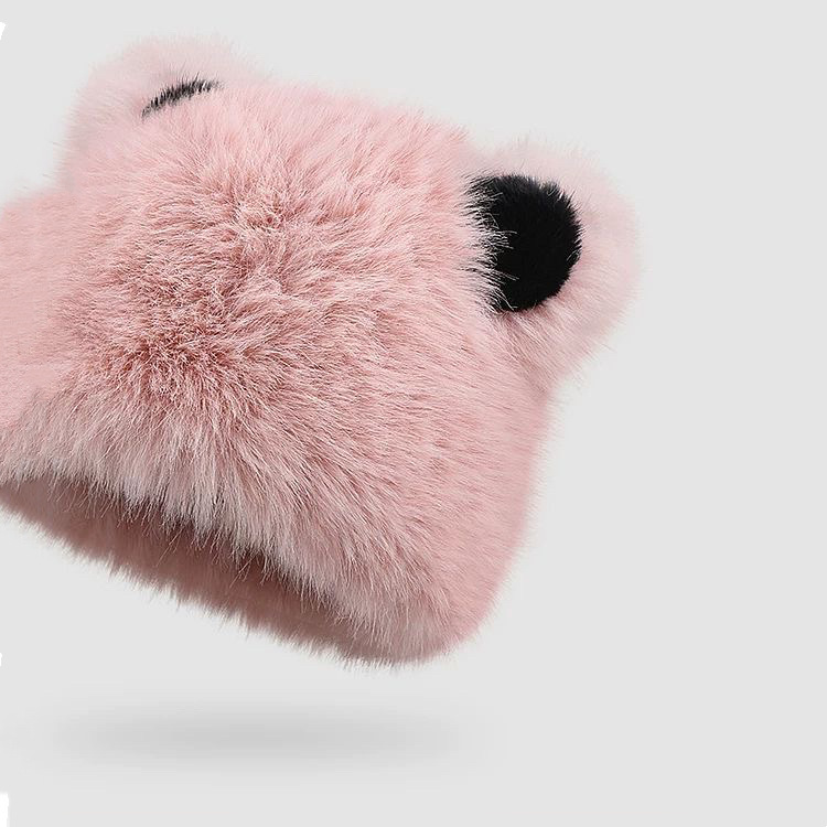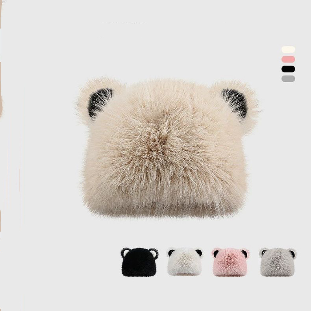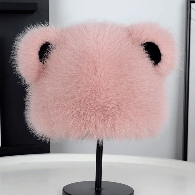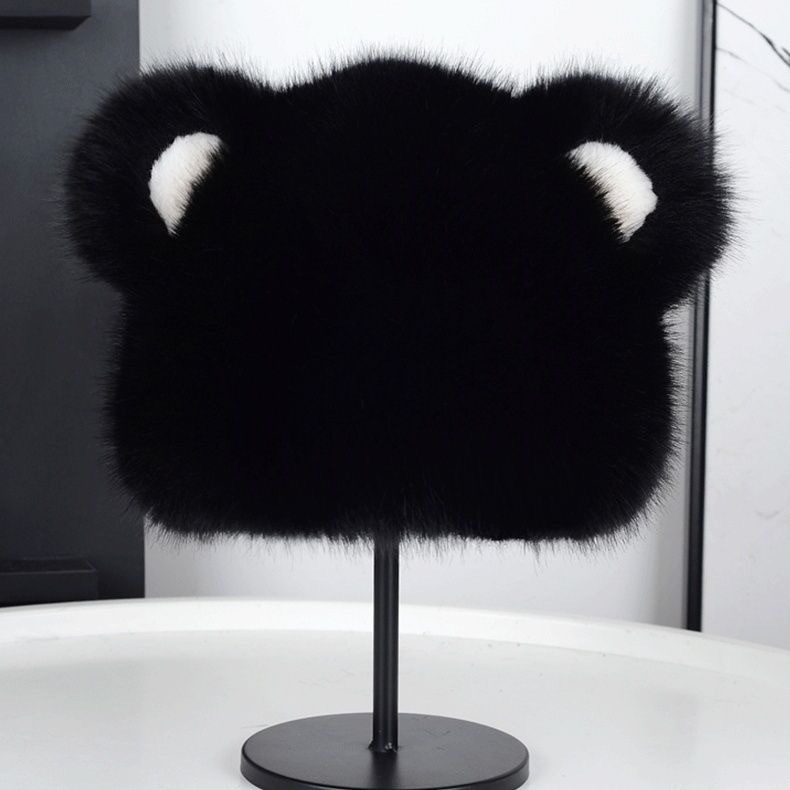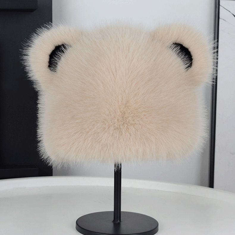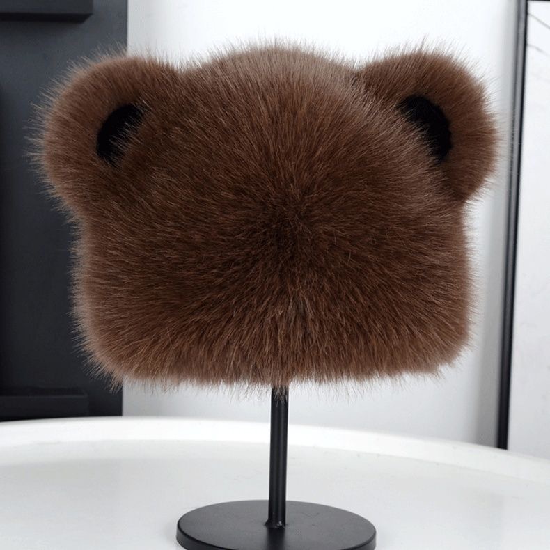 곰돌이 귀 모양의 플러시 모자, 두껍고 따뜻하며 패셔너블한 인조 여우털 모자, 독특한 디자인, 다용도로 활용 가능한 스타일리시한 벙거지 모자