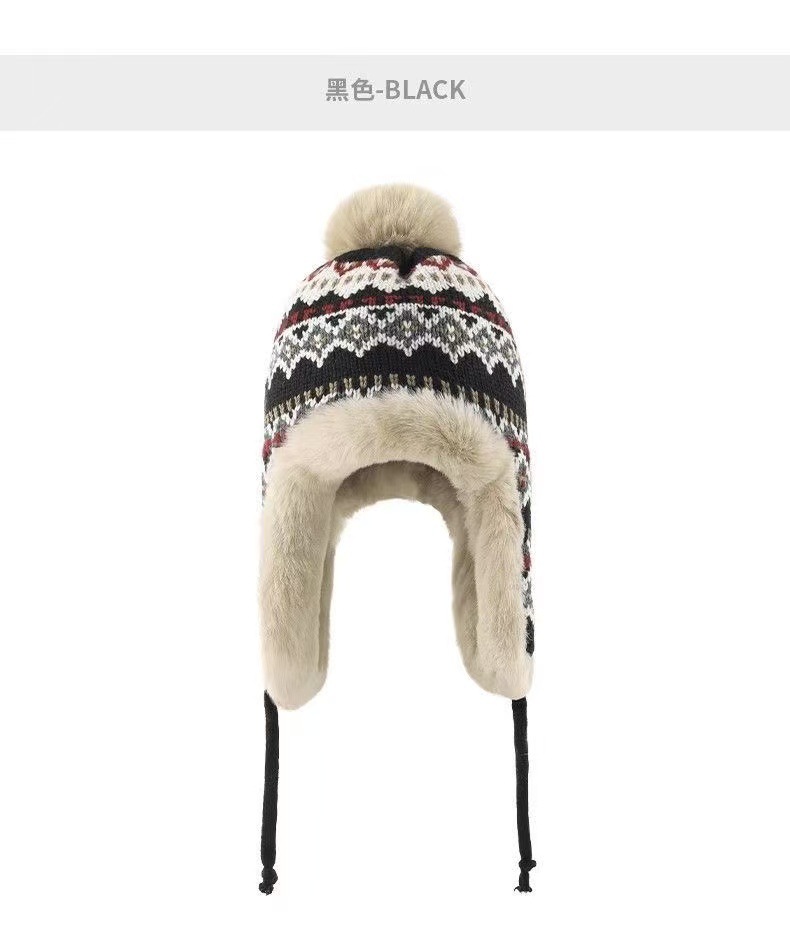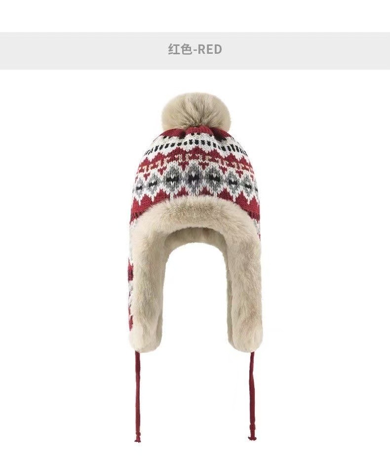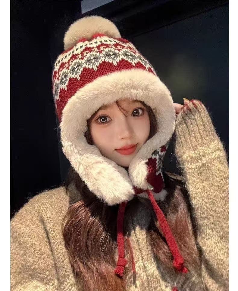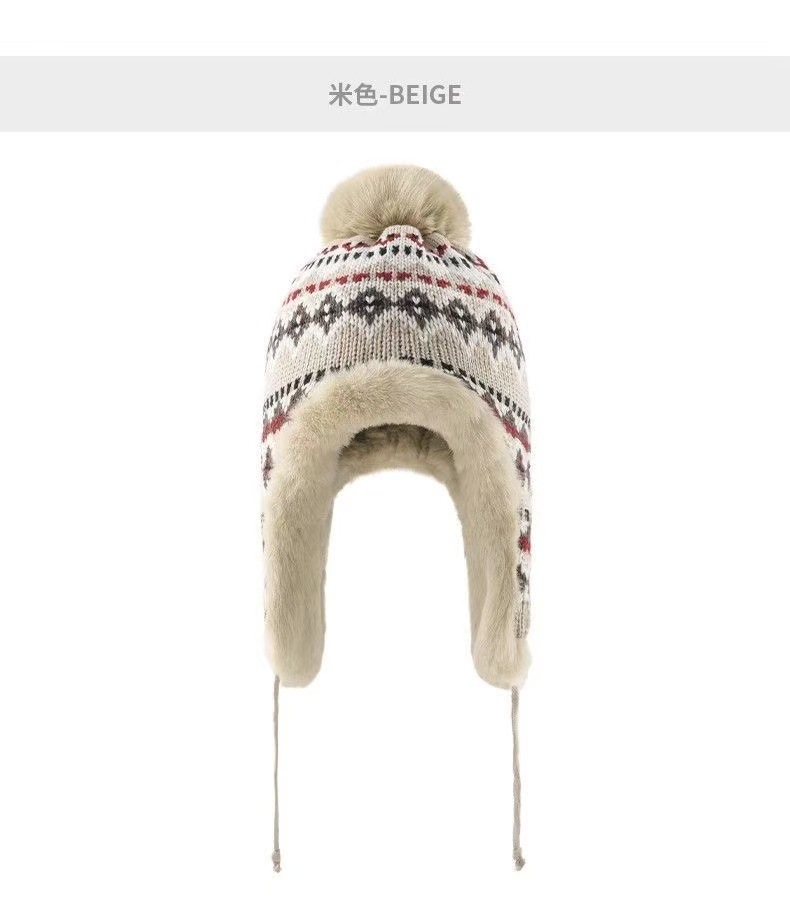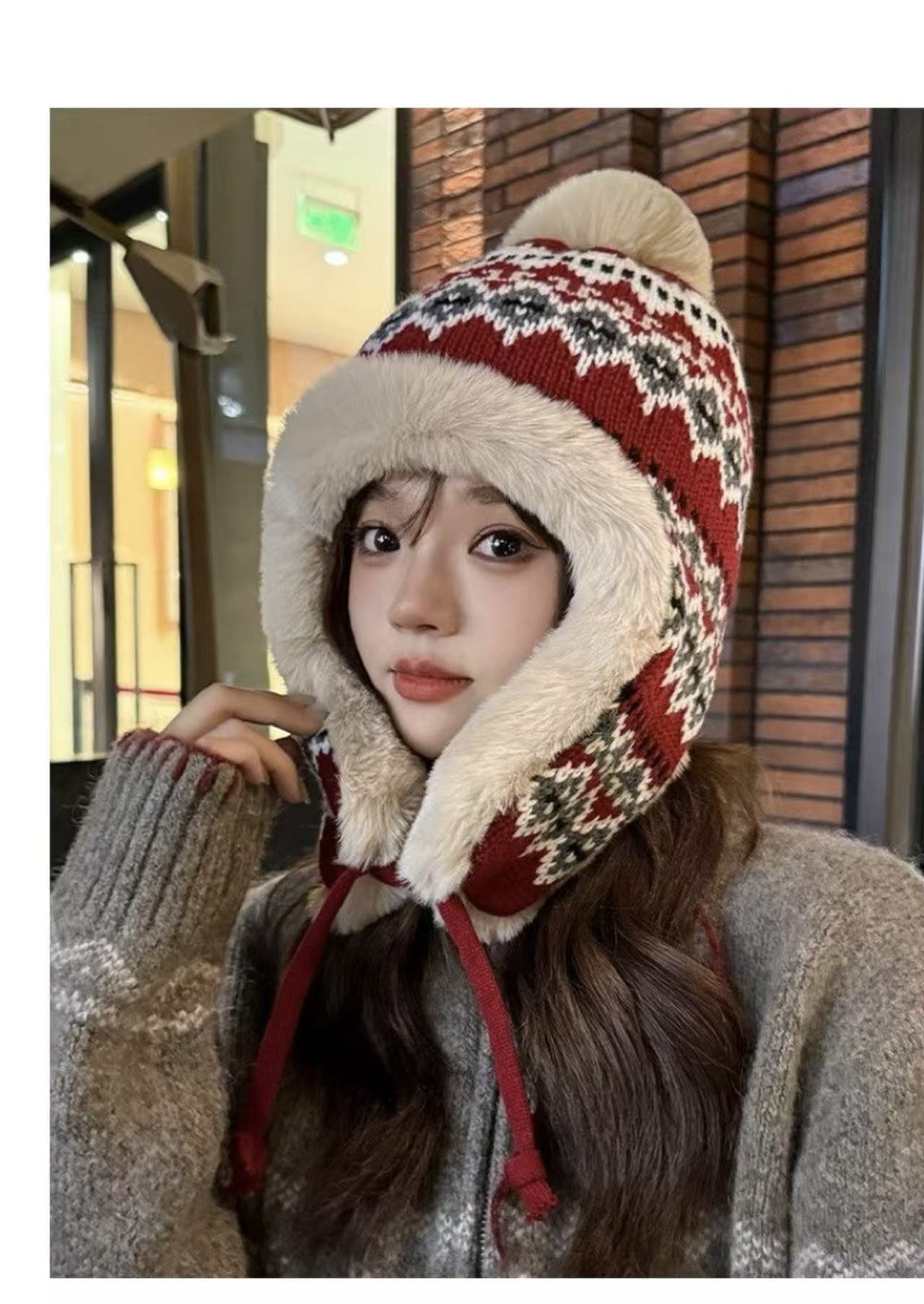 민족 스타일 모자 여성 겨울 니트 따뜻한 동북 방한 플러스 벨벳 두꺼운 얼굴 보호 귀 보호 면 모자 Lei Feng Hat