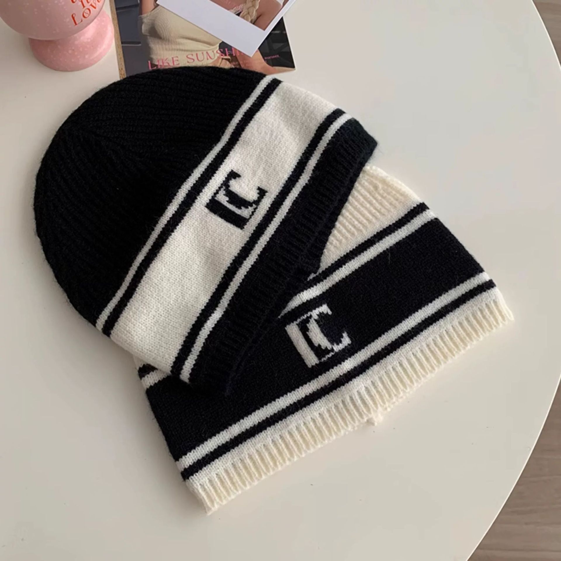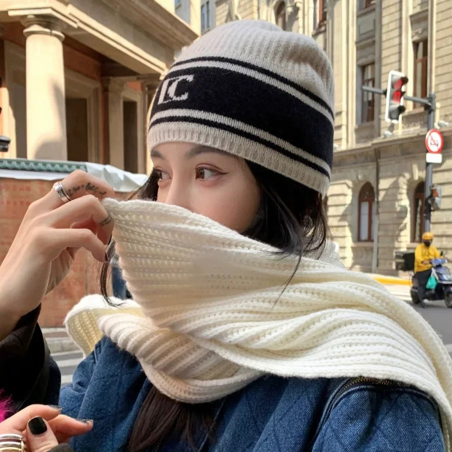 레바와 같은 스타일의 한국식 다용도 가을 겨울 방한모자, 흑백 문자 모직 모자, 니트 모자, 자카드 풀오버 방한모자