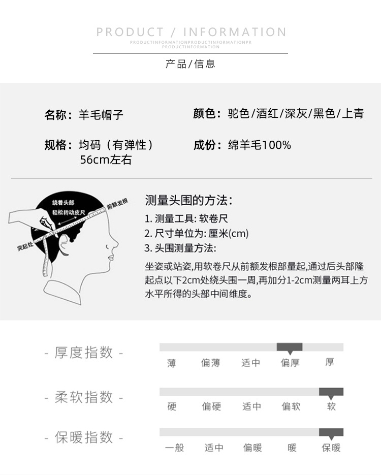 | 颜色 | 酒红色, 上青色, 驼色, 加绒+酒红, 加绒+上青 | 尺码 | 均码【52-62cm】都可以戴 |