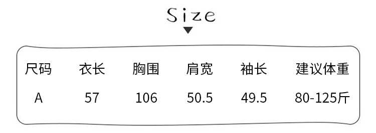 | 衣长 | 普通款(50cm<衣长≤65cm) | 袖长 | 长袖 |