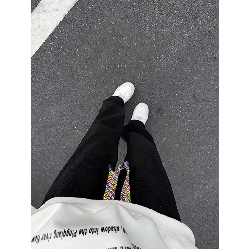 가을 겨울 남성용 헤비웨이트 스웨트팬츠, 밀꽃 자카드 디자인 팬츠, 루즈한 스트레이트 레그, 활용도 높은 캐주얼 팬츠, 아메리칸 스타일