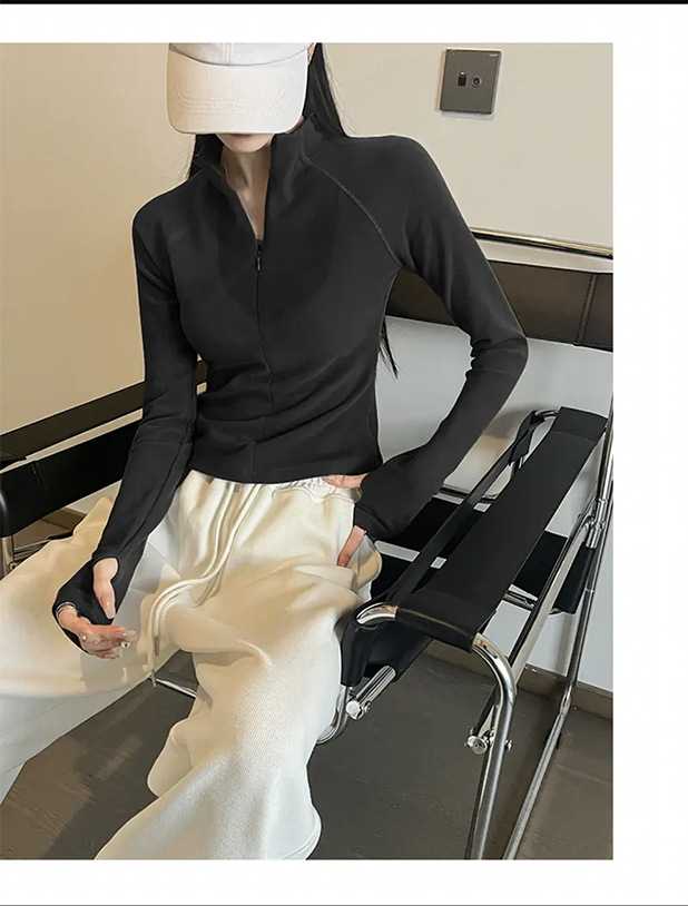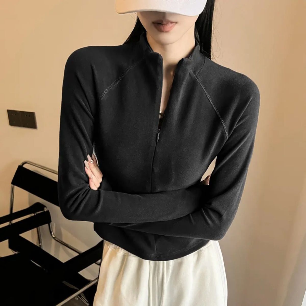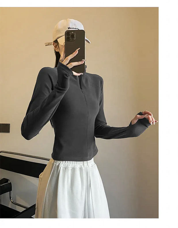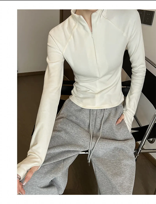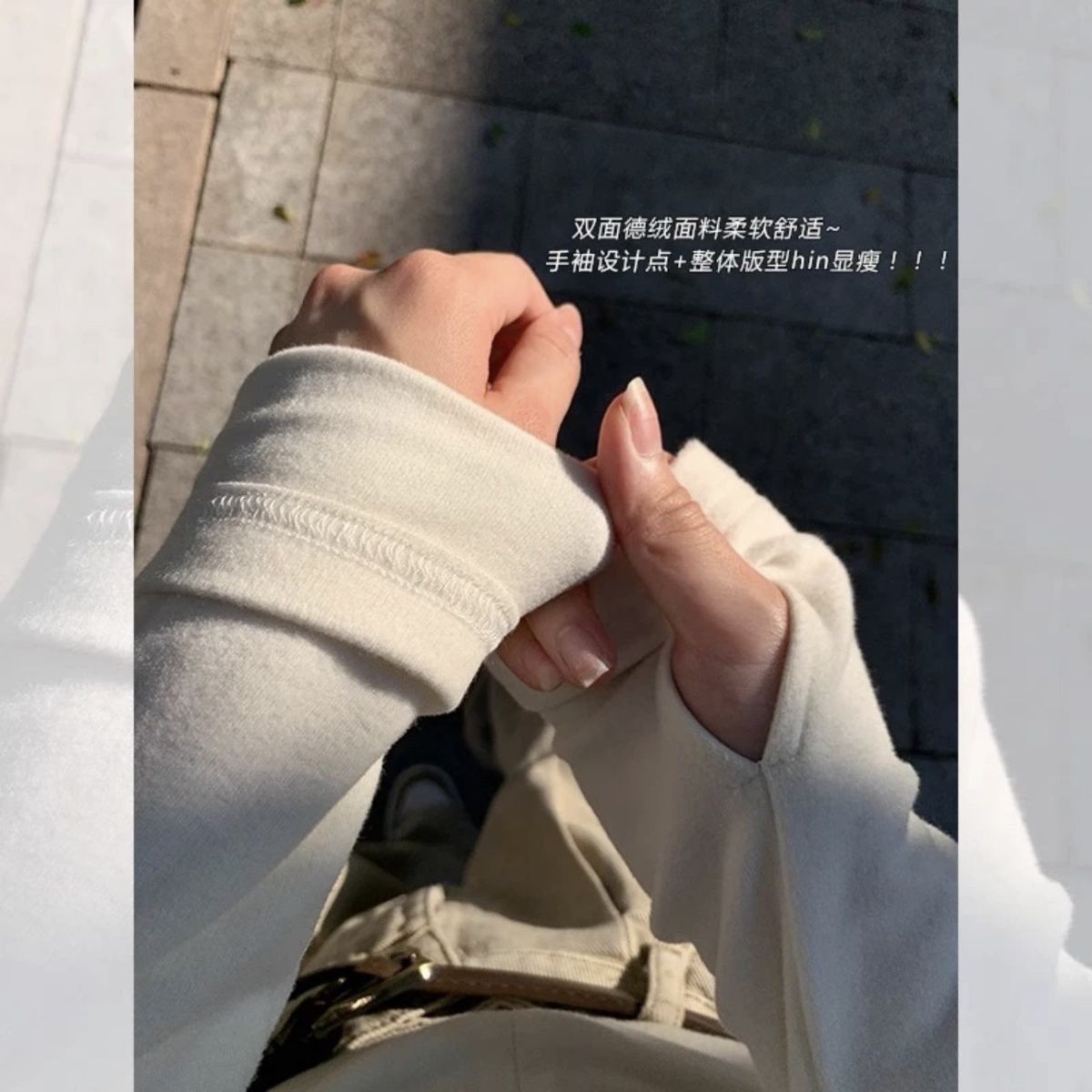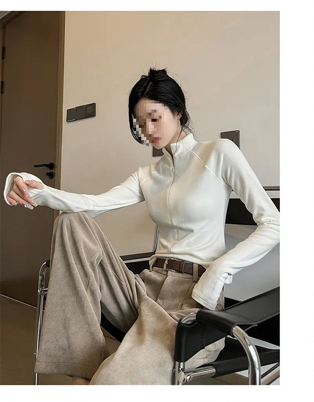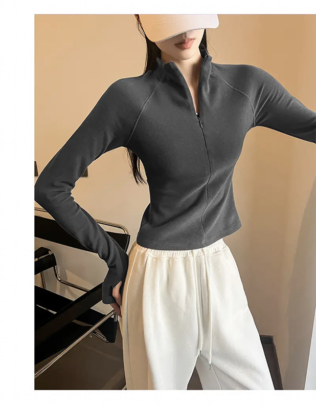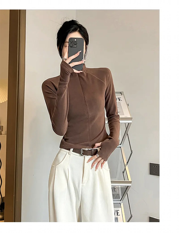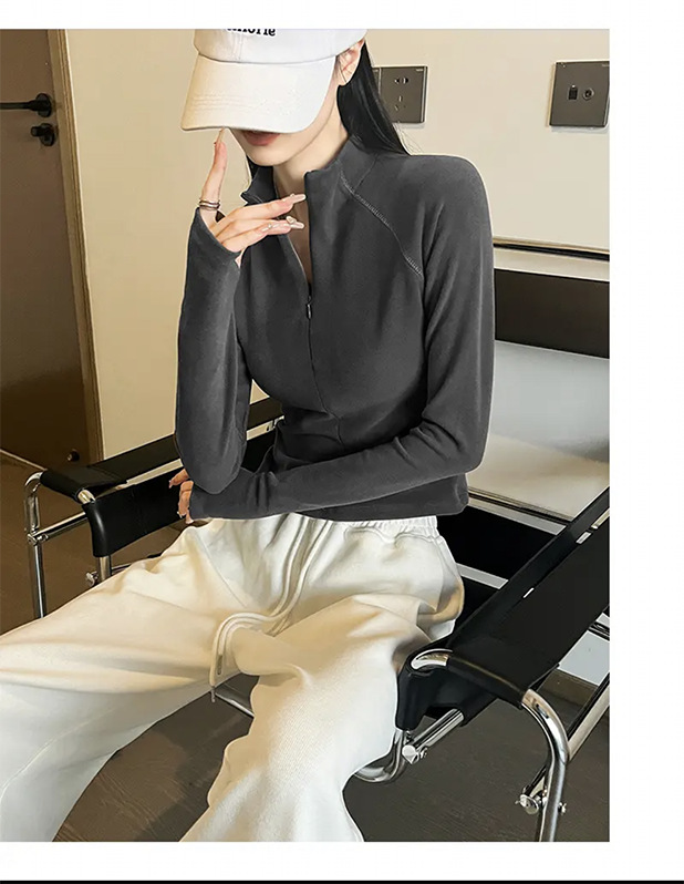 가을 겨울 여성용 따뜻하고 활용도가 높은 독일 벨벳 긴팔 티셔츠, 슬림핏 지퍼 플러스 벨벳 밑단 셔츠, 핫탑 트렌디