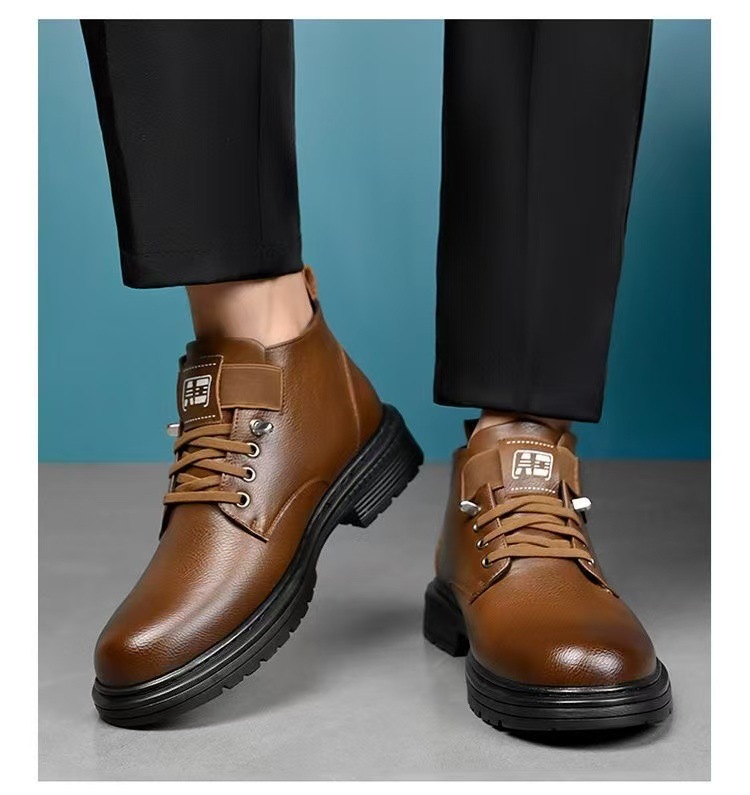 남성용 면화, 겨울 벨벳 두꺼운 하이탑 면화, 야외 영국 따뜻한 마틴 부츠, 남성용 캐주얼 면화