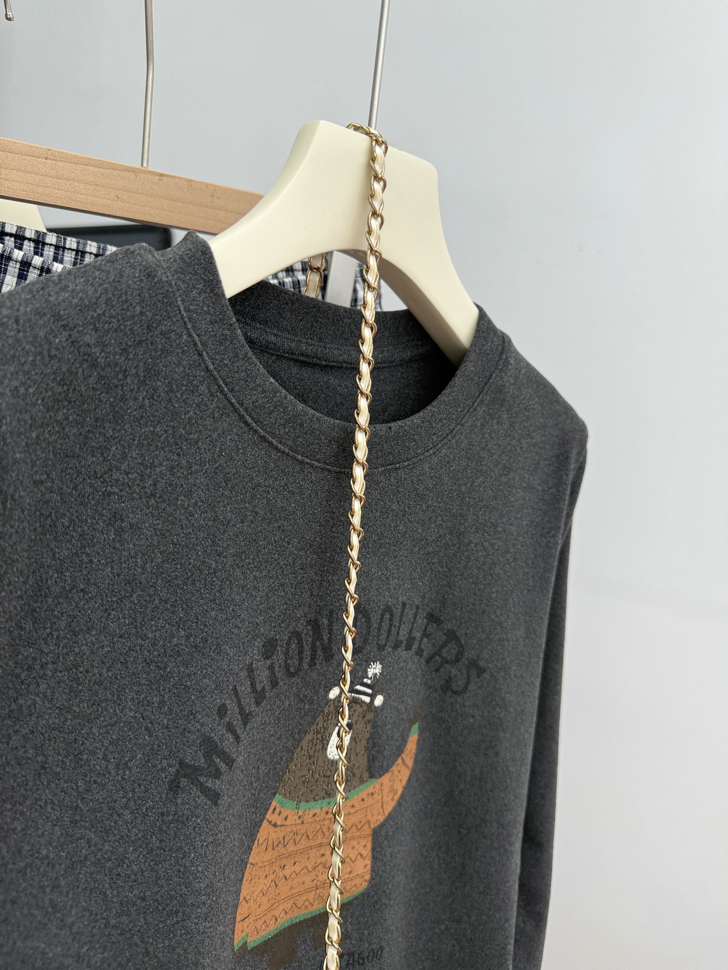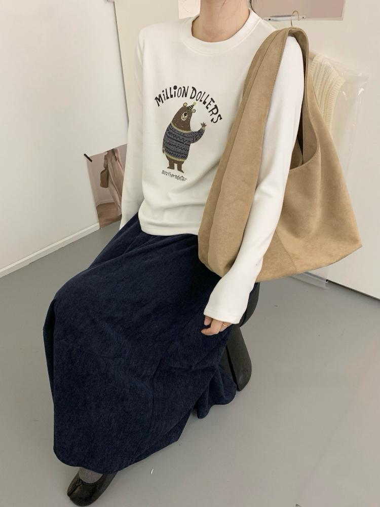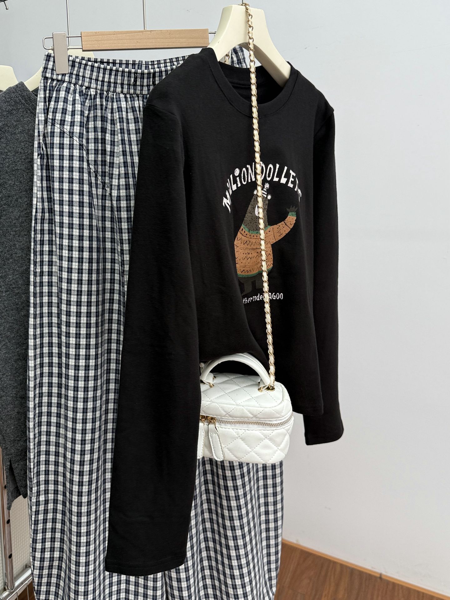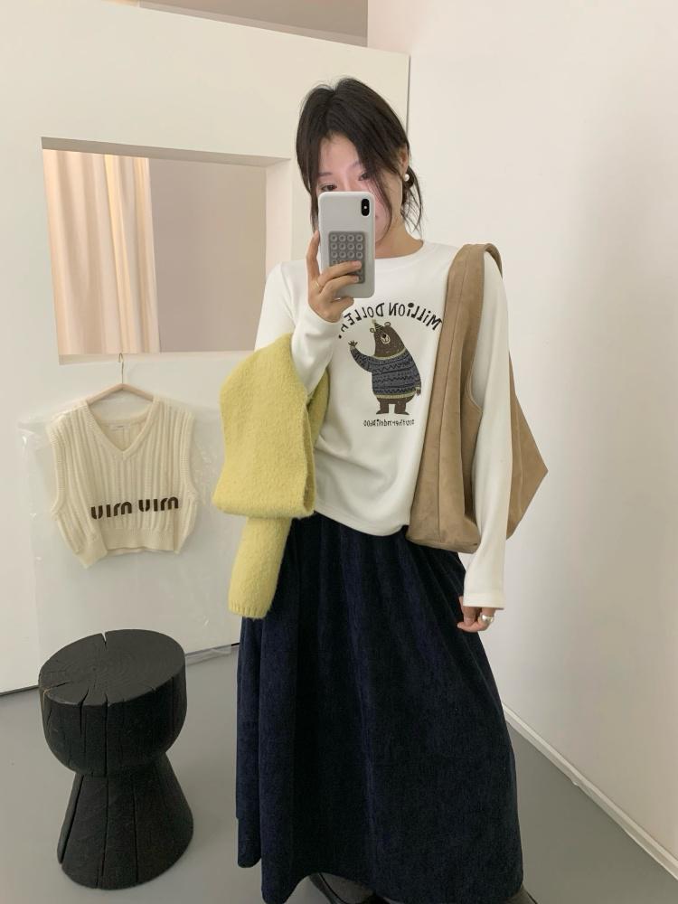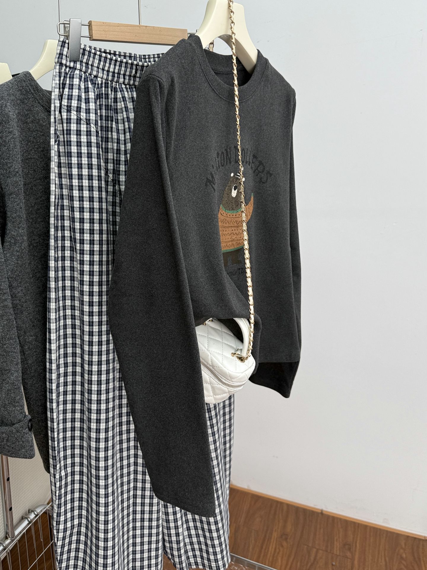 2025 겨울 신상 한국판 만화 곰돌이 오버숄더 긴팔 기모 티셔츠 여성용 베이직 상의