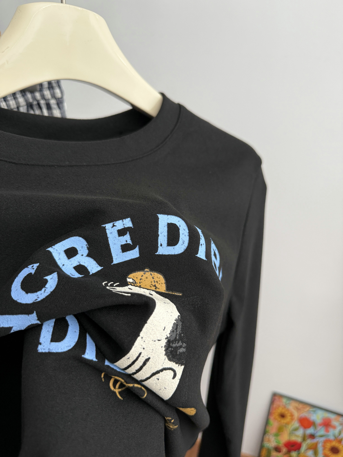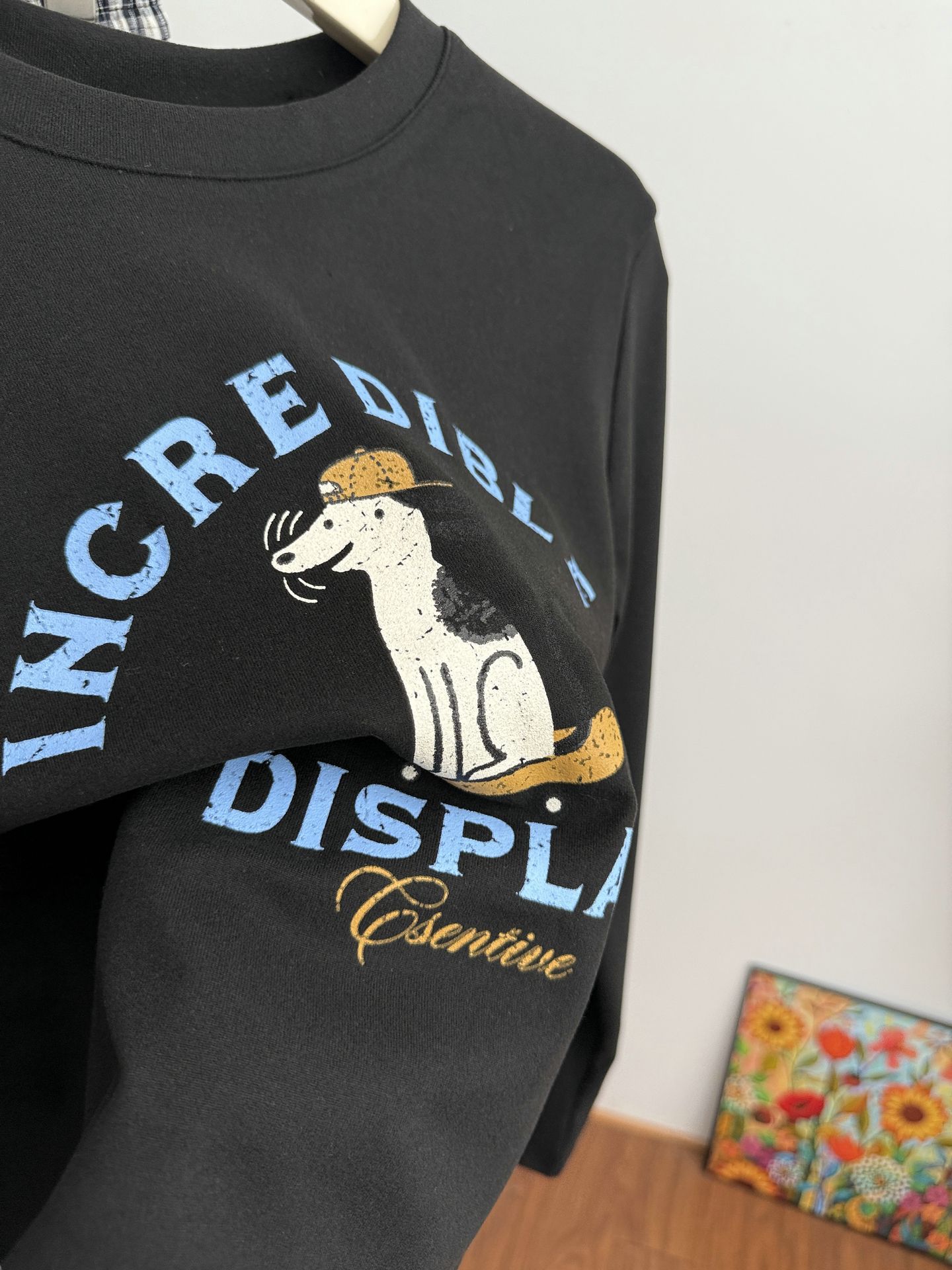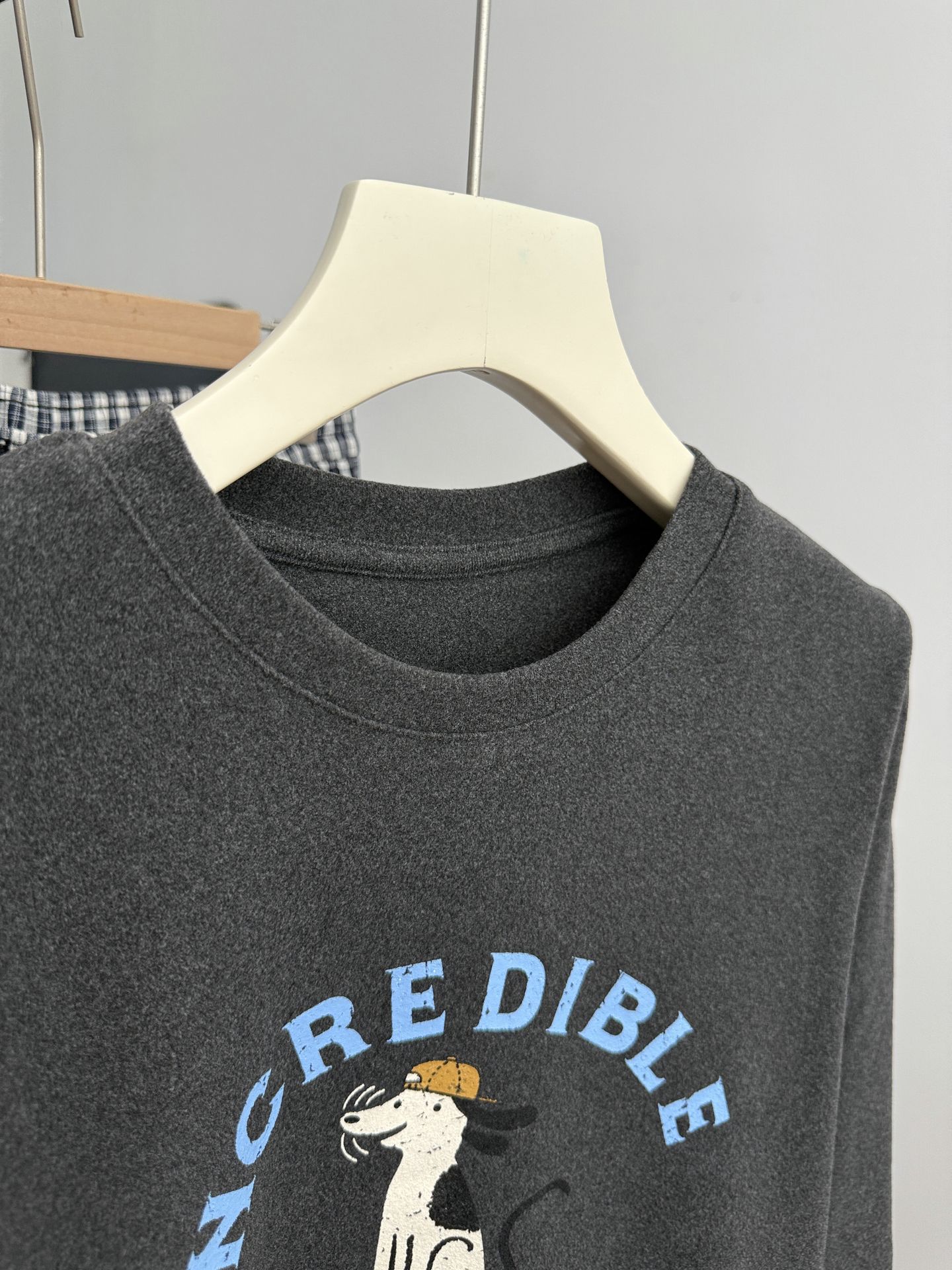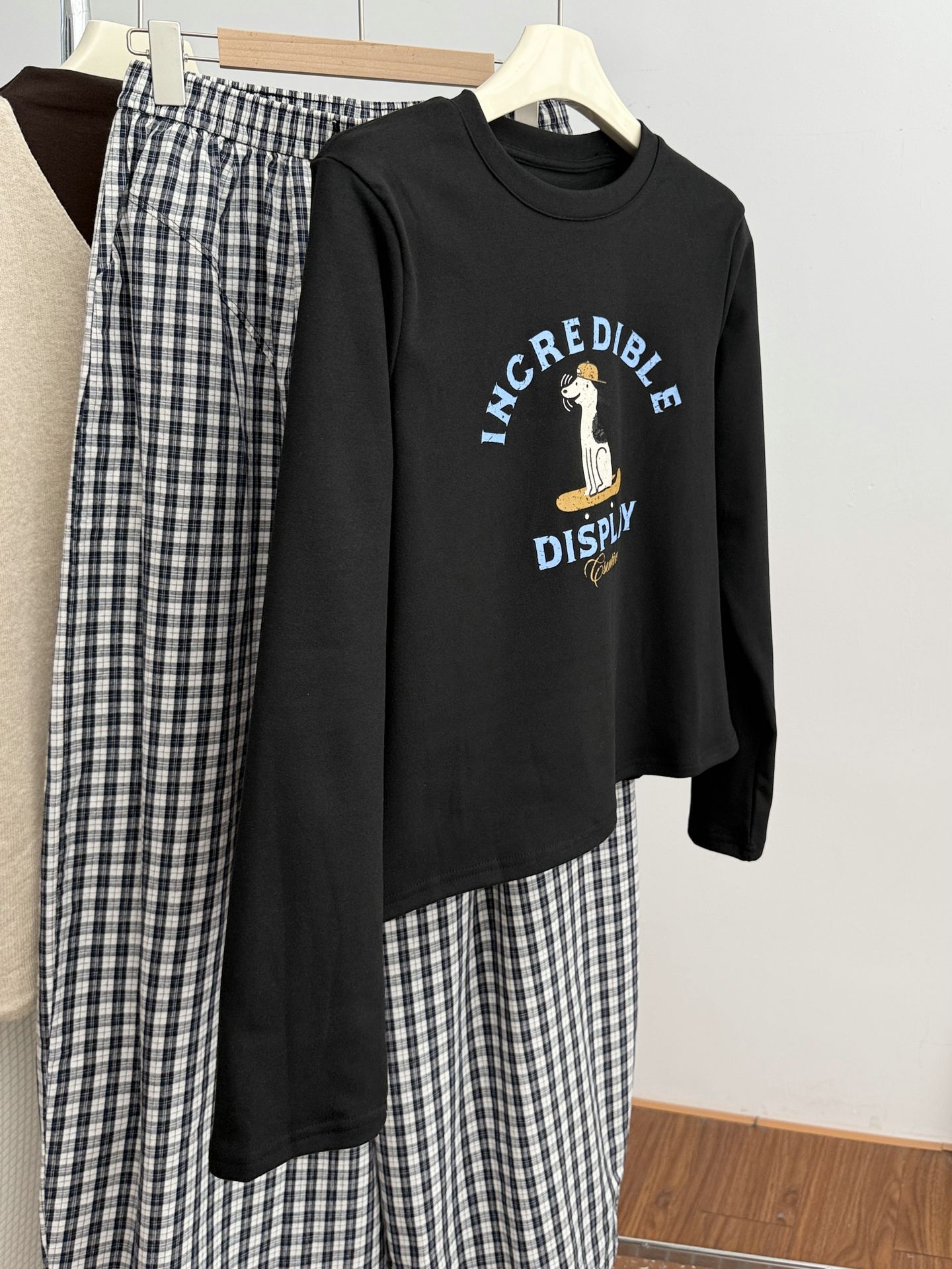 2025 가을 겨울 재미있는 알파벳 강아지 프린트 긴팔 독일산 벨벳 기모 티셔츠 여성용 나이 감소 다용도 기본 상의 트렌디