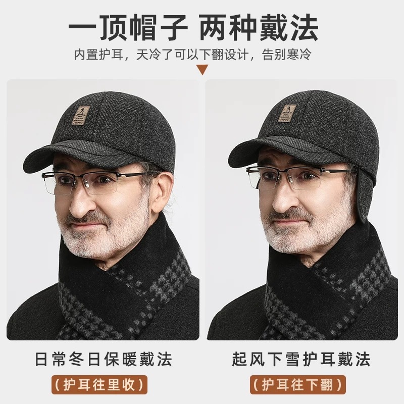 중년 및 노인 남성 가을 겨울 따뜻한 노인 귀 보호 피크 캡 노인 아빠 할아버지 플러스 벨벳 야구 모자