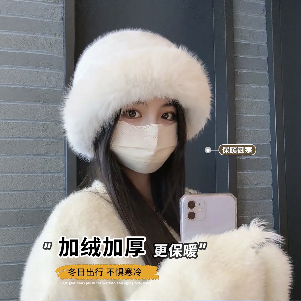 가을 겨울 여성용 봉제 몽골 모자, 방한, 흰색, 따뜻한, 동북 분지 모자, 귀 보호 모자, 여우 모피 어부 모자, 모피