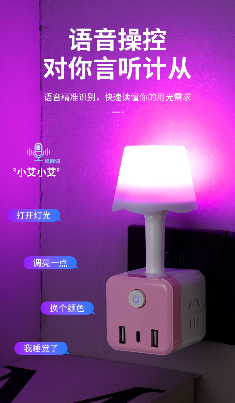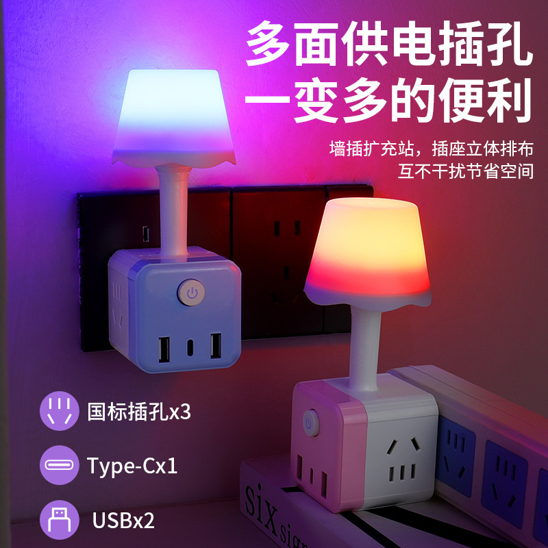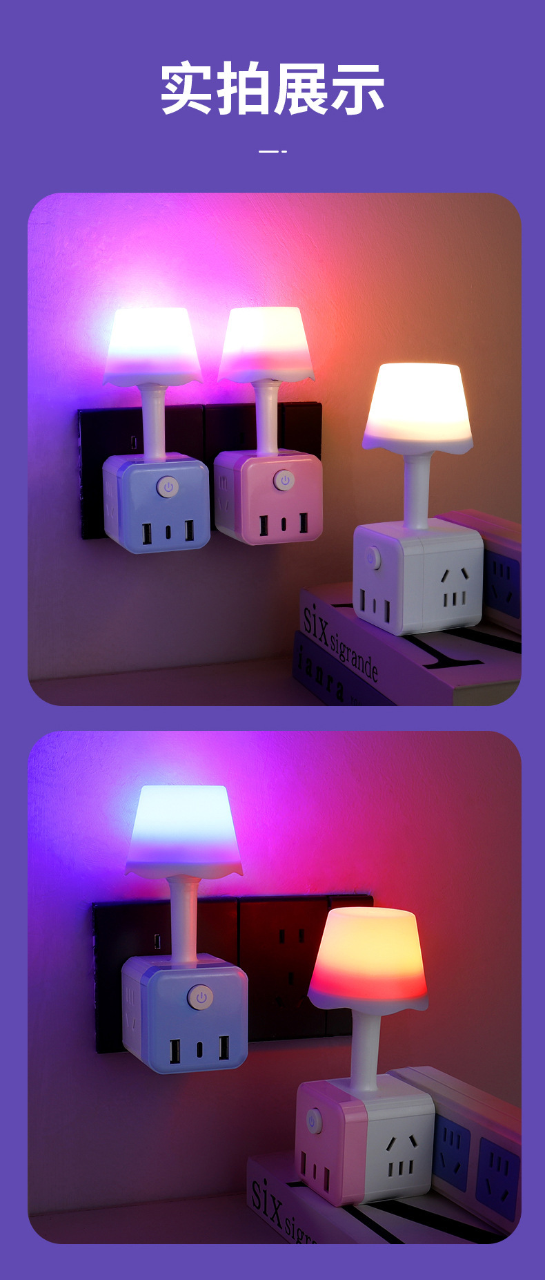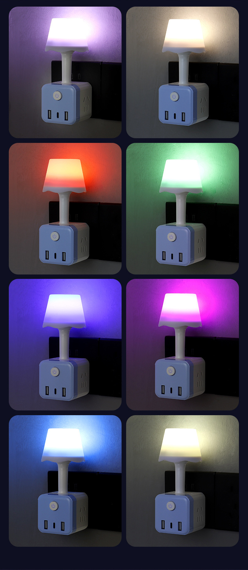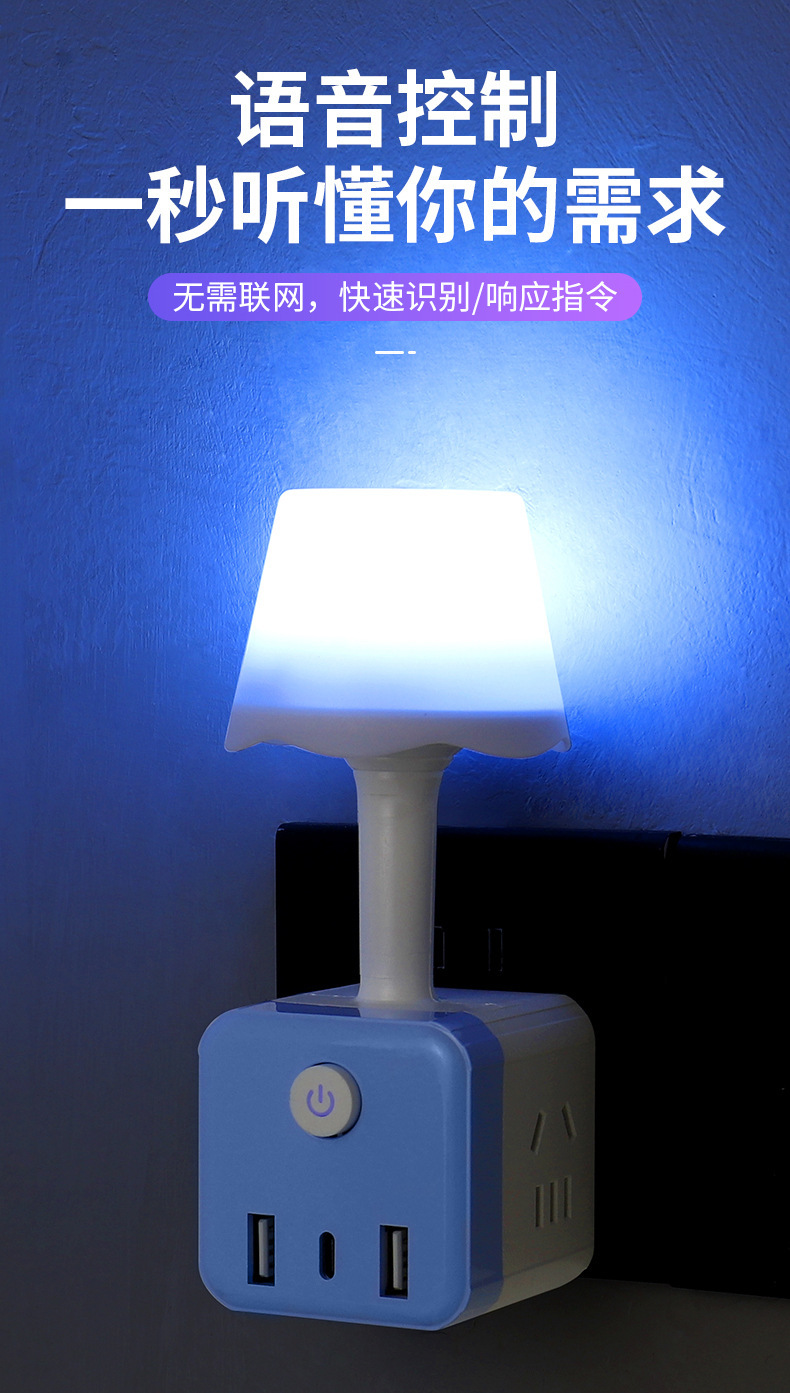 지능형 음성 제어 야간 조명 소켓 변환기 LED 침대 옆 램프 USB 확장 플러그 루빅스 큐브 플러그 인기 조명