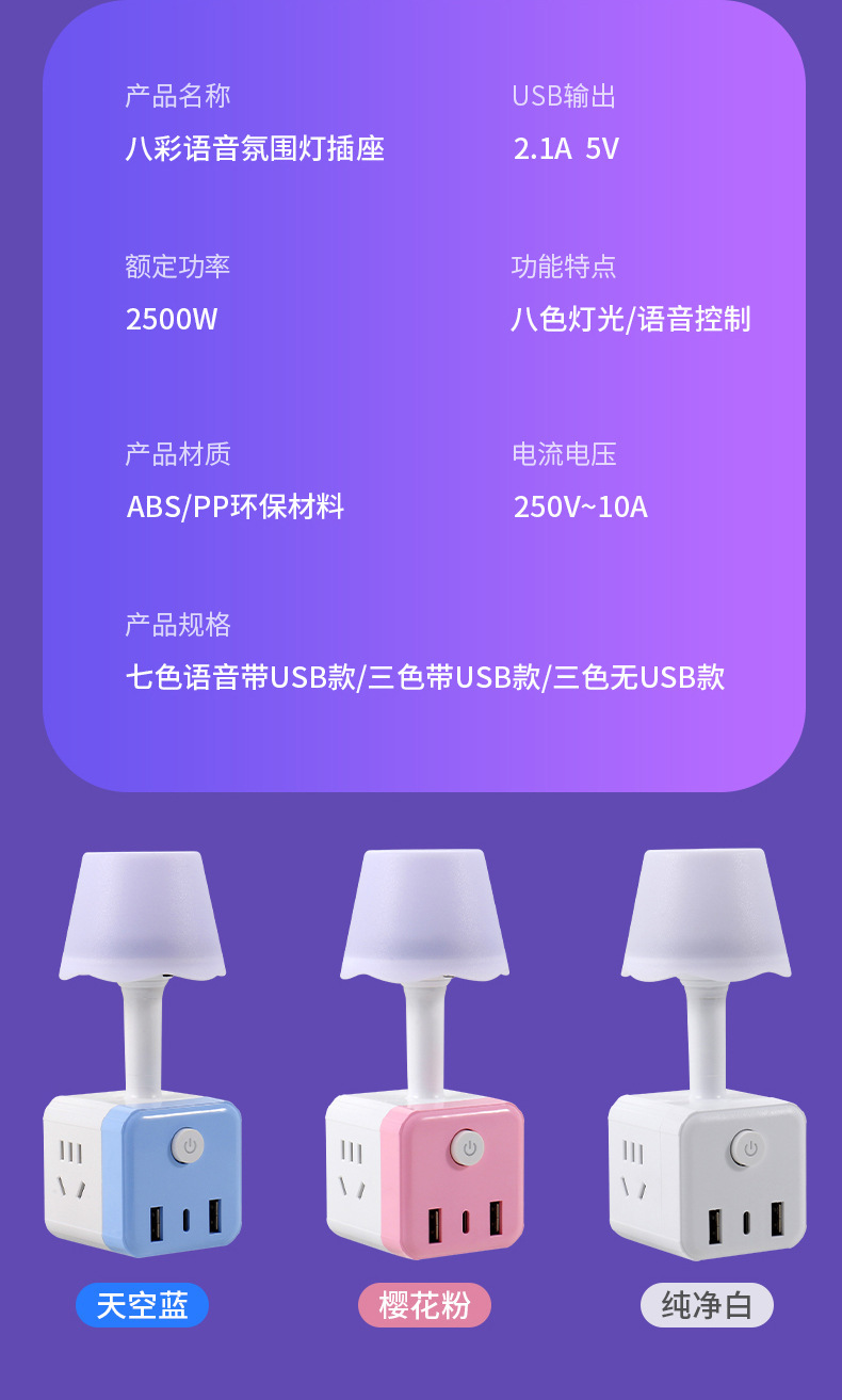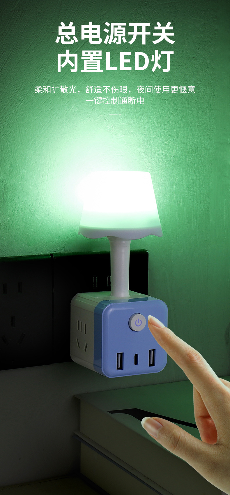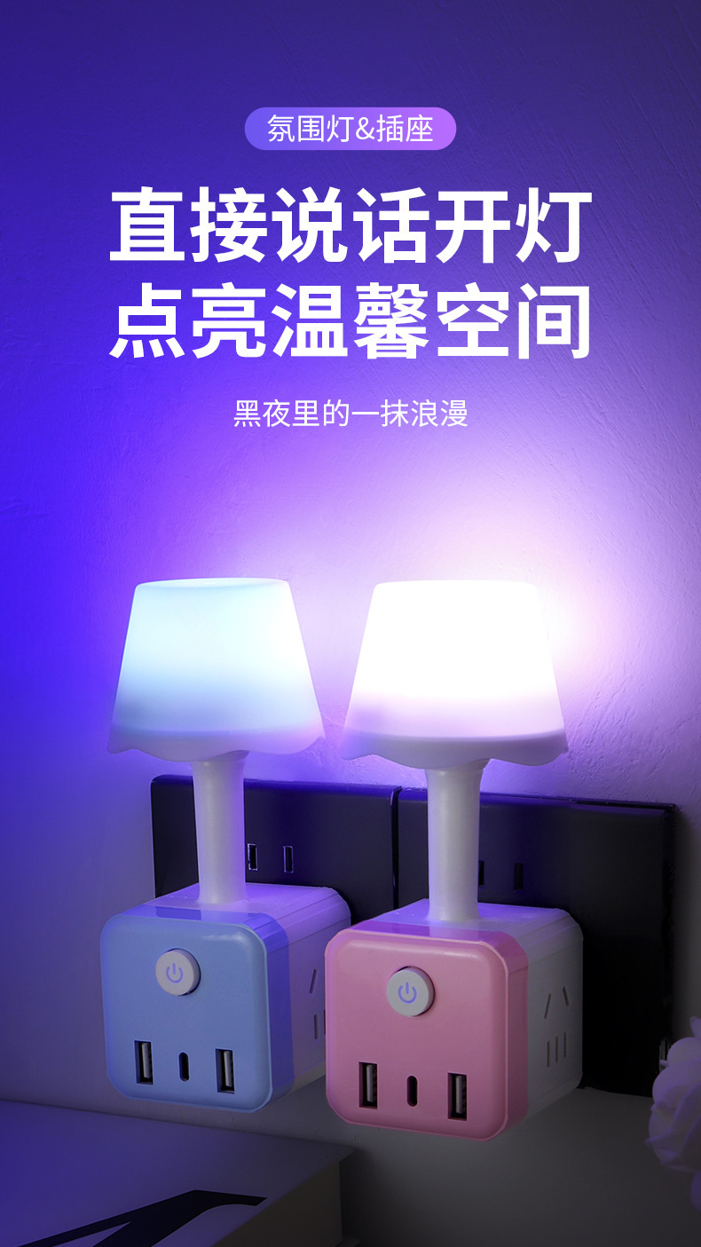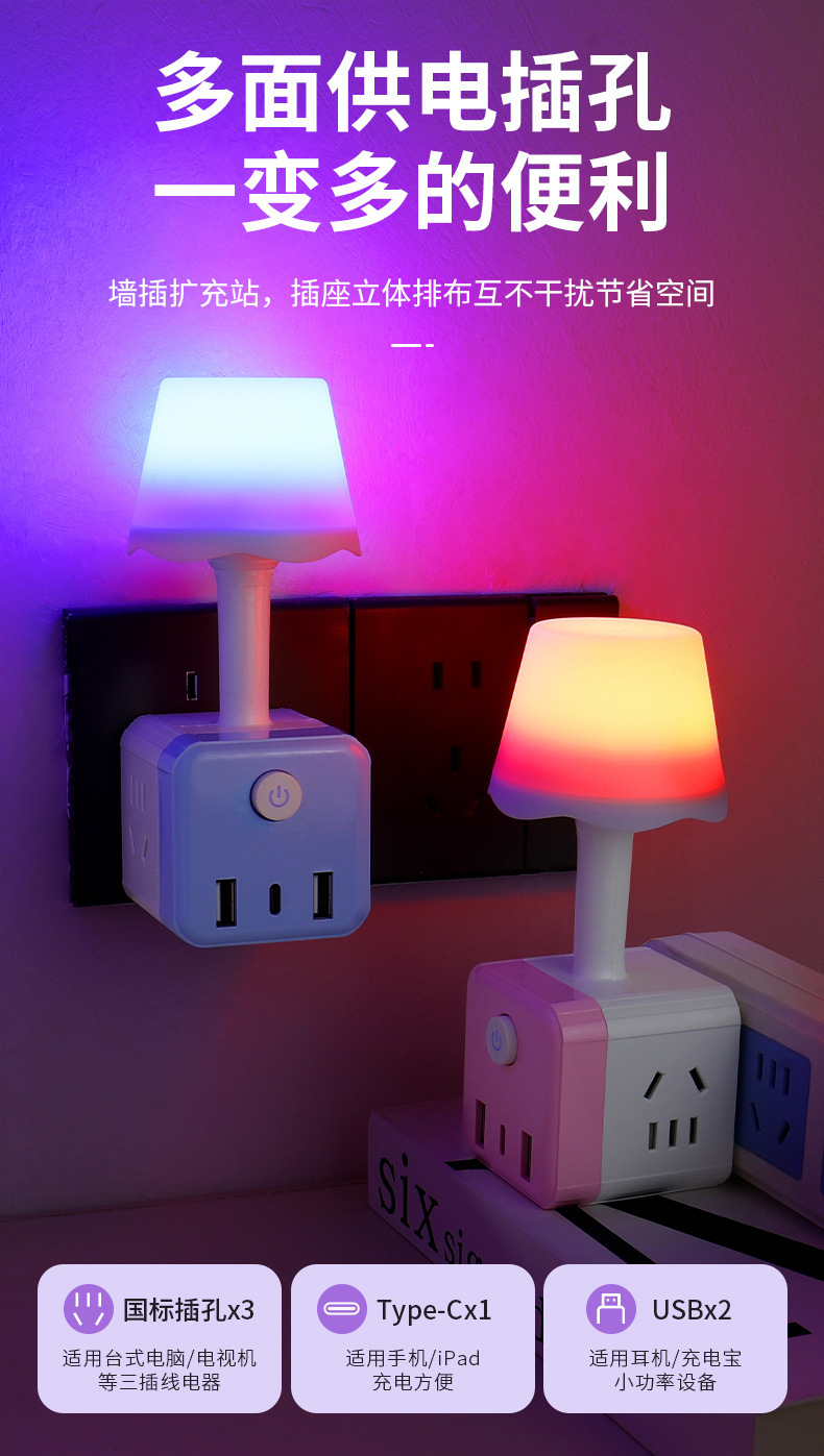 지능형 음성 제어 야간 조명 소켓 변환기 LED 침대 옆 램프 USB 확장 플러그 루빅스 큐브 플러그 인기 조명
