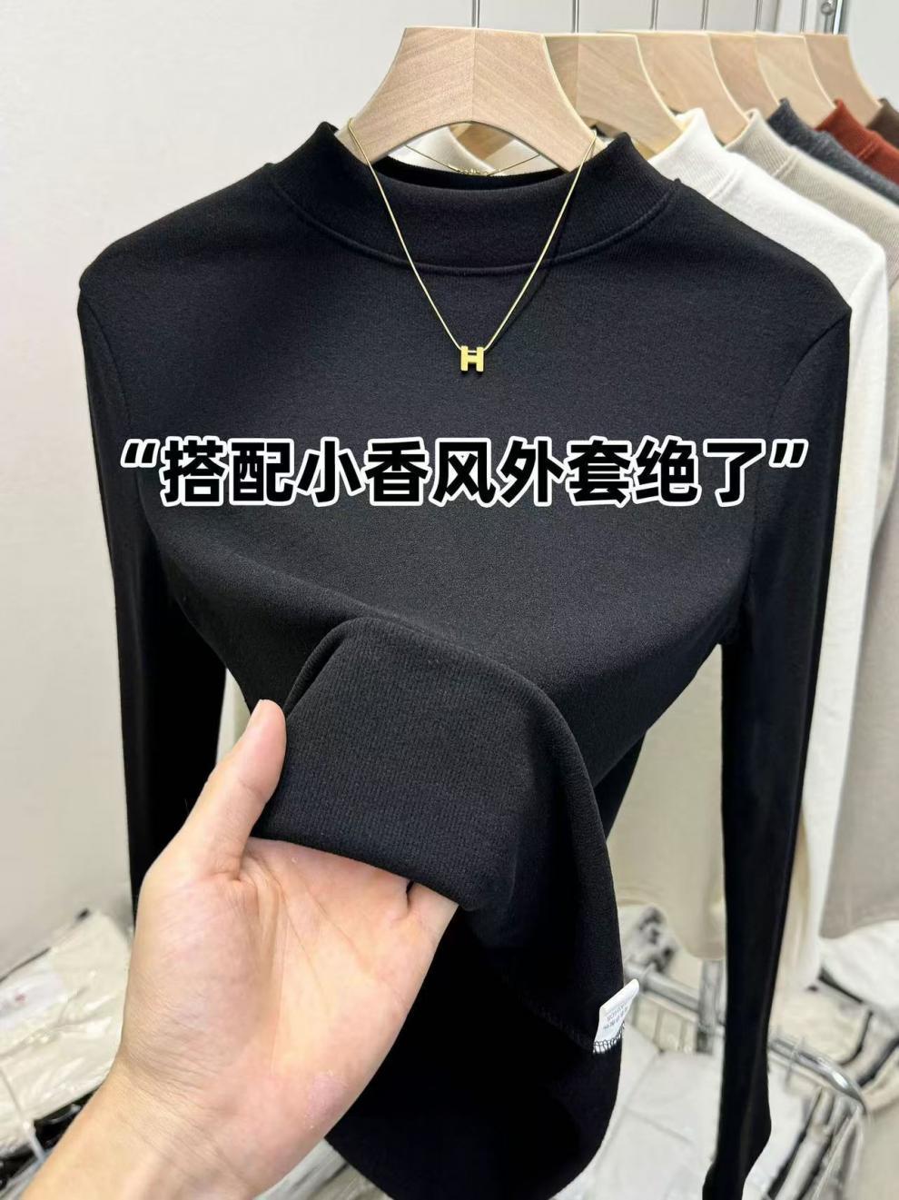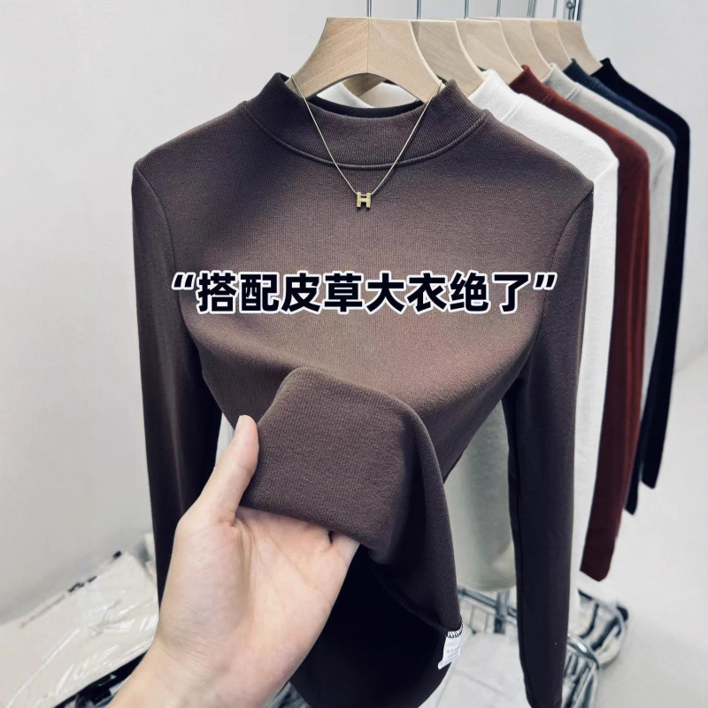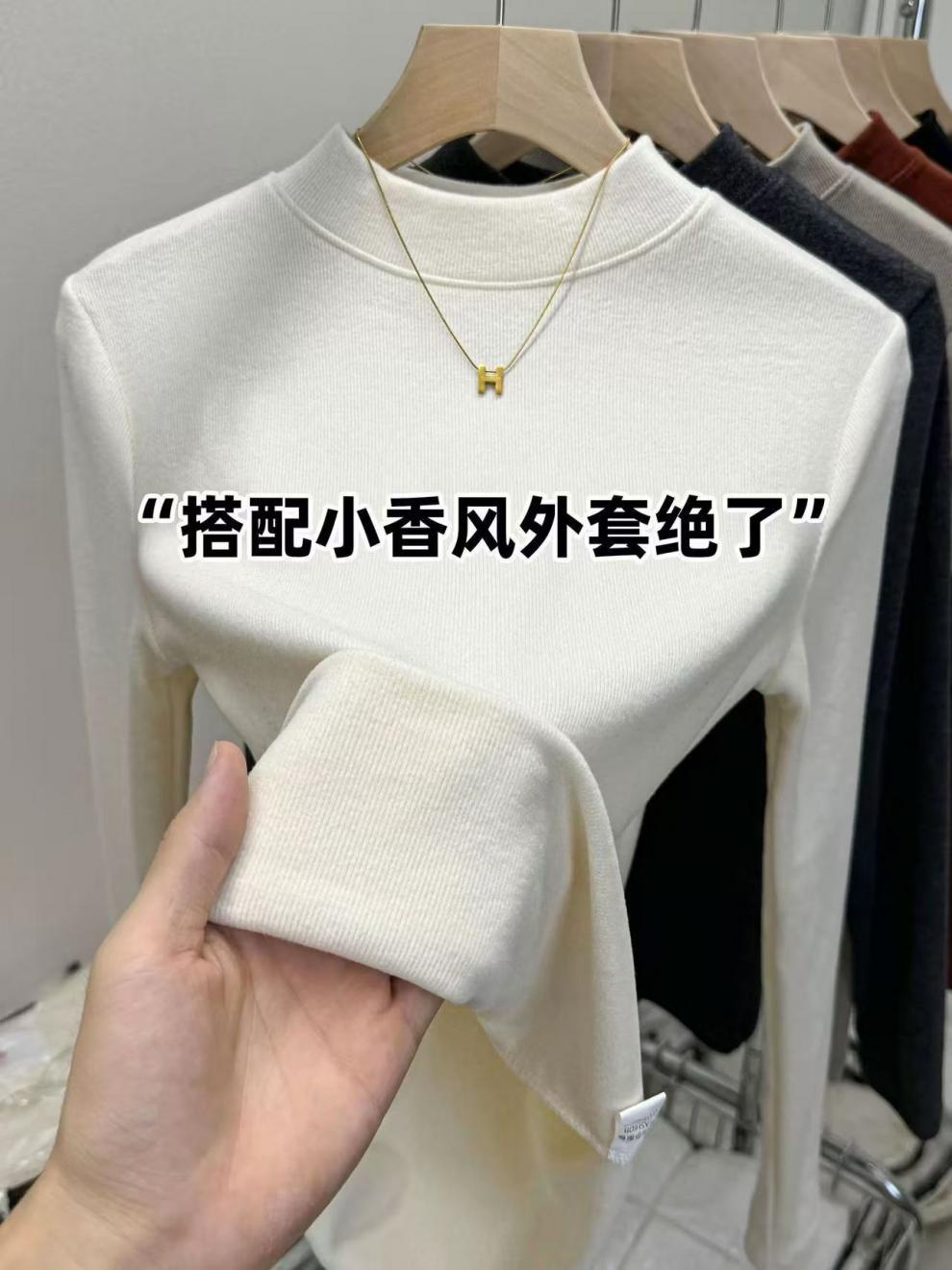 显气质立领打底衫慕斯羊绒保暖内搭秋冬大码纯色磨毛百搭亲肤上衣