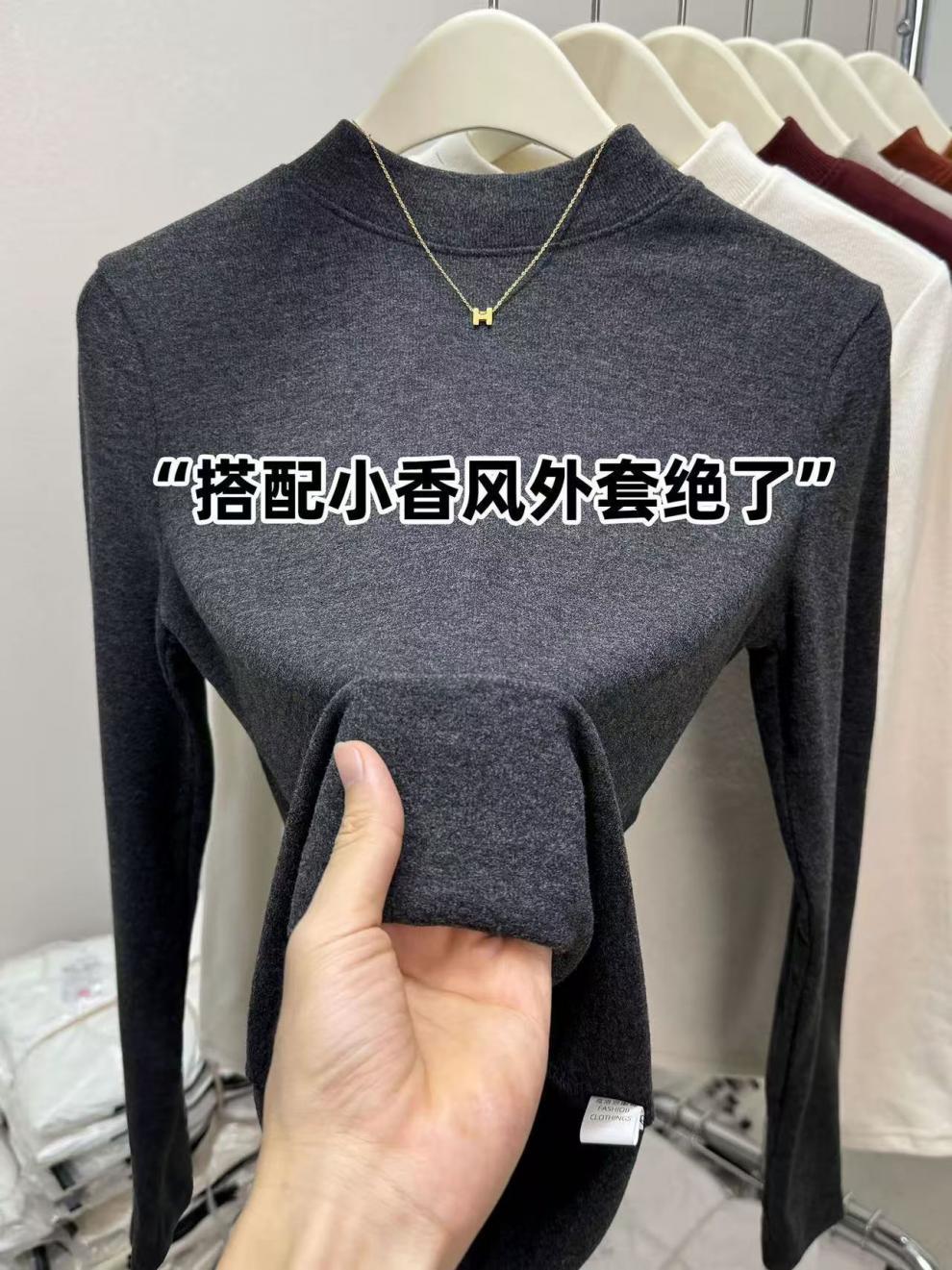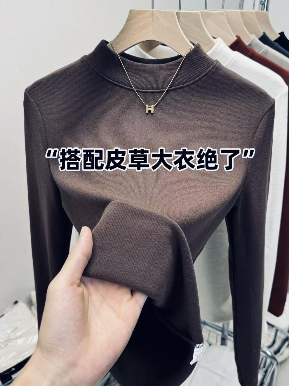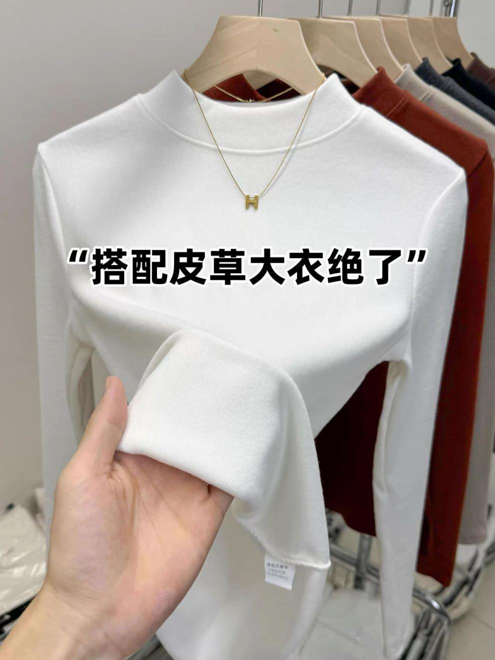 显气质立领打底衫慕斯羊绒保暖内搭秋冬大码纯色磨毛百搭亲肤上衣