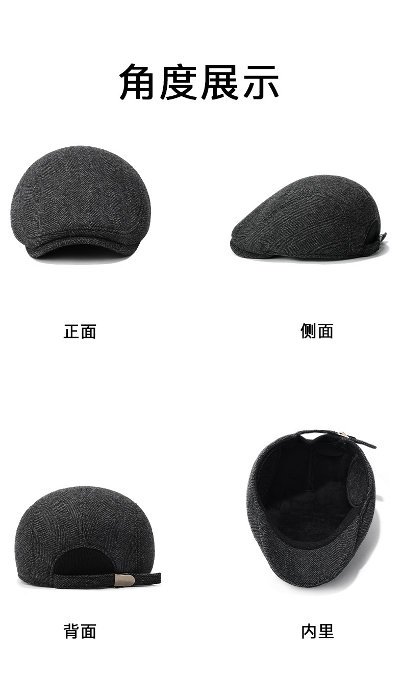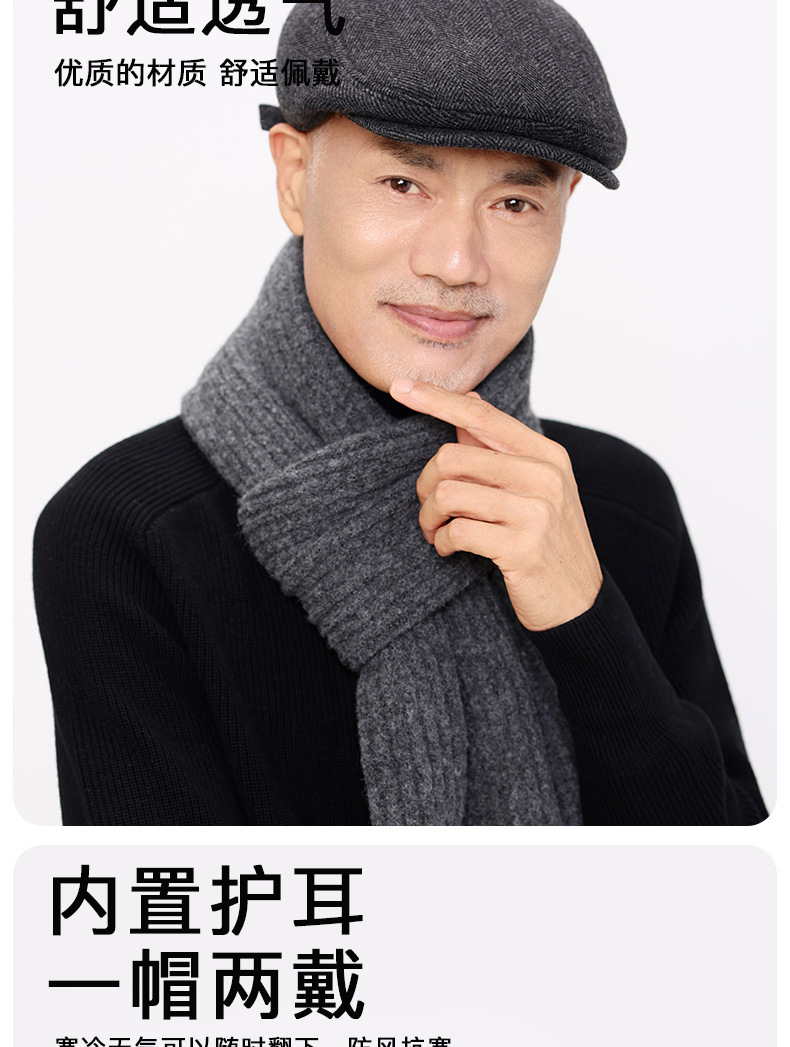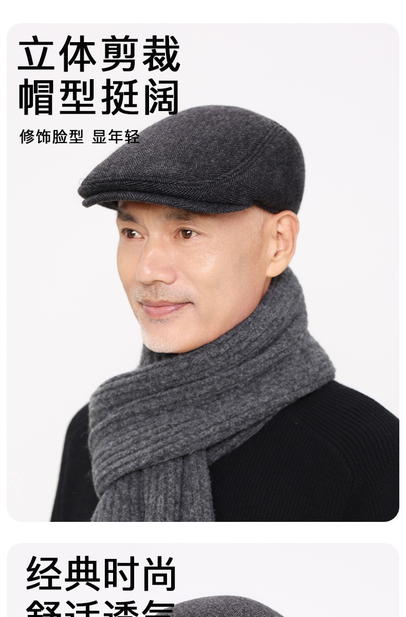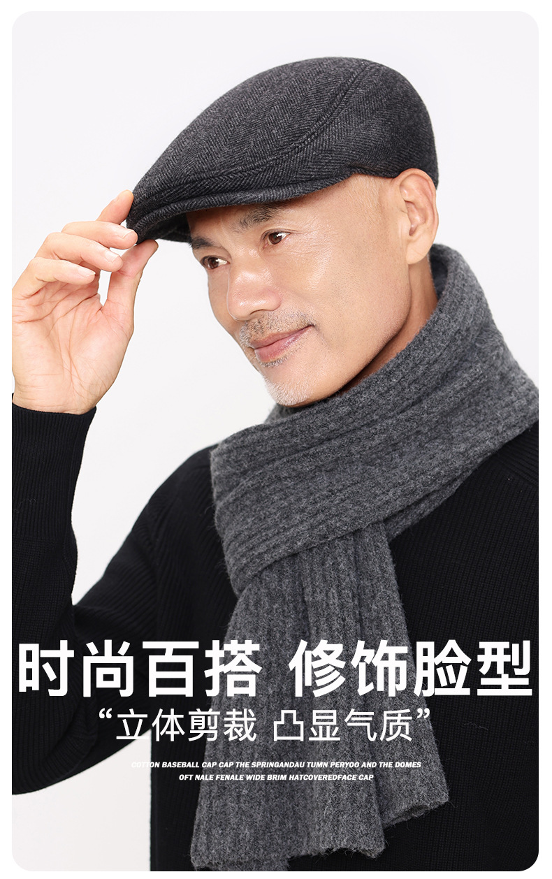 겨울 중노년용 울 앞모자, 귀 보호, 따뜻한 피크캡, 야외 방한 노인 모자, 아빠 모자, 크로스보더