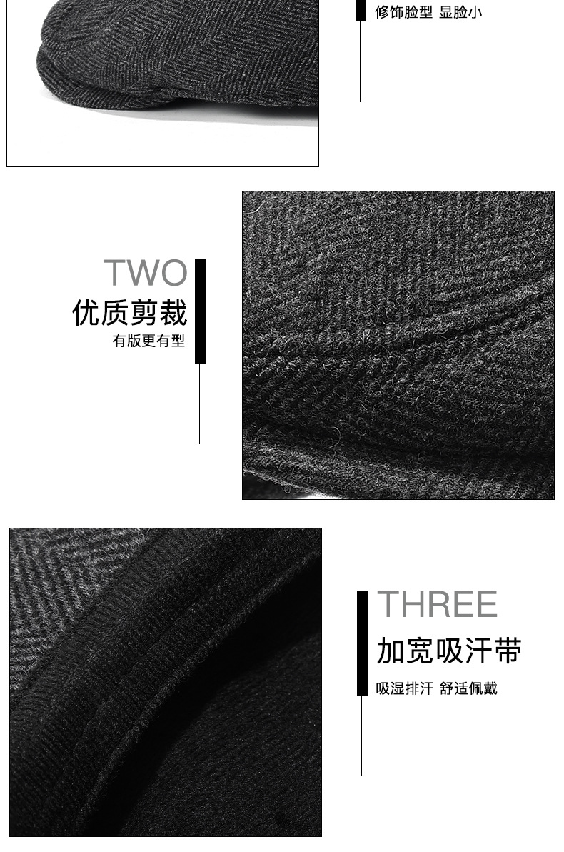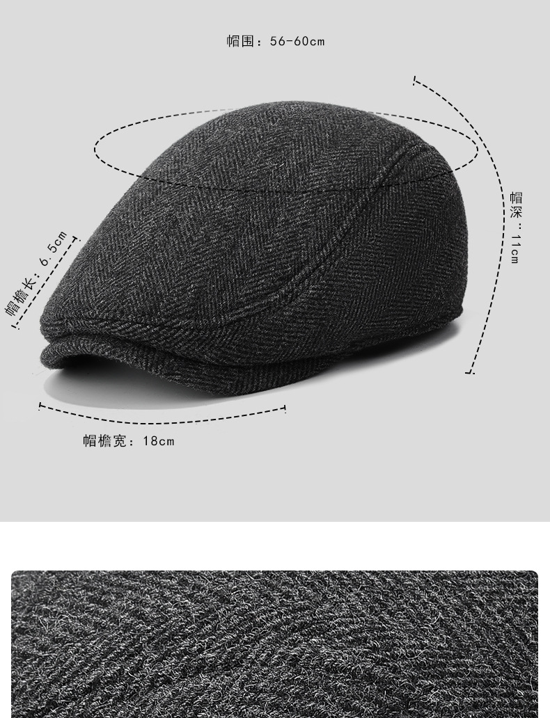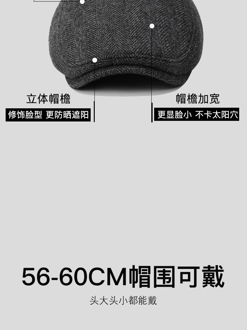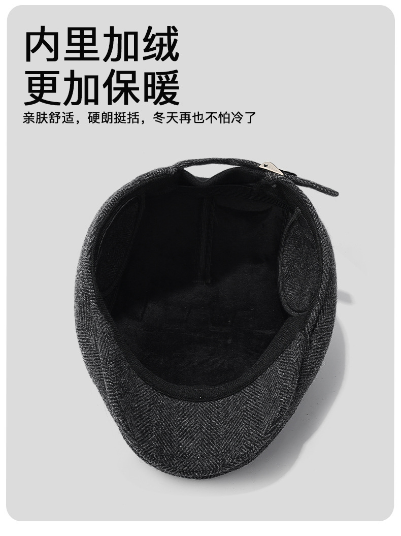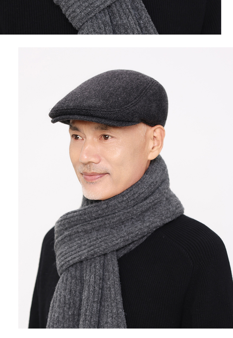 겨울 중노년용 울 앞모자, 귀 보호, 따뜻한 피크캡, 야외 방한 노인 모자, 아빠 모자, 크로스보더