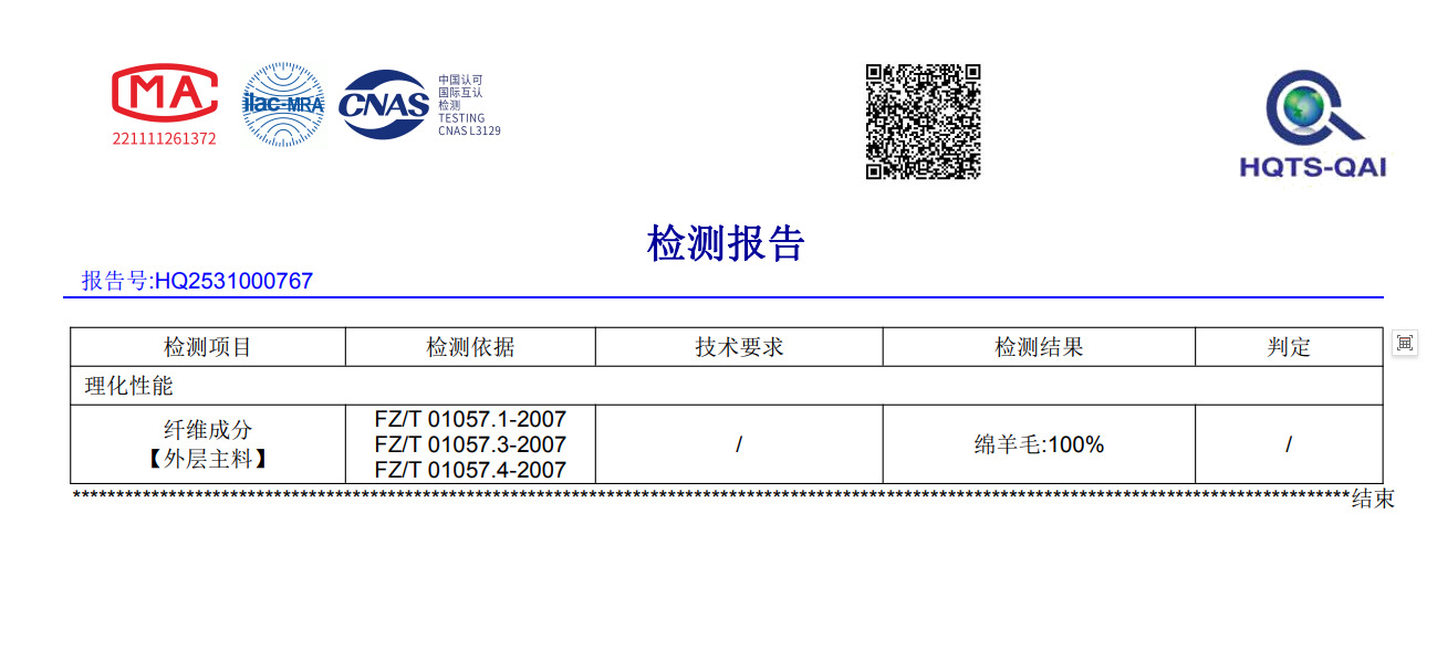 | 上市年份/季节 | 2025年冬季 | 主面料成分含量 | 100% |