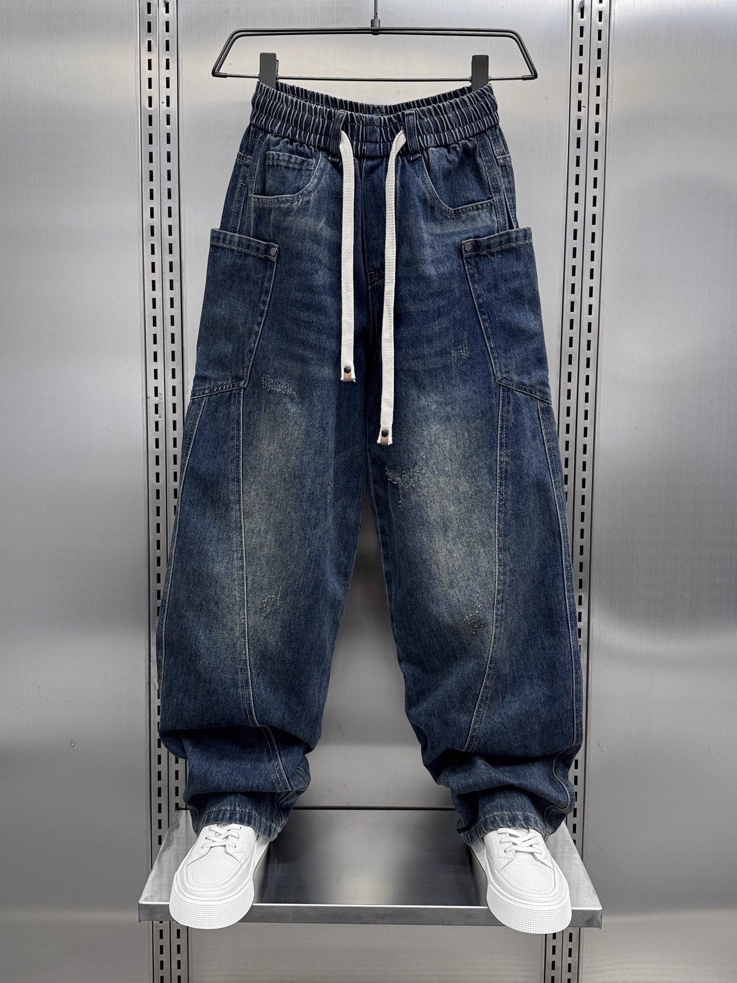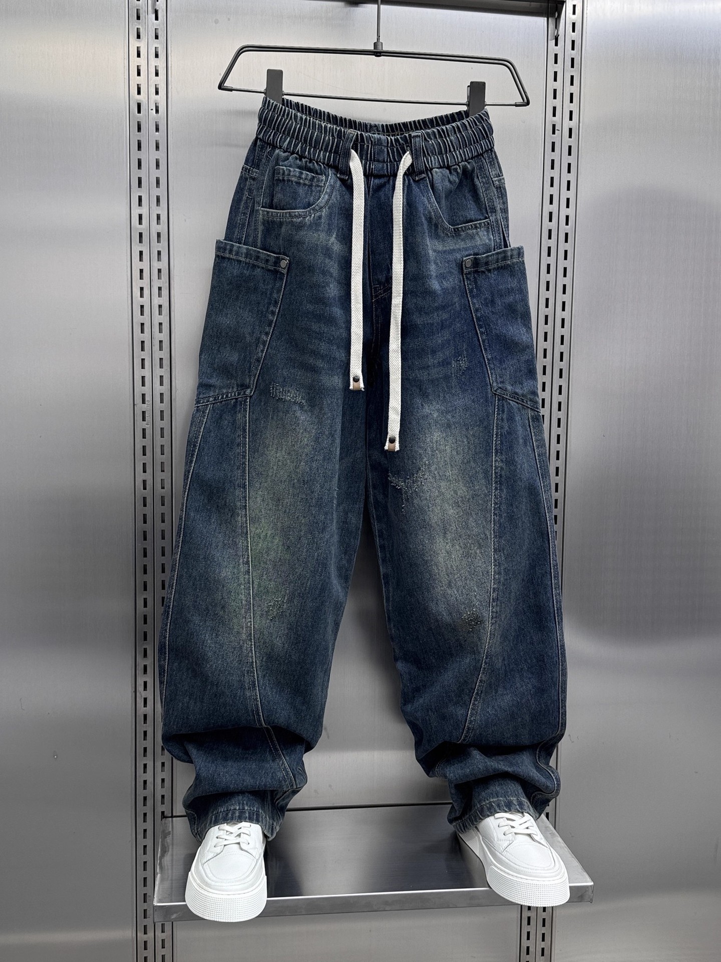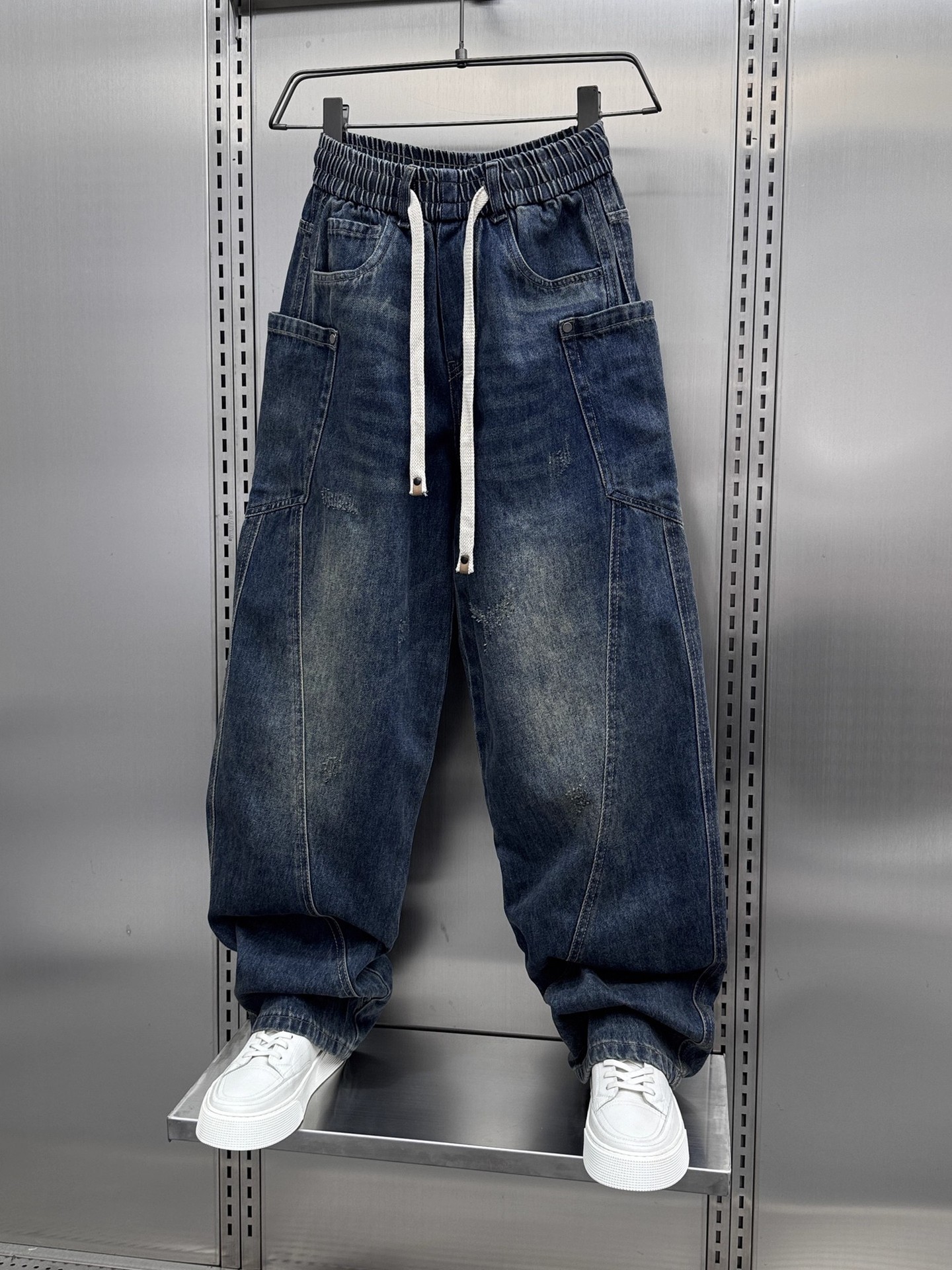 남성 2025 봄, 가을 새로운 스타일 세이버 청바지 패션 하이 스트리트 아메리칸 캐주얼 루즈 스트레이트 플러스 벨벳 하렘 바지