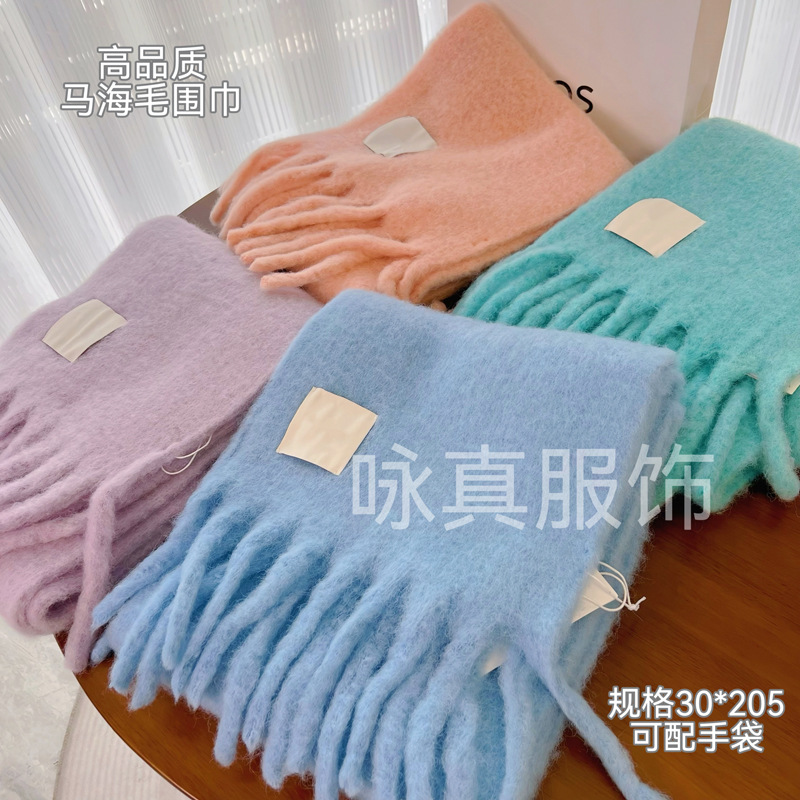 C's 모헤어 솔리드 컬러 스카프 울 스카프 캔디 컬러 블루 스카프 여성 겨울 하이 엔드 다용도 따뜻한
