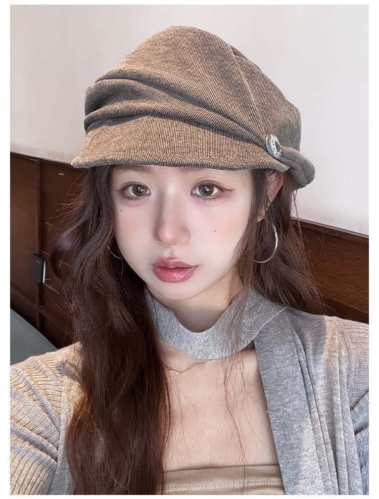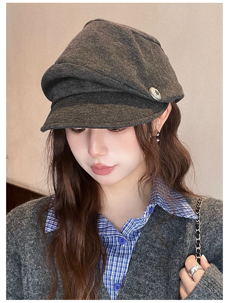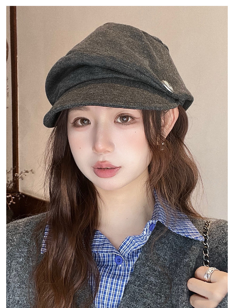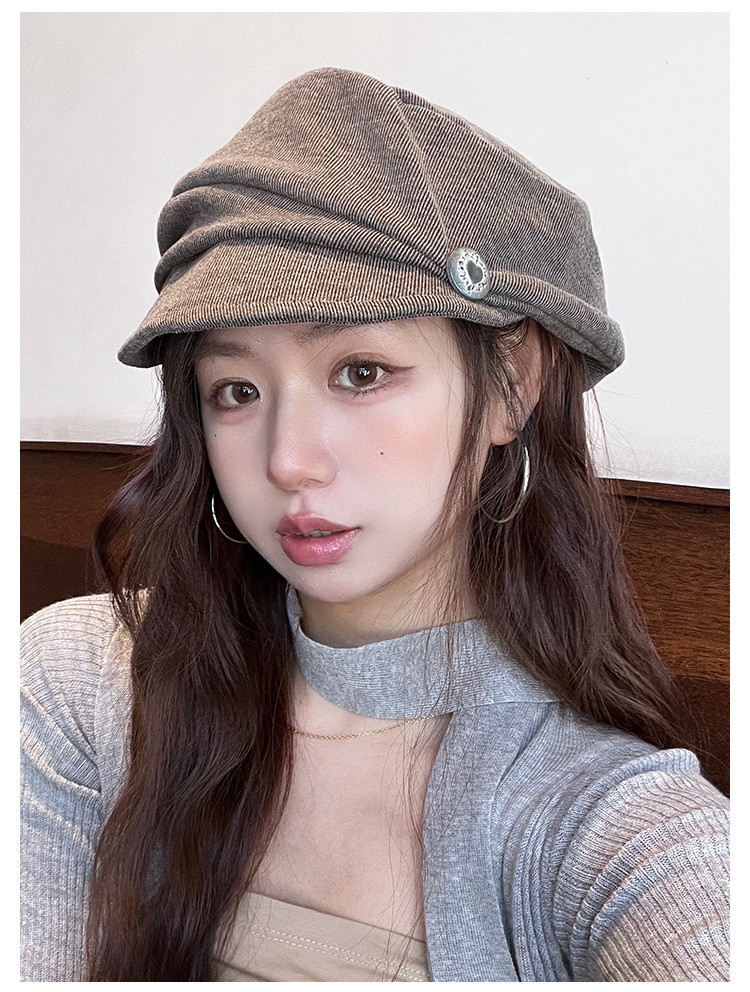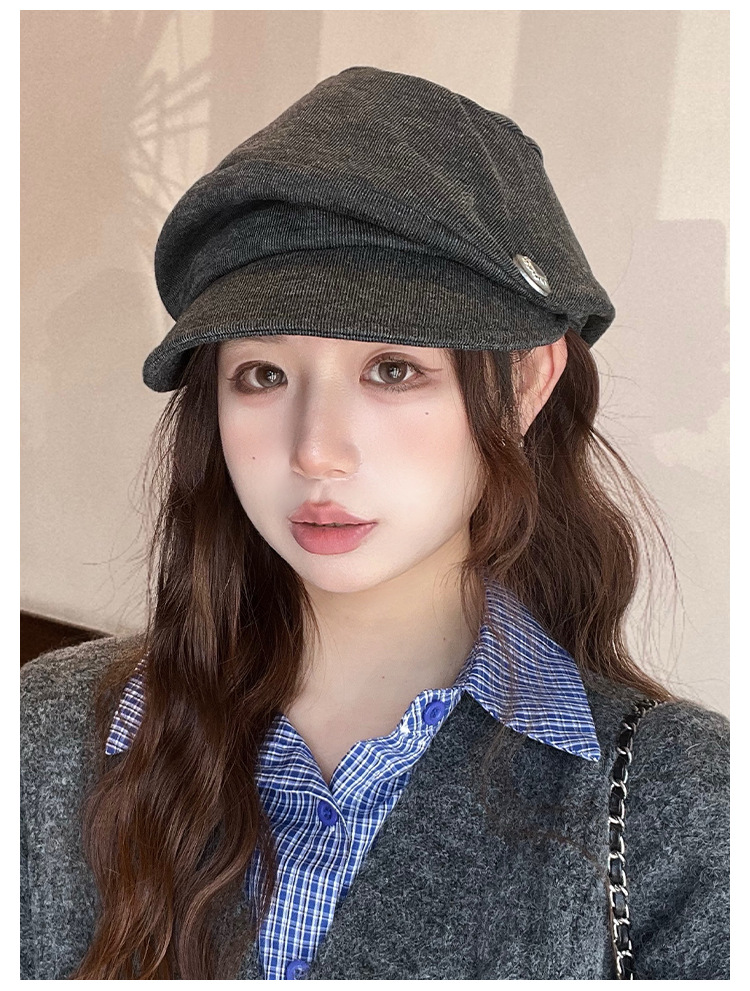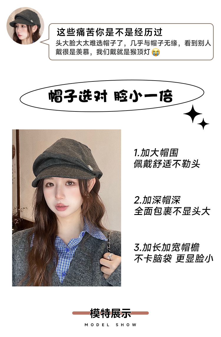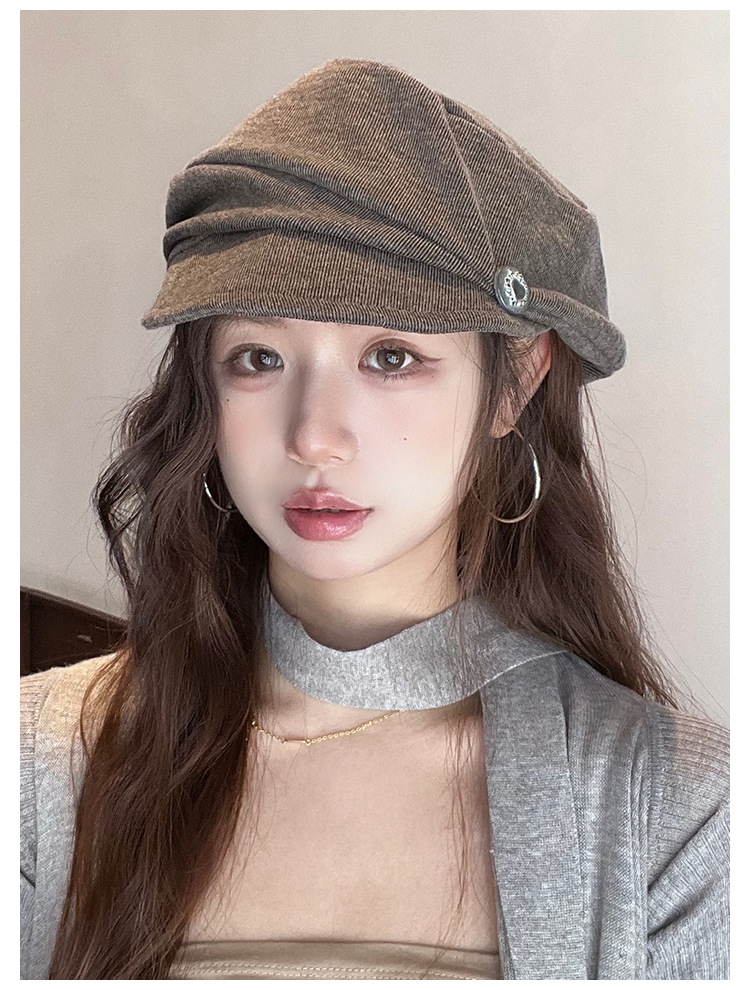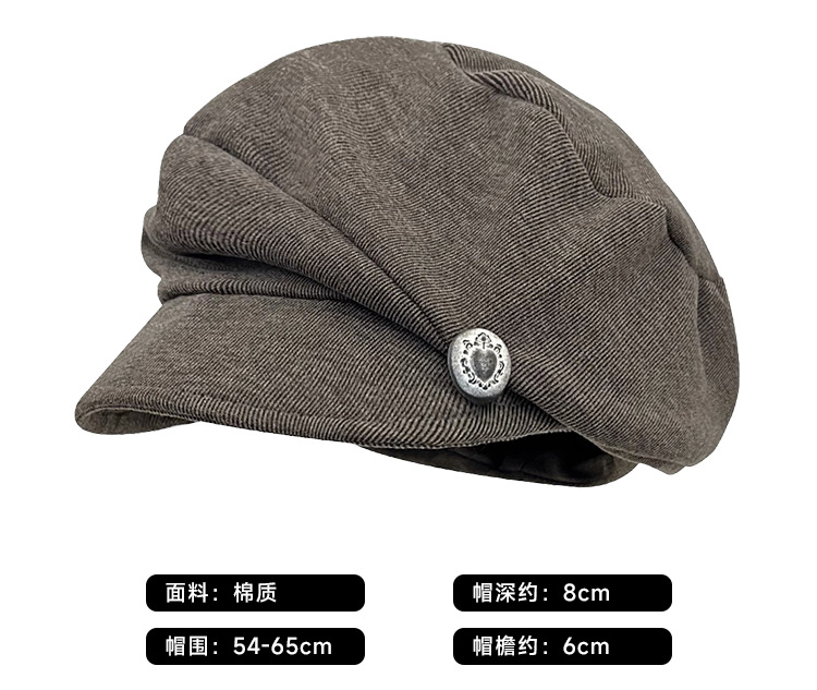산모토 스타일 일본식 주름 패딩 팔각형 모자 여성용 복고풍 얼굴이 작은 큰 머리 크기 베레모 클라우드 화가 모자 가을