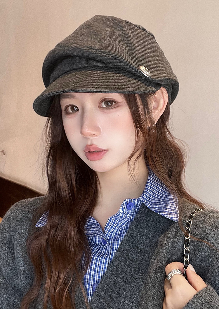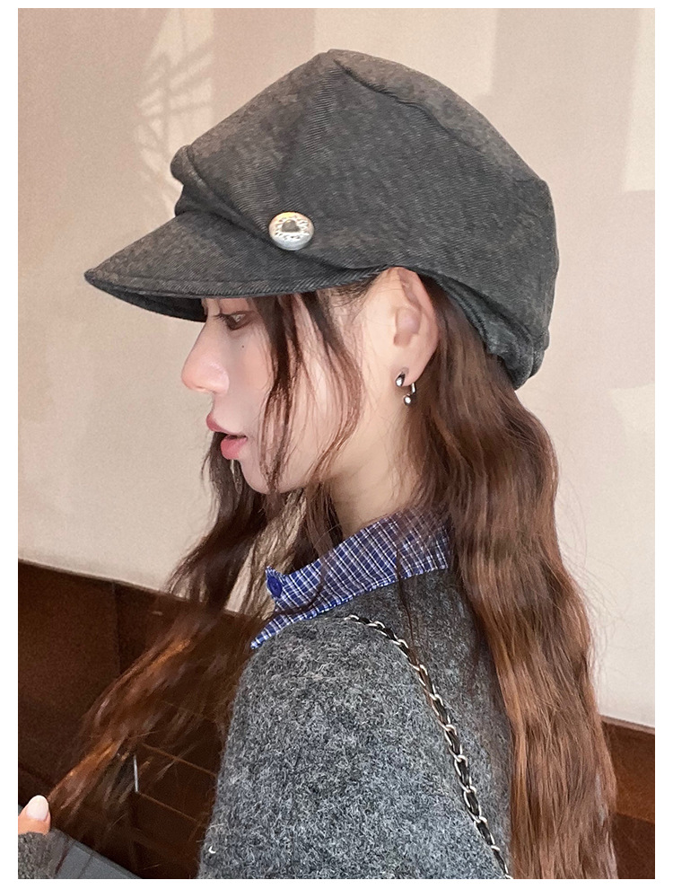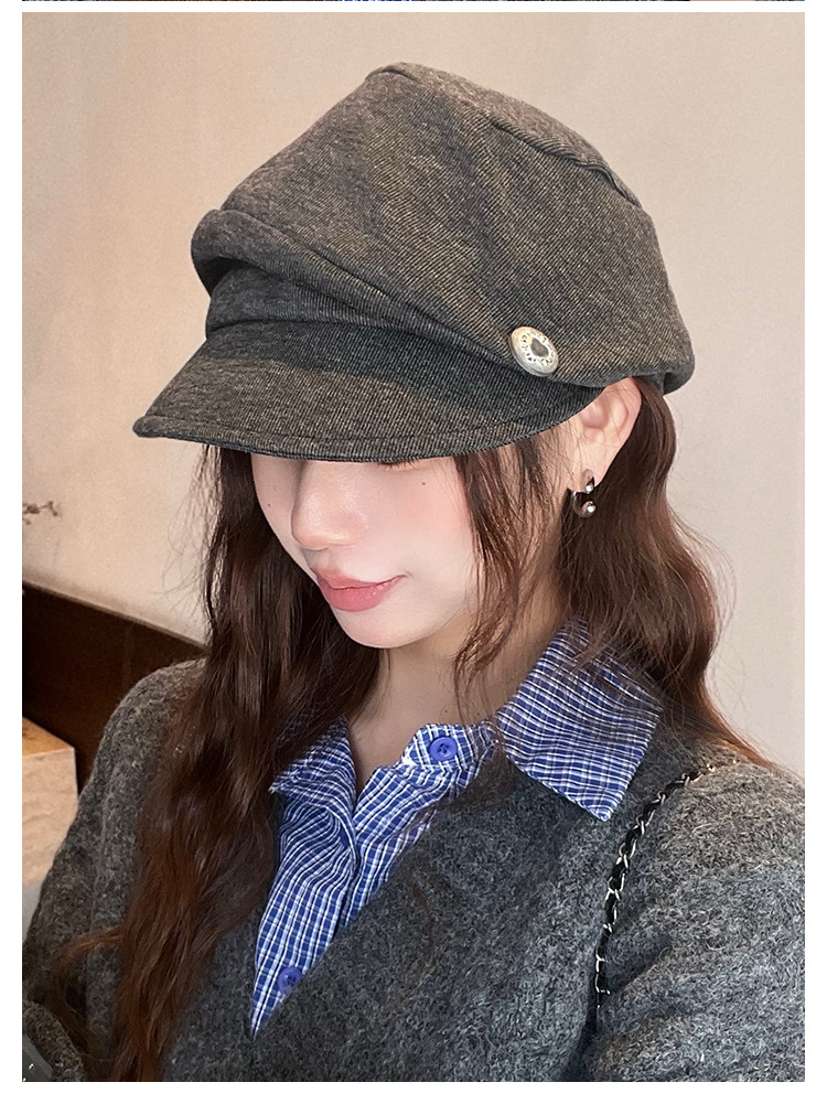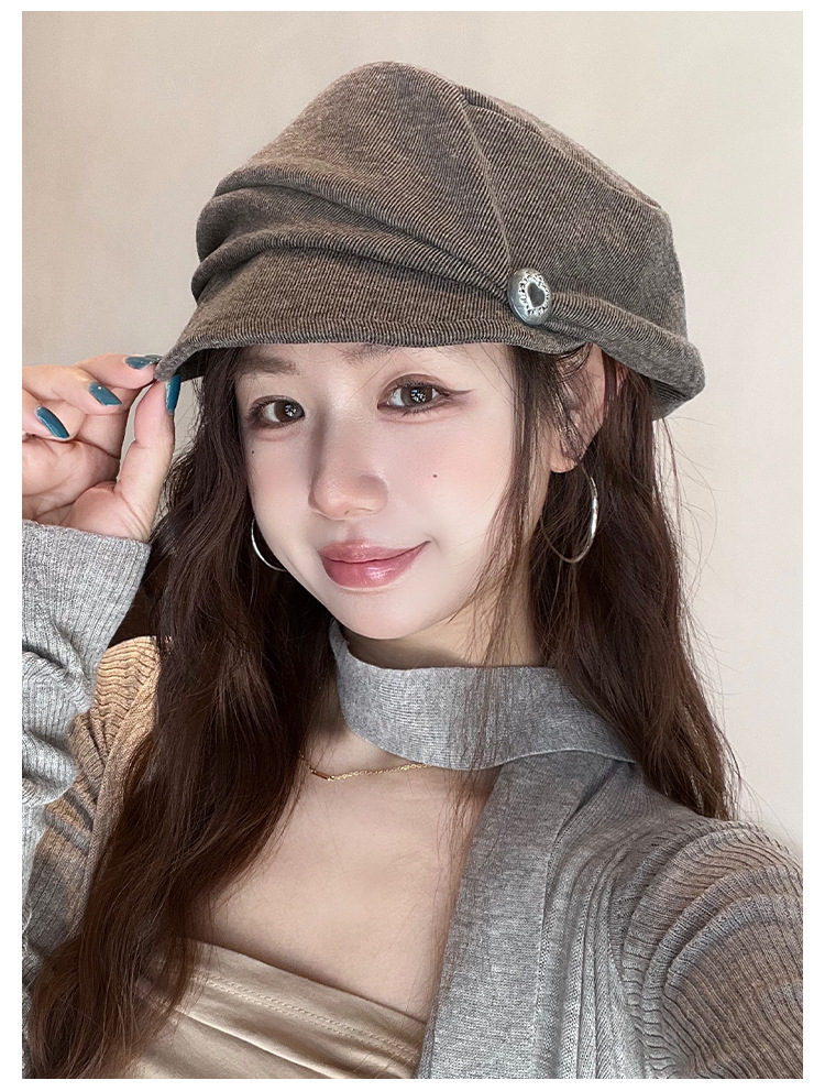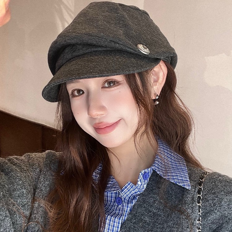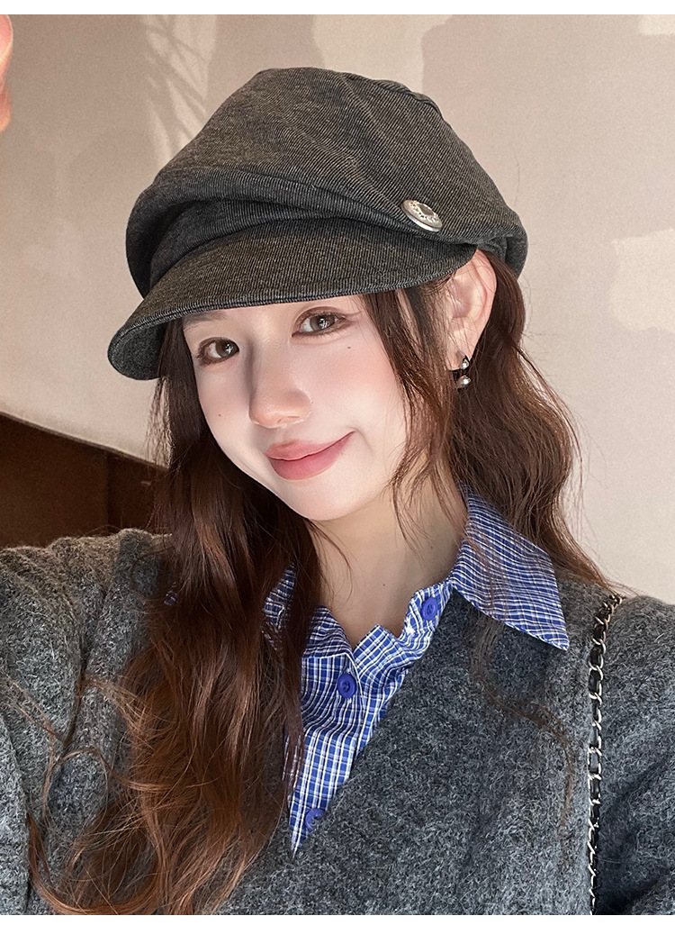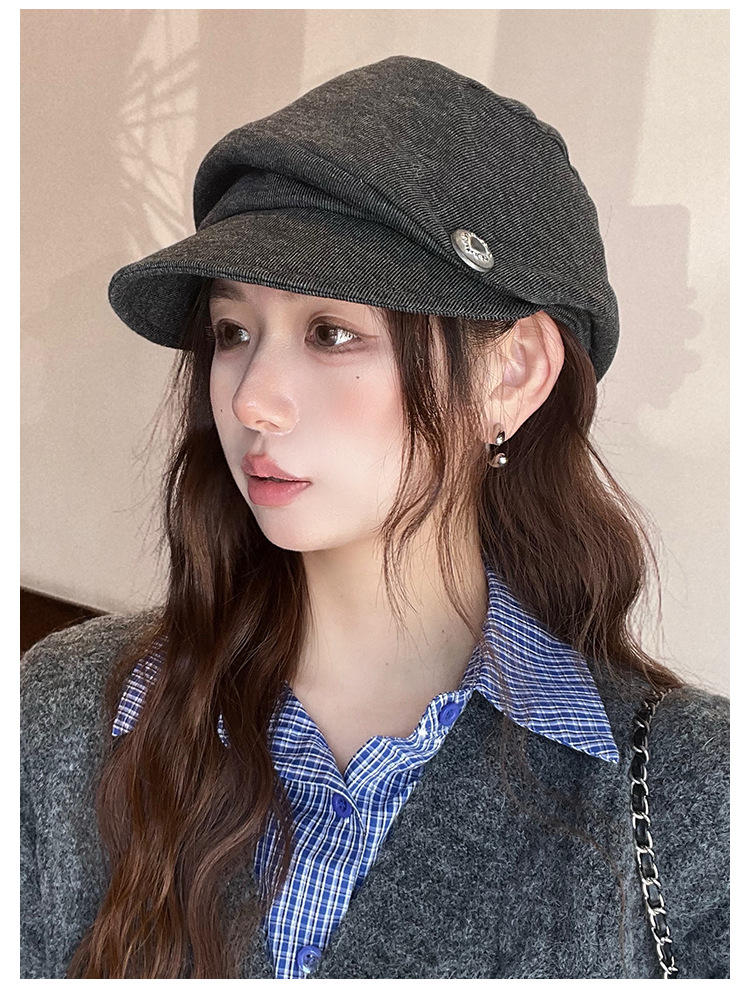 산모토 스타일 일본식 주름 패딩 팔각형 모자 여성용 복고풍 얼굴이 작은 큰 머리 크기 베레모 클라우드 화가 모자 가을