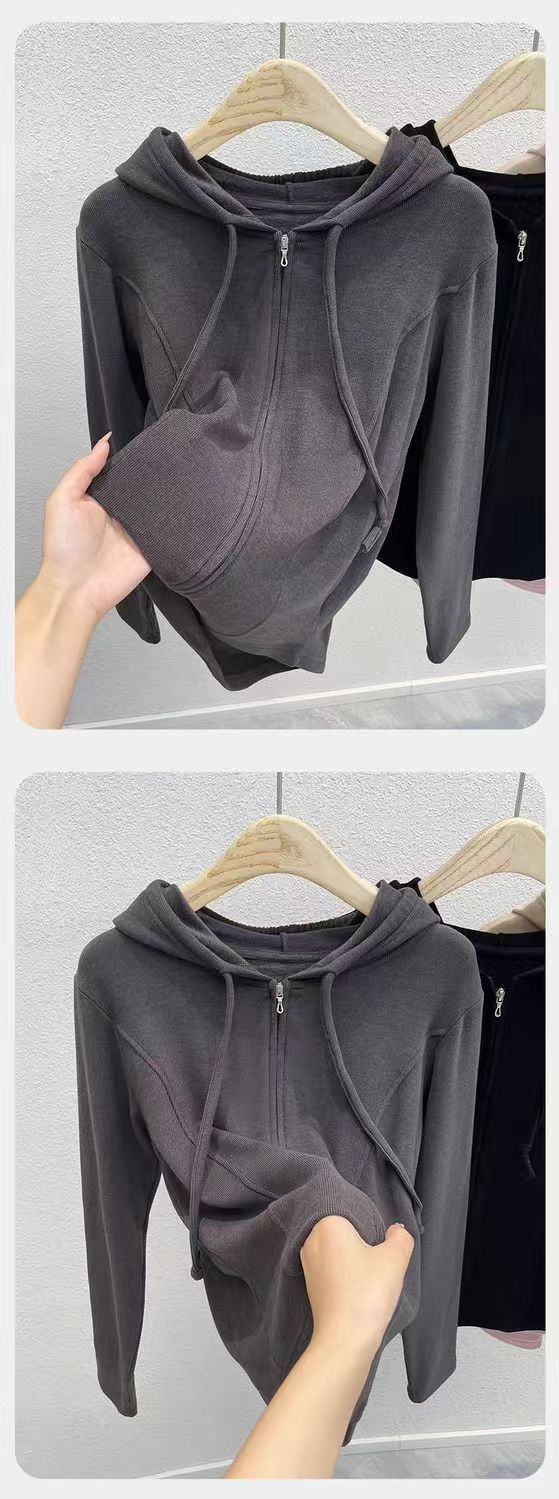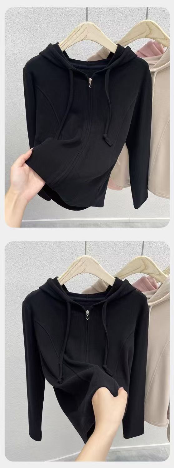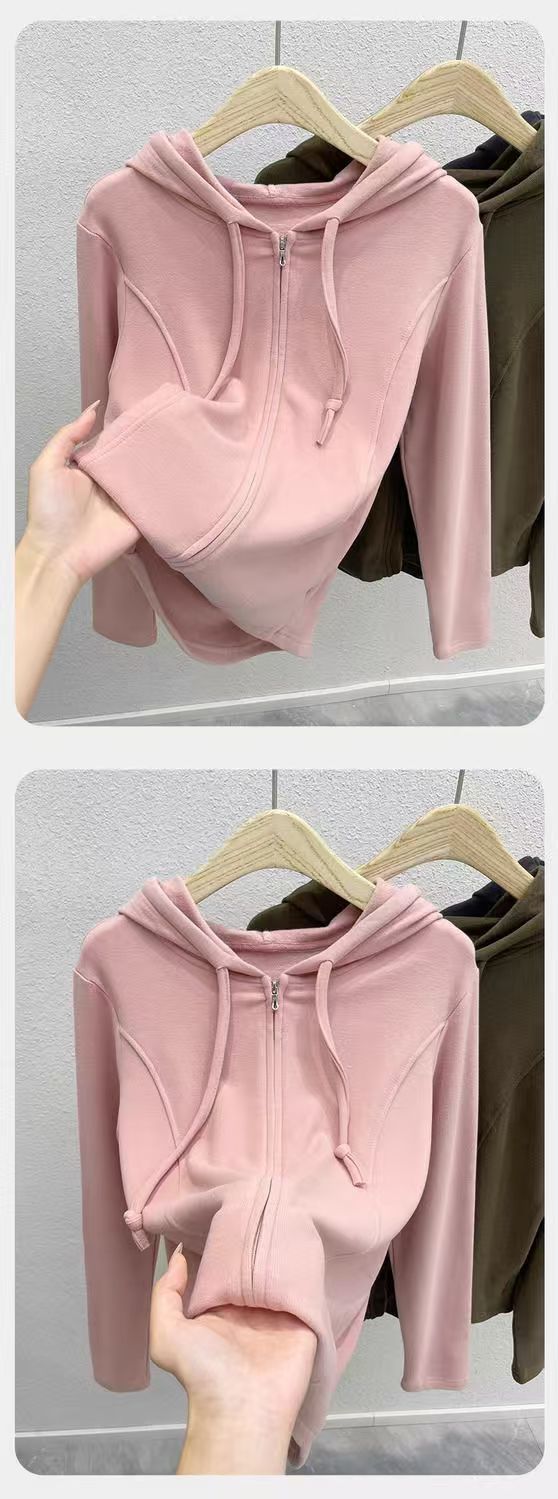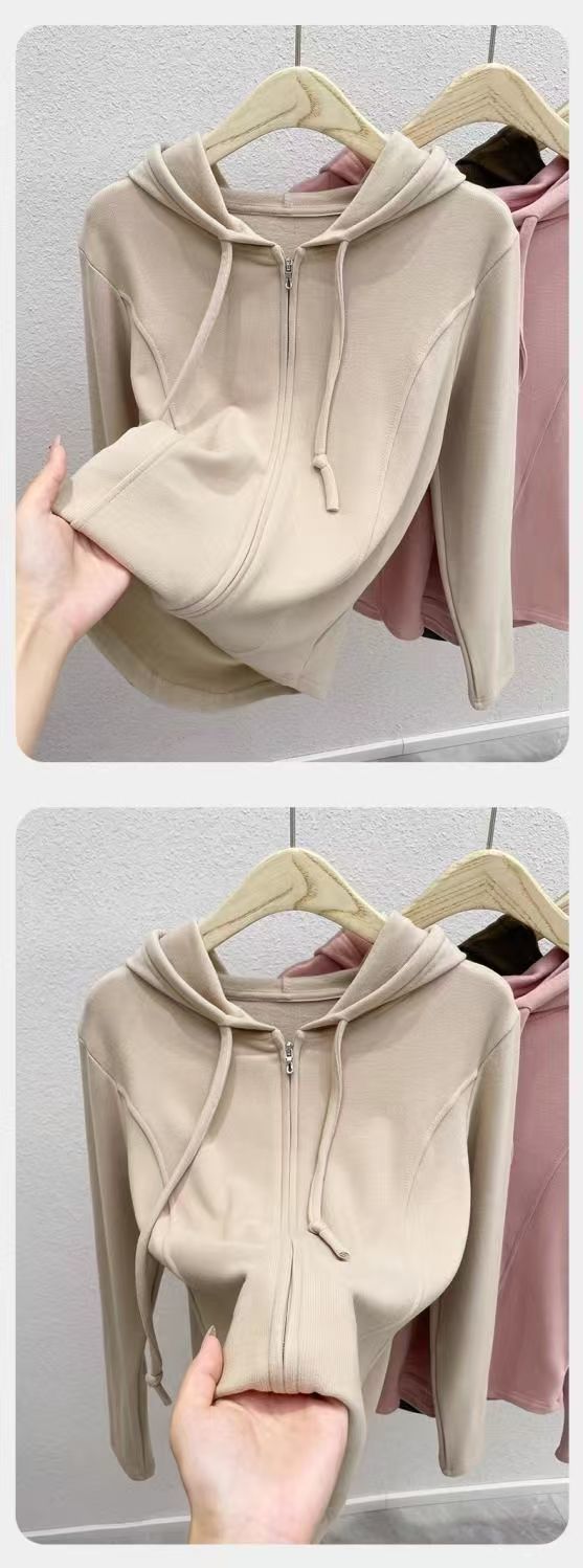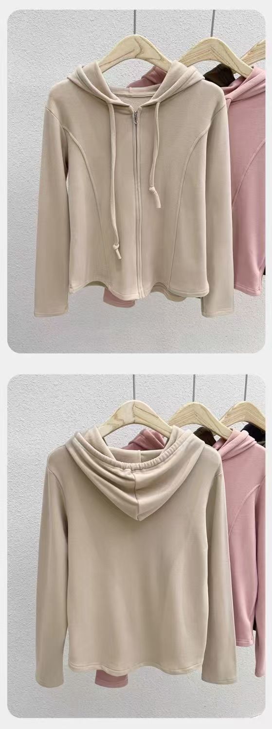 가을, 겨울 여성용 따뜻한 후드 재킷 탑, 지퍼 가디건 디자인, 허리 슬리밍, 다용도 두꺼운 스웨트 셔츠