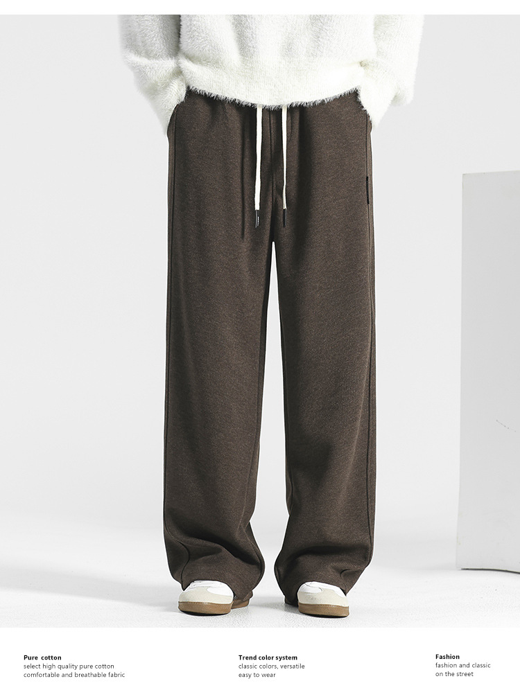 가을 겨울 울 바지 남성 캐주얼 바지 루즈핏 와이드 팬츠 기모 바지 스트레이트 팬츠 겨울 남성 바지