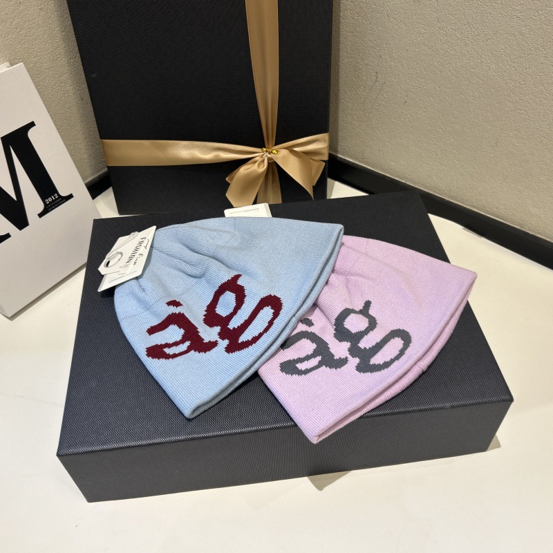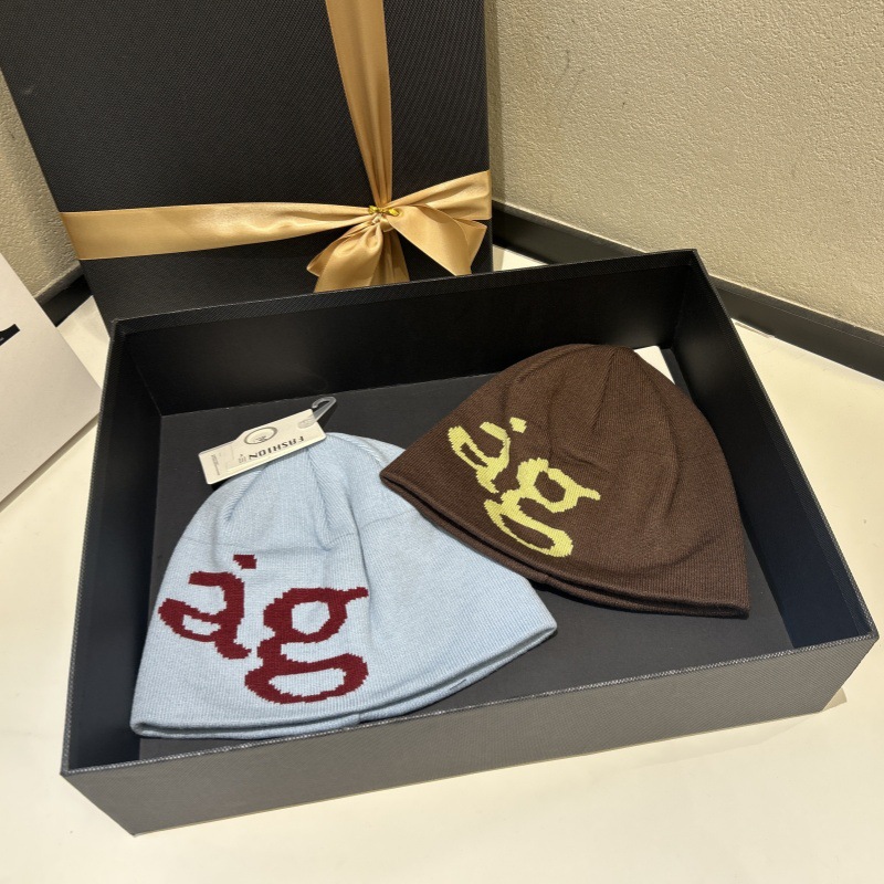 美式复古新款字母提花毛线针织帽男女秋冬保暖时尚包头帽出街潮款