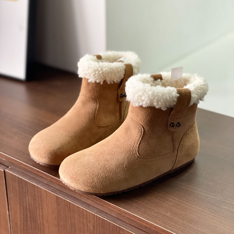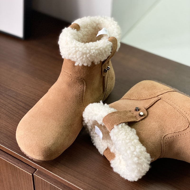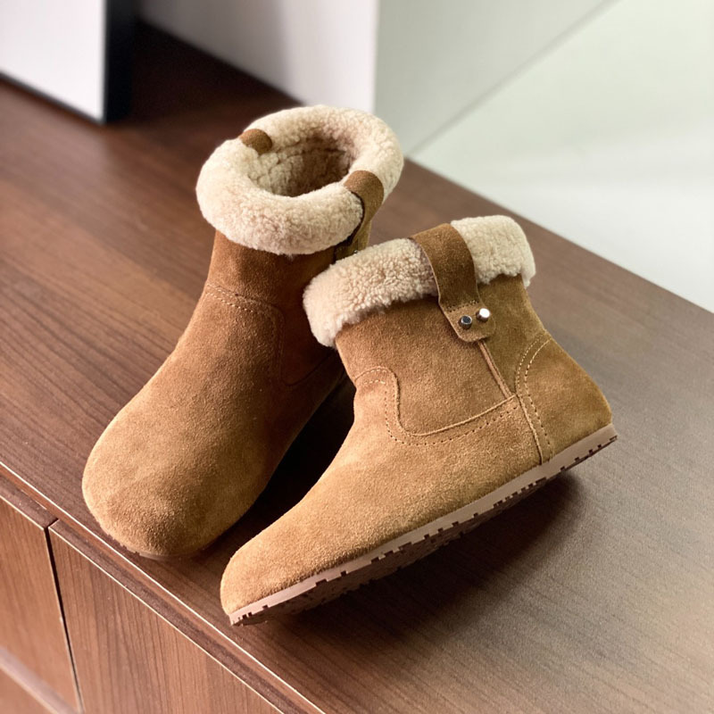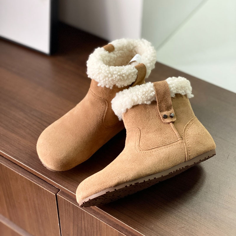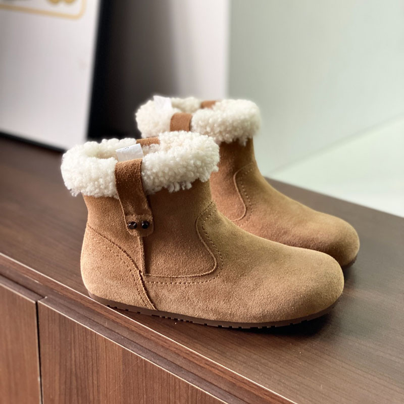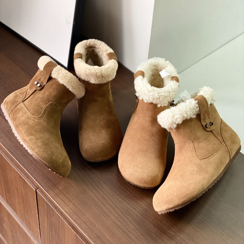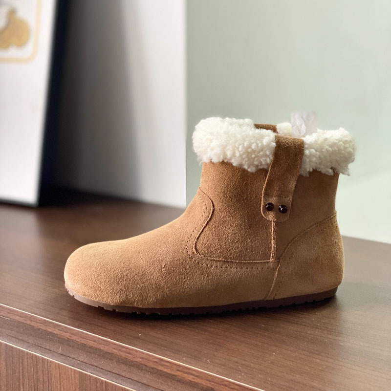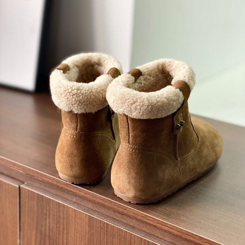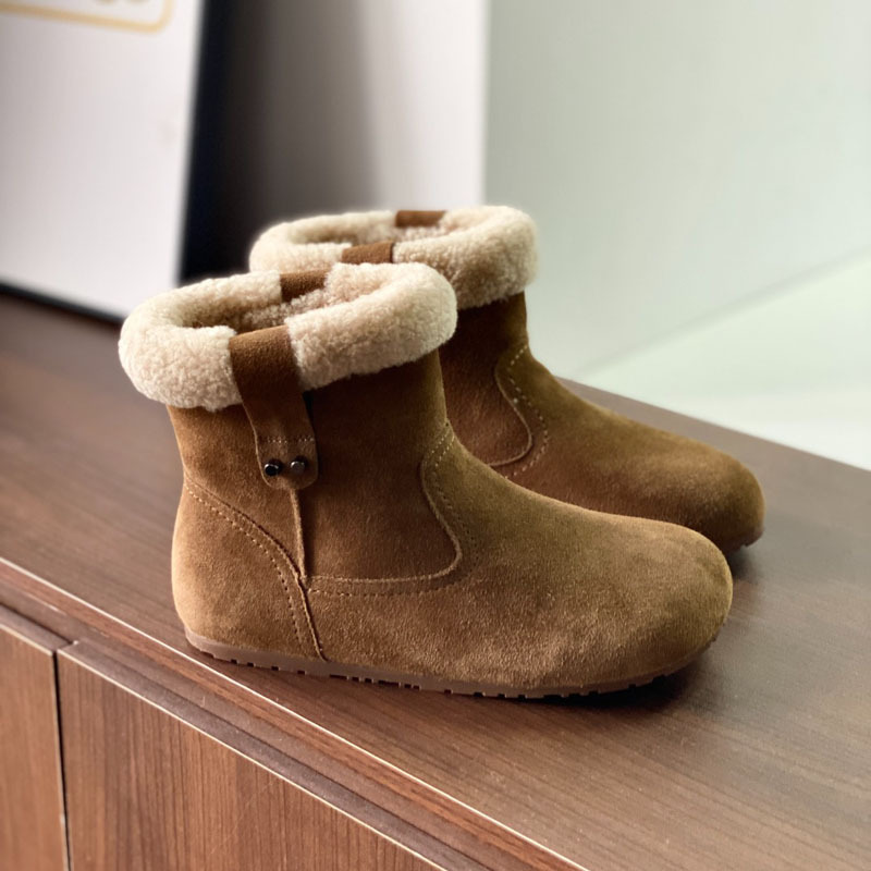 동관 대외 무역 고품질 여성 신발 및 부츠 여성 라운드 발가락 복고풍 모피 짧은 부츠 플랫 코튼 신발 따뜻한 플러시 스노우 부츠