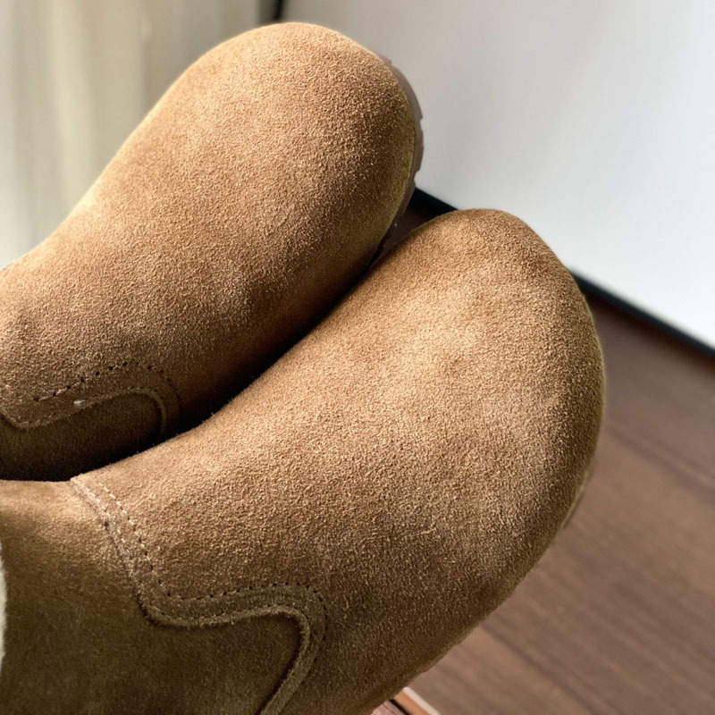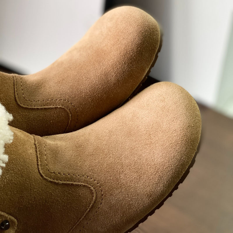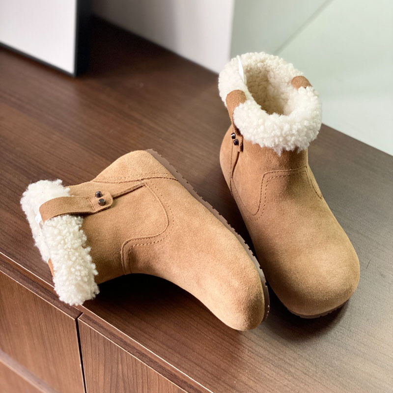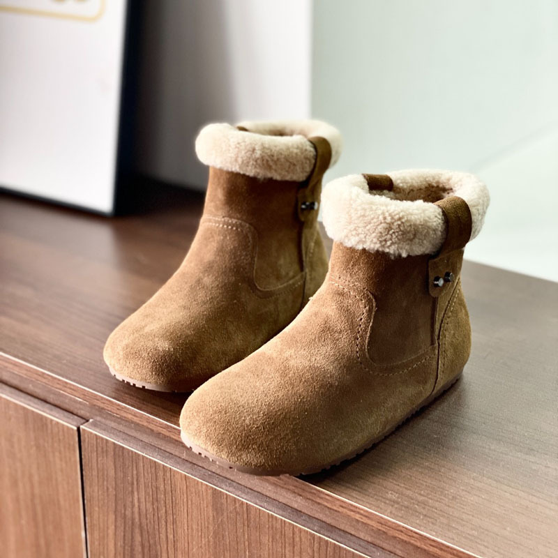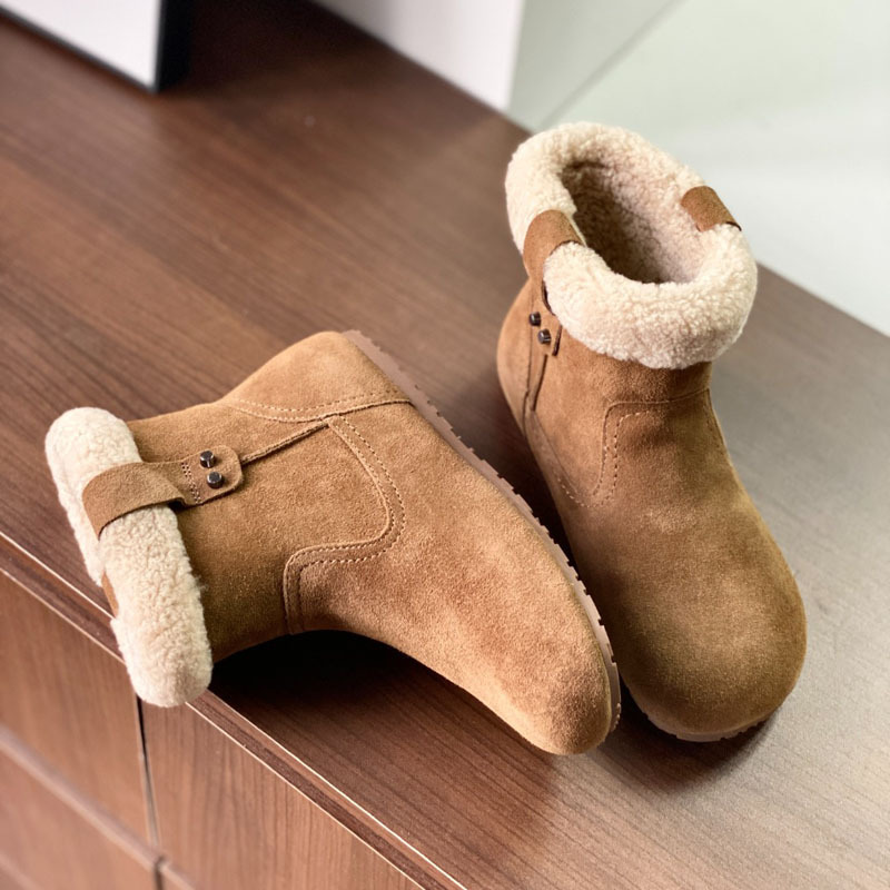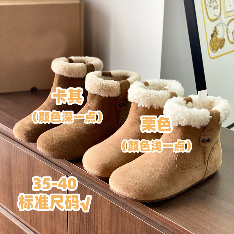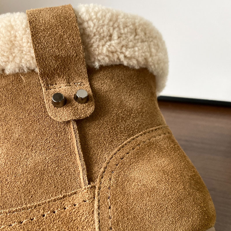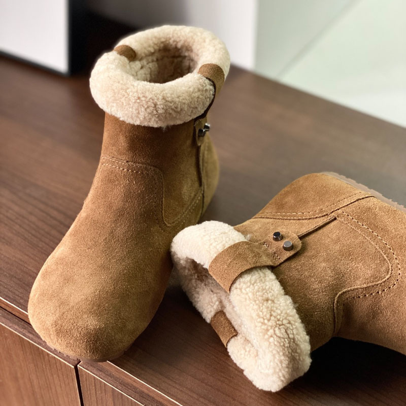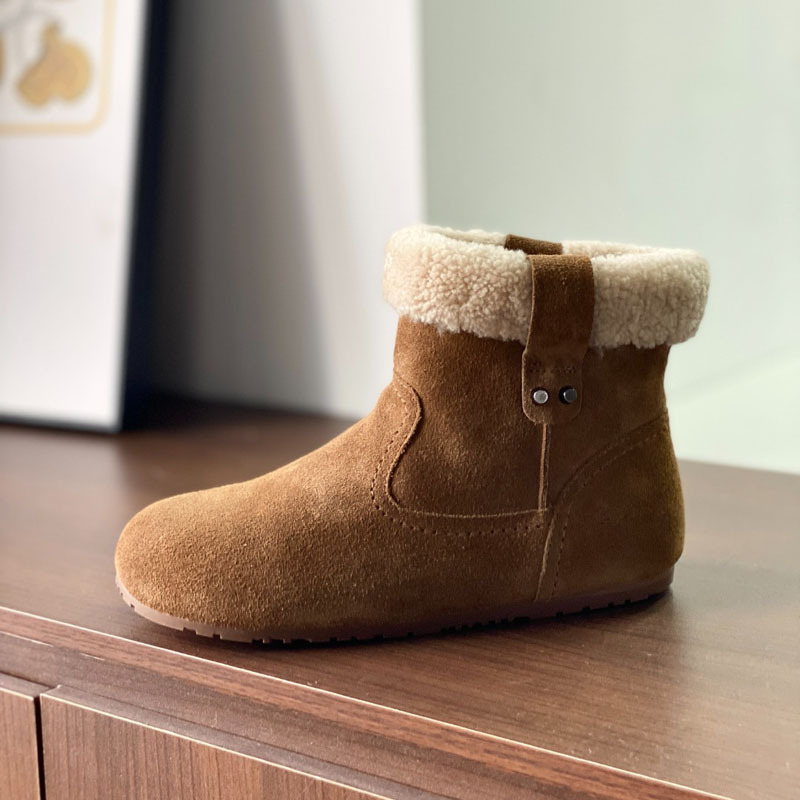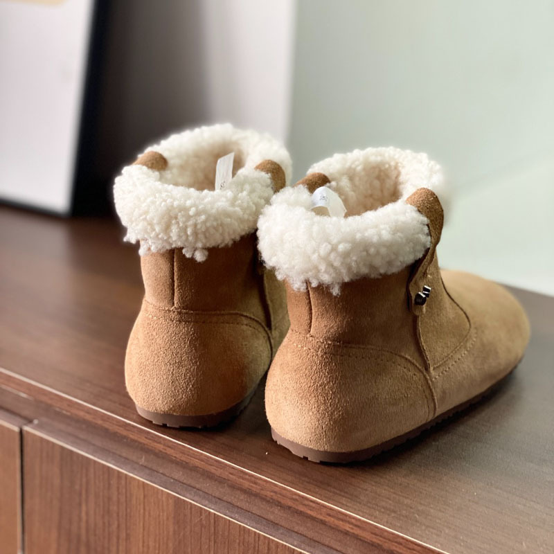 동관 대외 무역 고품질 여성 신발 및 부츠 여성 라운드 발가락 복고풍 모피 짧은 부츠 플랫 코튼 신발 따뜻한 플러시 스노우 부츠