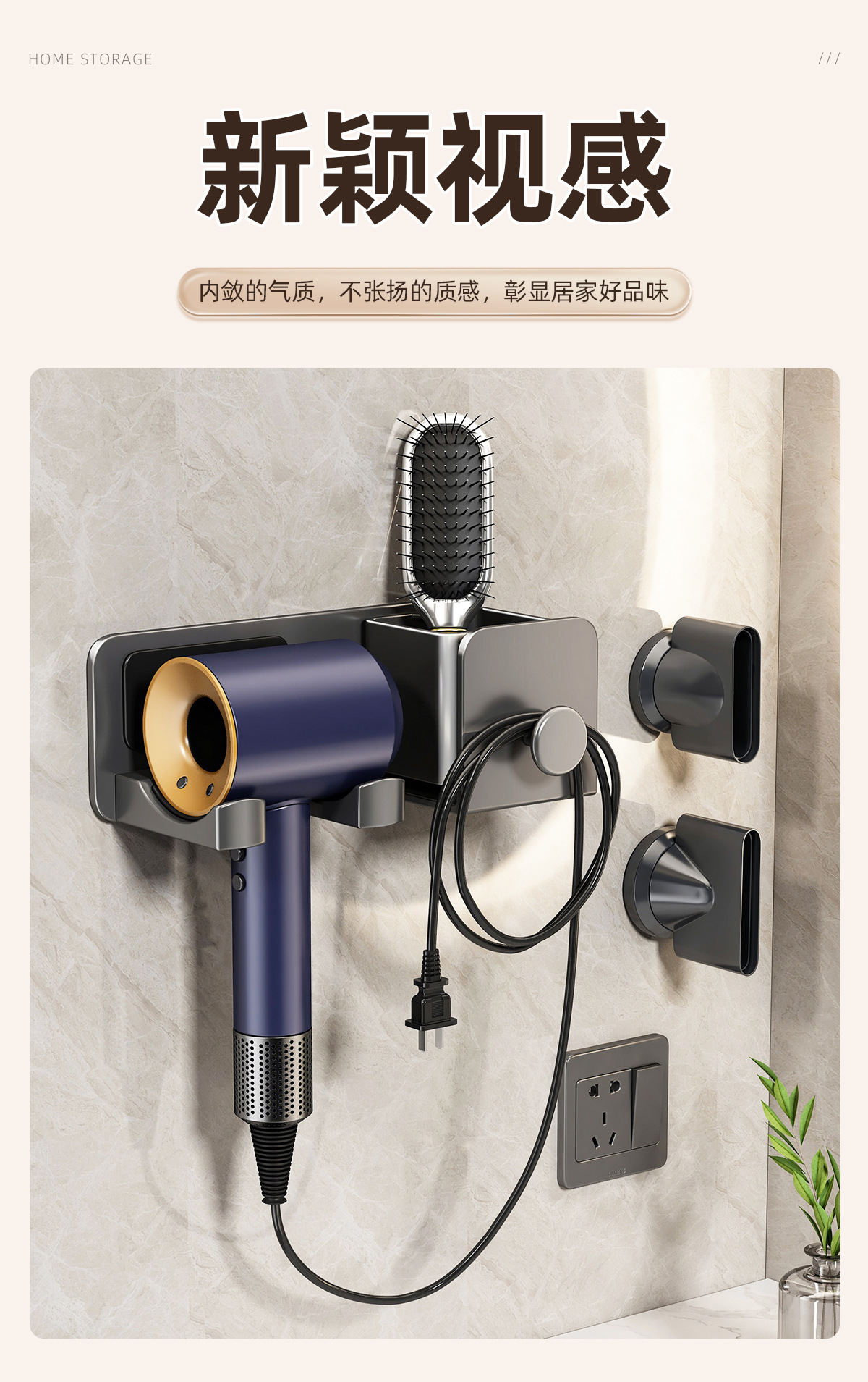펀칭 없는 헤어드라이어 스탠드(플러그 홀더 포함) 건 그레이
