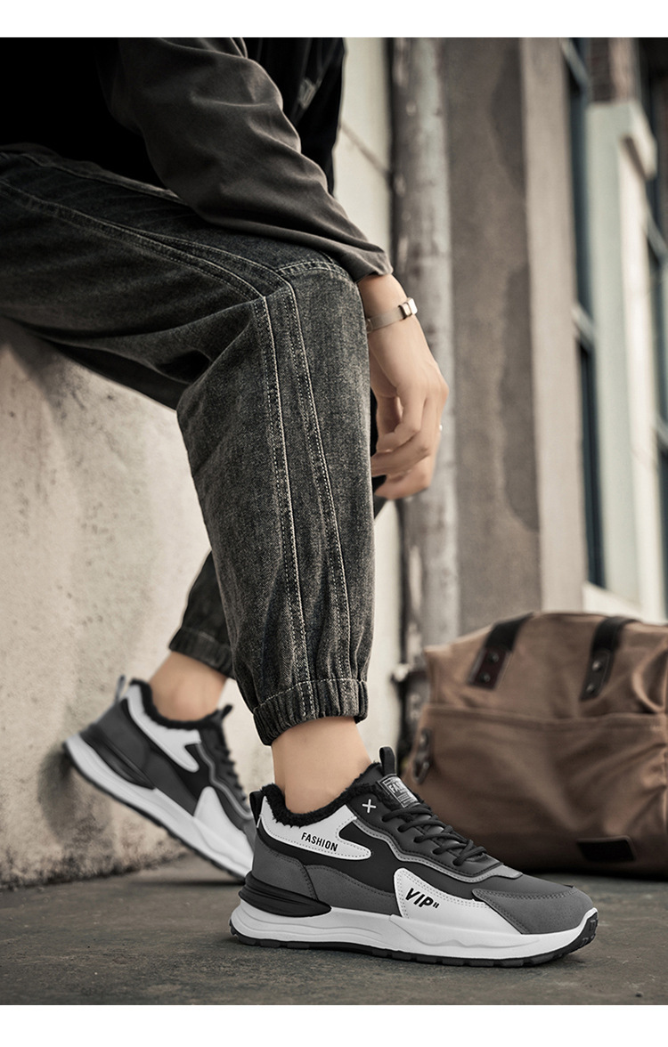 남성 신발, 겨울 벨벳 운동화, 남성 트렌디하고 다재다능한 두꺼운 밑창 두꺼운 따뜻한 면화, 캐주얼 아빠 신발, 트렌디한 신발