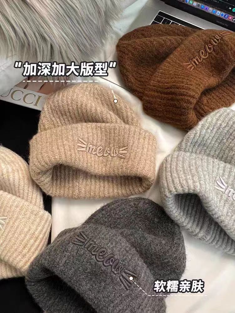 여성용 니트 모자, 얼굴이 작은 겨울 모자, 큰 머리 모직 산후 모자, 가을 겨울 귀 보호 따뜻한 방한 모자, 귀여운