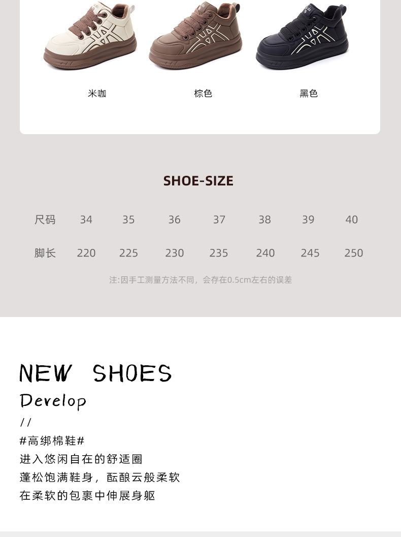 | 产品类别 | 棉鞋 | 开口深度 | 浅口(7cm以下), 中口(7-11CM), 高口(11CM以上) |