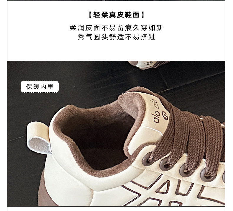 여성을위한 정품 가죽 플러스 벨벳 빵 신발 2025 겨울 새로운 다목적 두꺼운 밑창 따뜻한 면화 캐주얼 스포츠 플러스 벨벳 부츠
