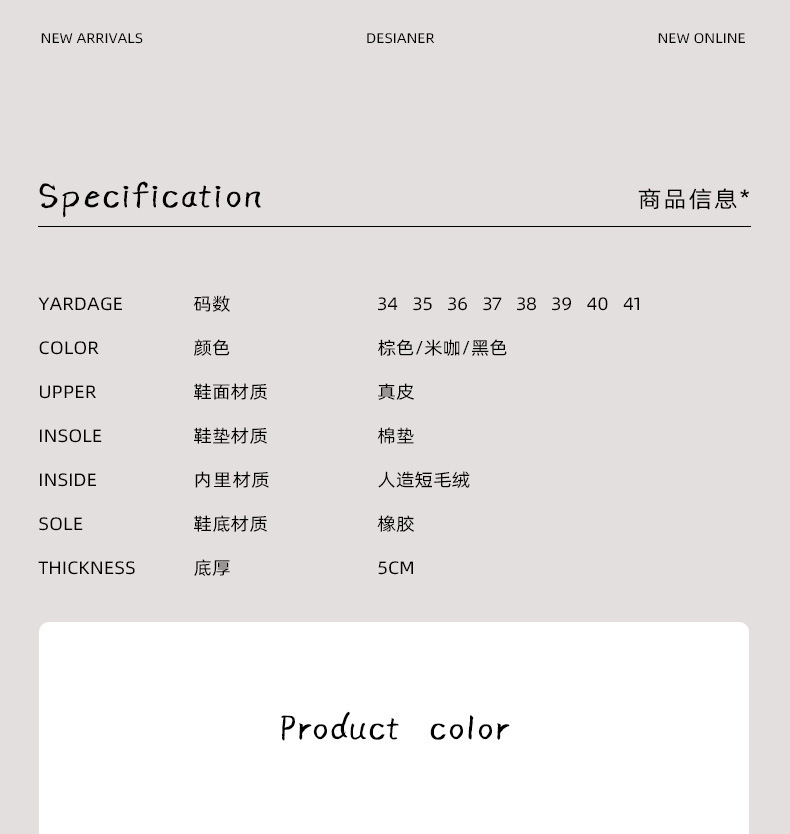 | 鞋跟高度 | 中跟(3-5CM) | 图案 | 纯色 |