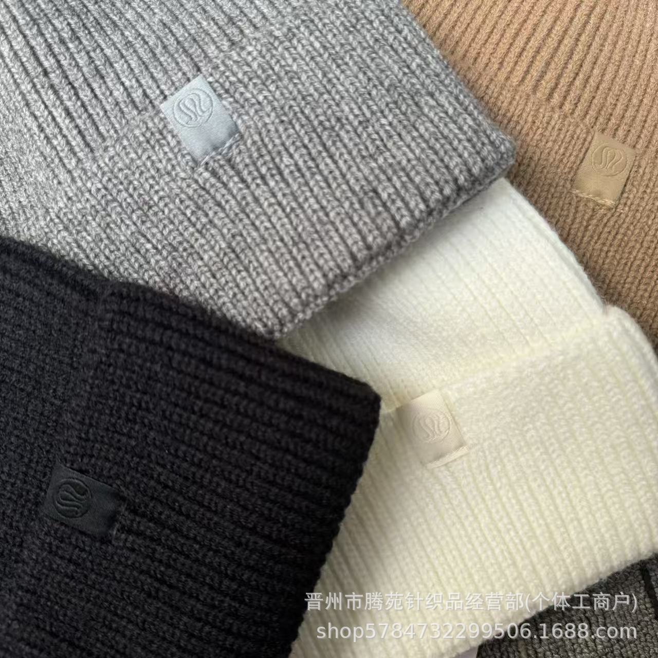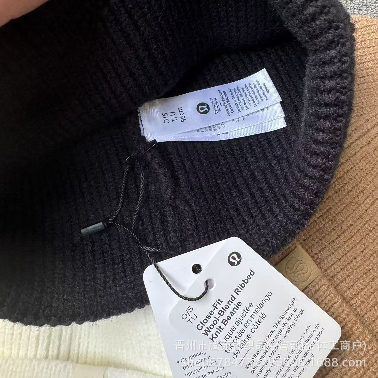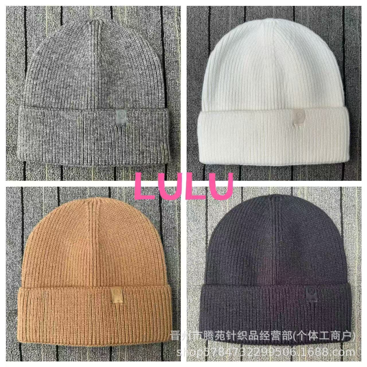秋冬新款lulu露露布标针织毛线帽子纯色保暖百搭露露女士冷帽
