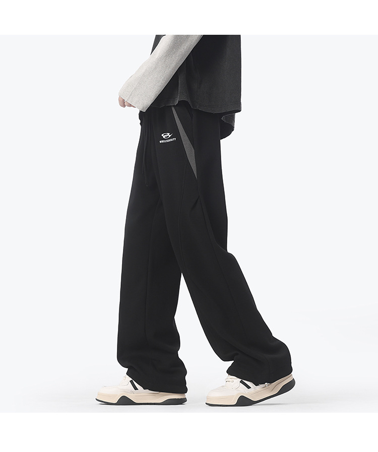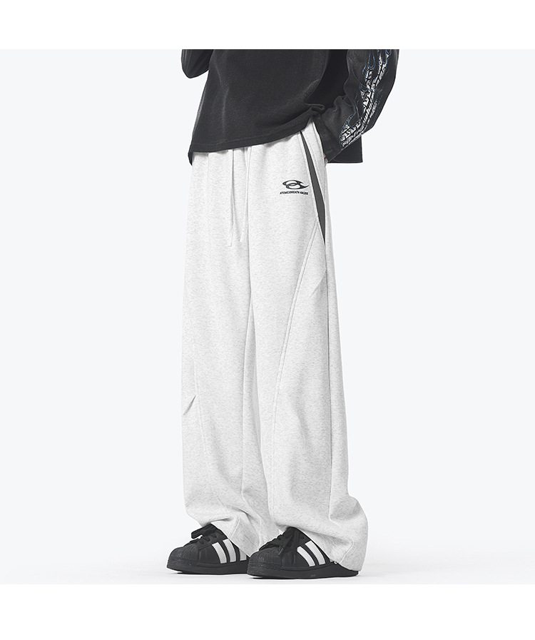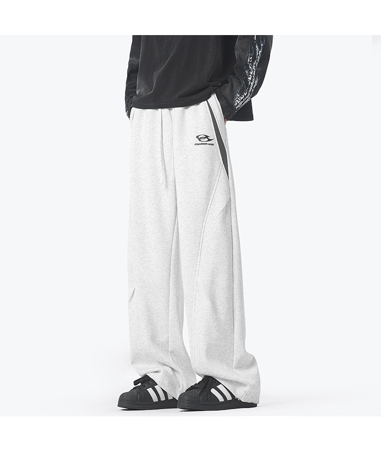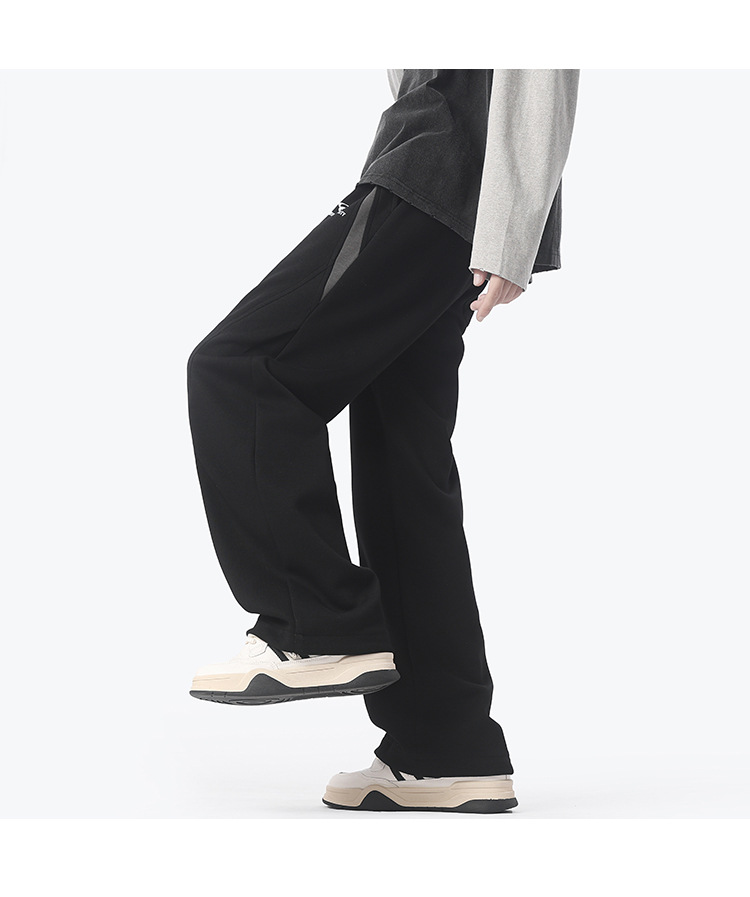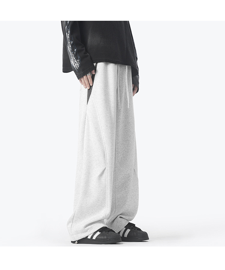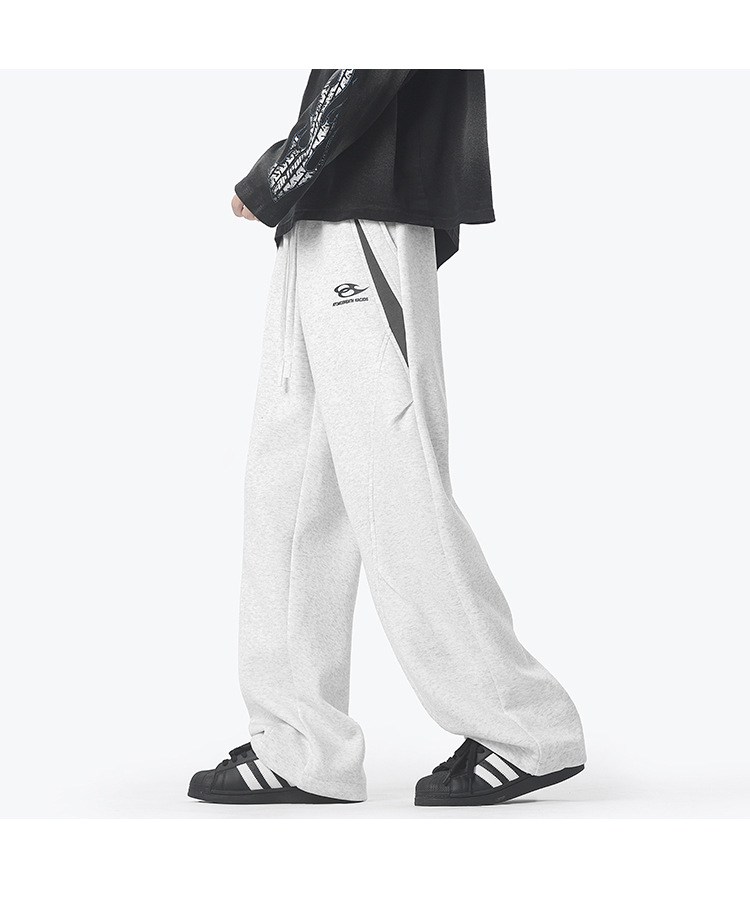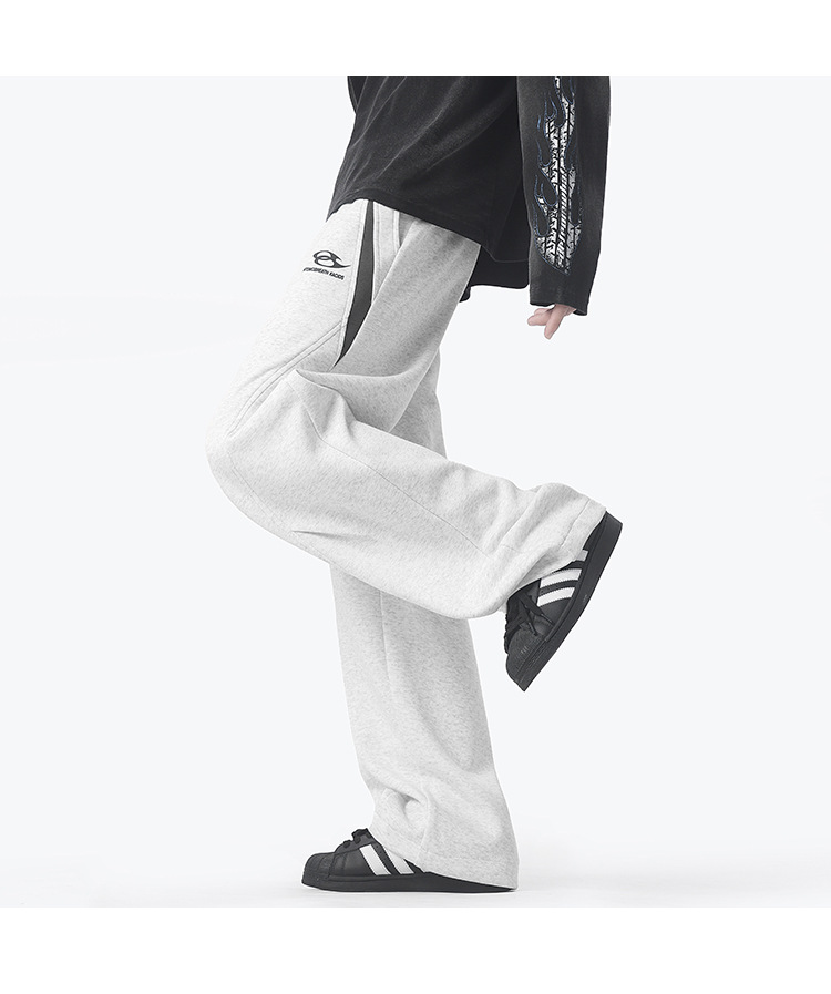 아메리칸 디컨스트럭티드 콘트라스트 컬러 스플라이싱 헤비웨이트 스웨트팬츠 남성 트렌디 브랜드 가을 겨울 신작 스트레이트 루즈 스포츠 캐주얼 롱팬츠