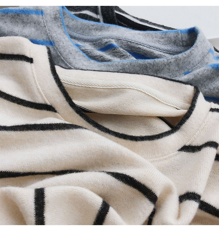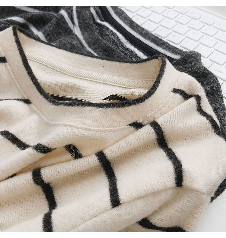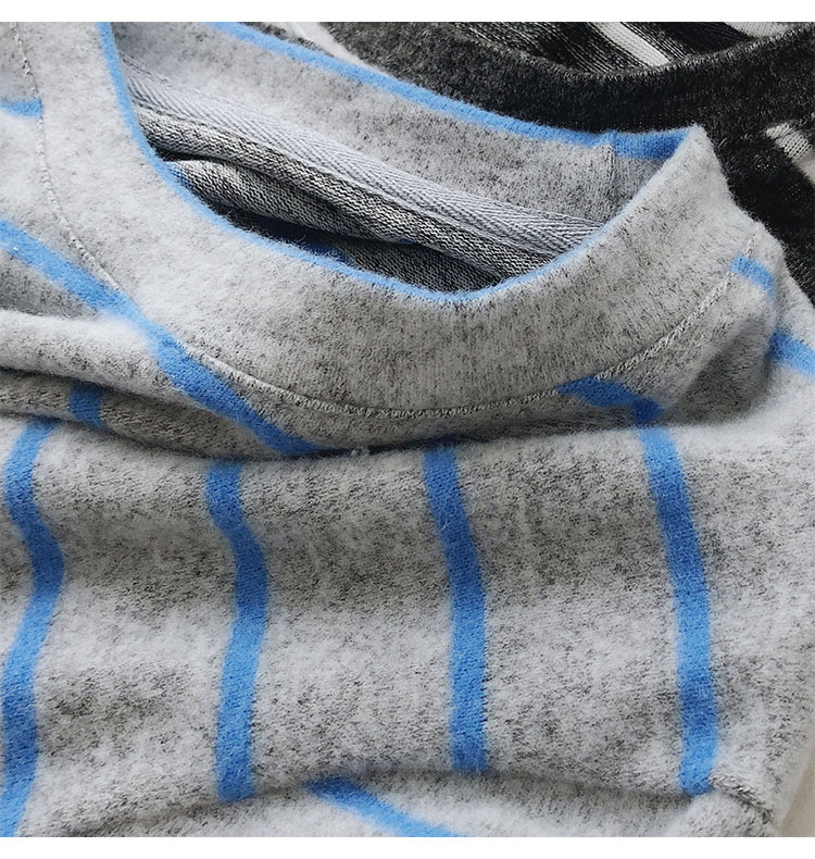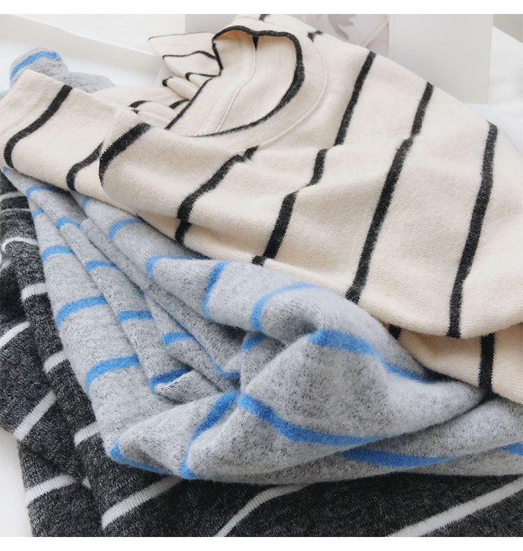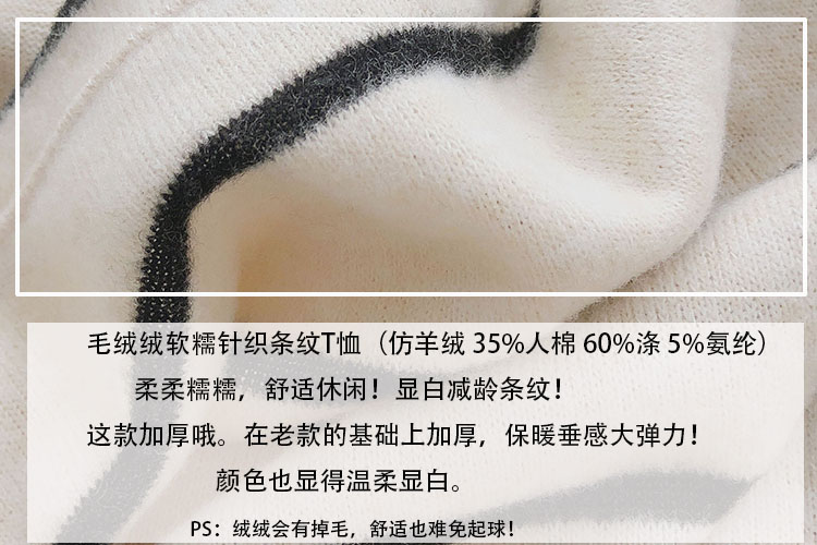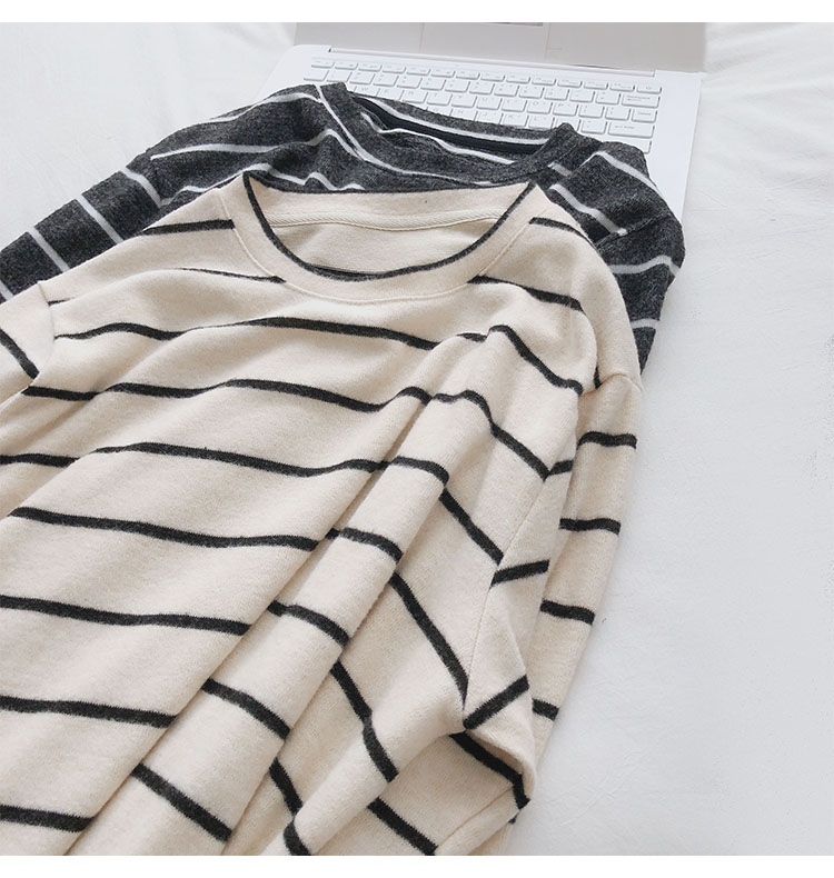 가을 겨울 여성용 부드러운 캐시미어 느낌의 플러시 스트라이프 니트 바닥 셔츠 캐주얼 루즈한 두꺼운 긴팔 티셔츠