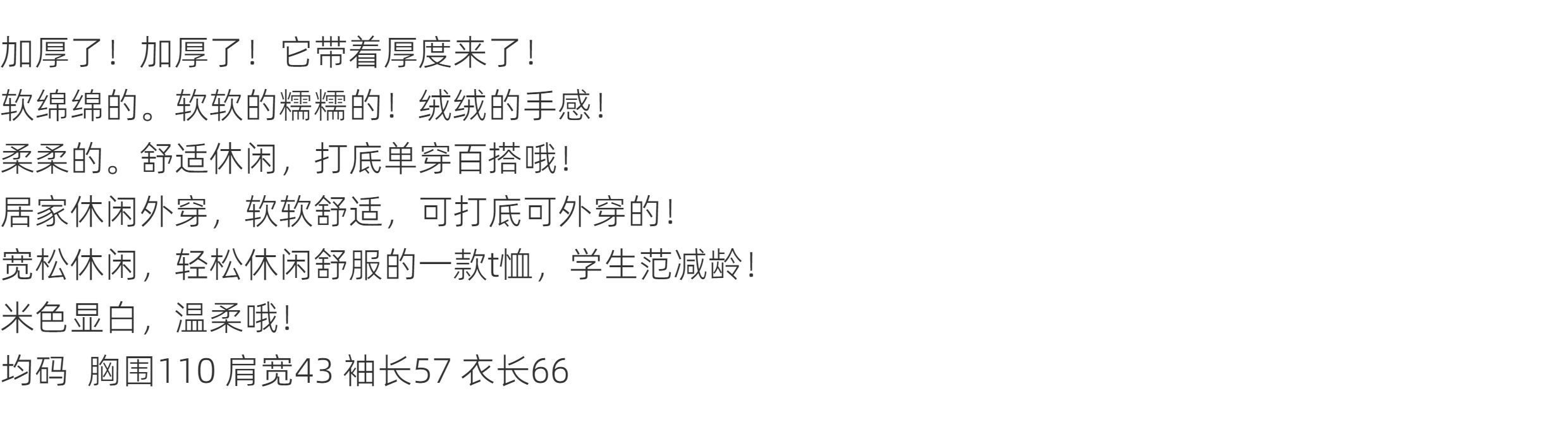 | 衣长 | 普通款(50cm<衣长≤65cm) | 领型 | 圆领 |