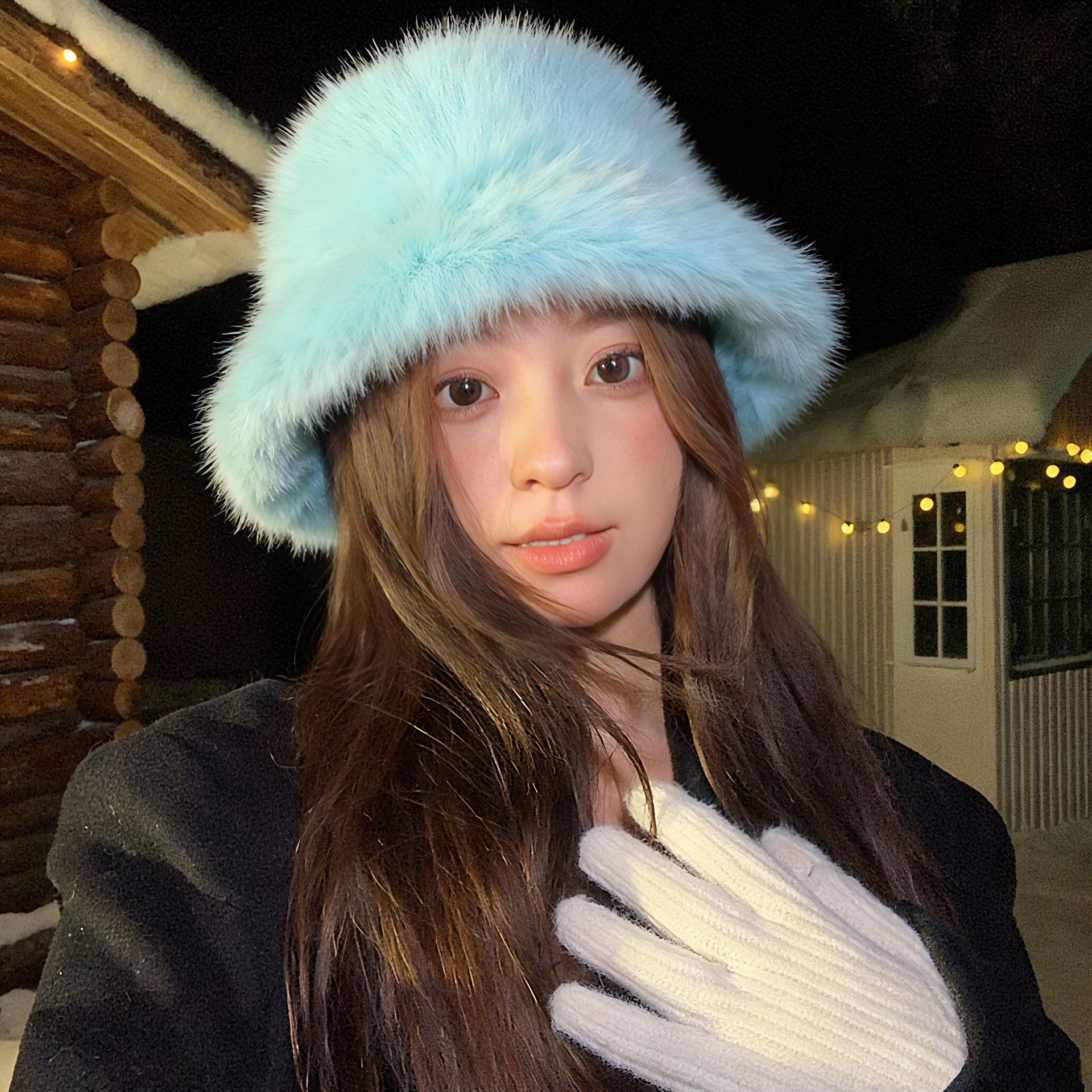 가을 겨울 여성용 귀여운 모피 모자, 얼굴이 보이는 따뜻한 봉제 몽골 모자, 남성용 소형 방한 및 방풍 귀 보호 어부 모자