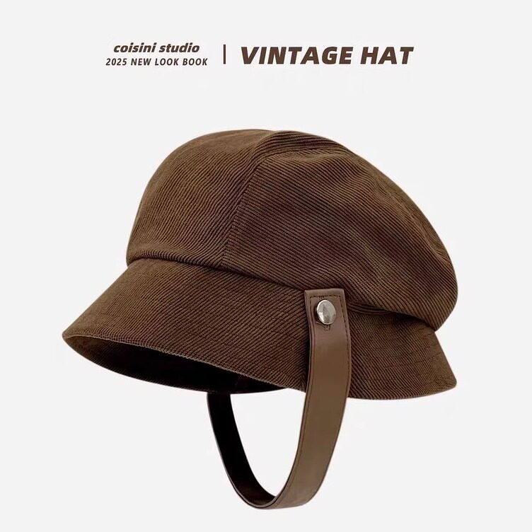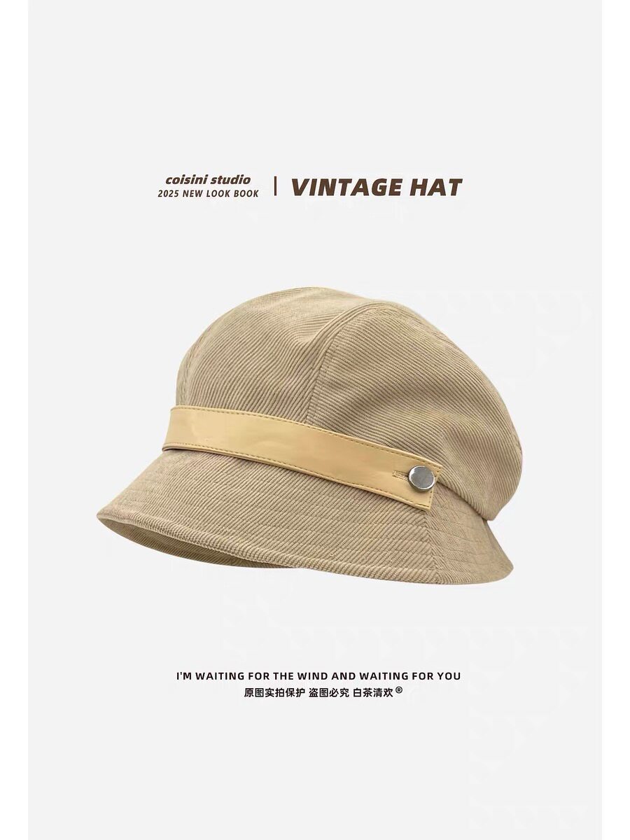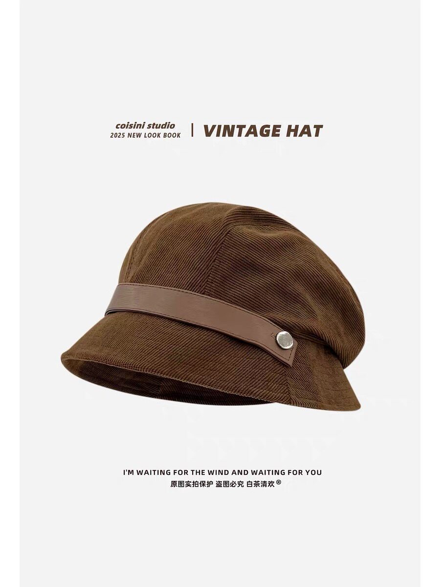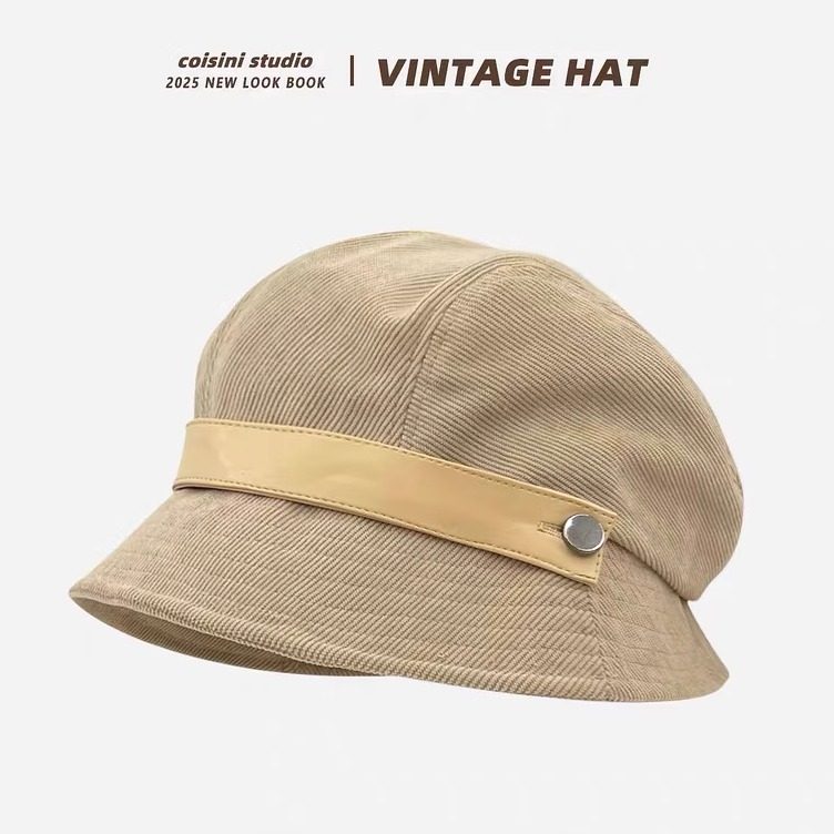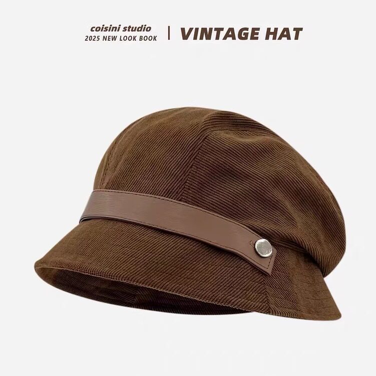 브라운 코듀로이 버킷햇, 원캡으로 여러 번 착용 가능, 작은 모자로도 사용 가능, 사이클링 시 착용 가능, 캐주얼하고 다재다능한 여성