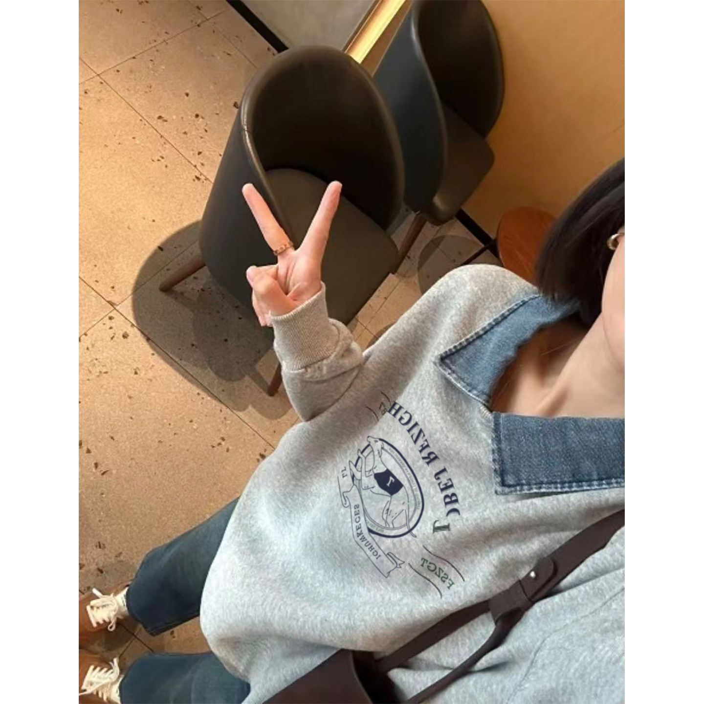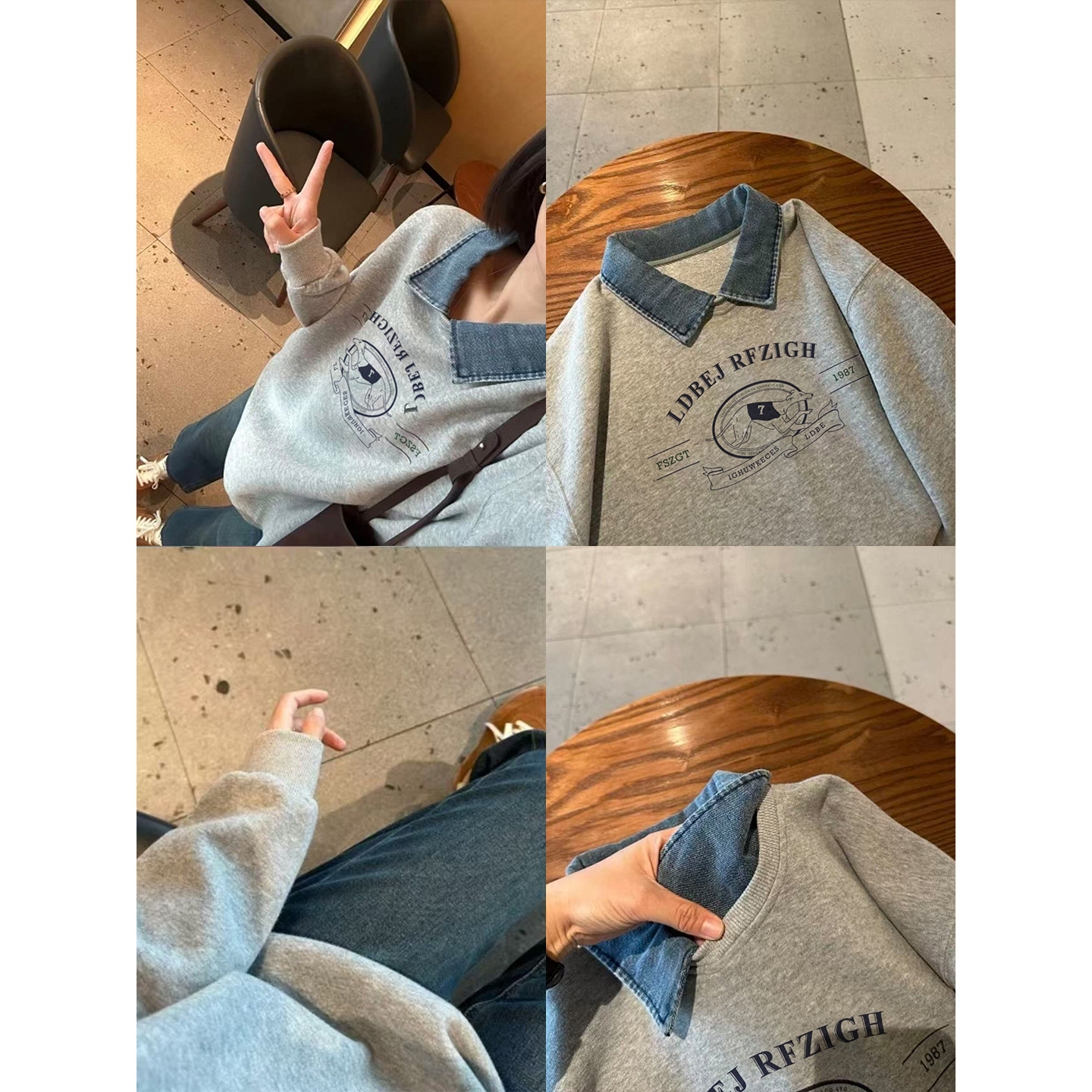 여성을 위한 공식 사진 디자인 가짜 투피스 스웨트 셔츠 새로운 벨벳 가을, 겨울 유행 느슨한 만화 폴로 칼라 따뜻한 탑