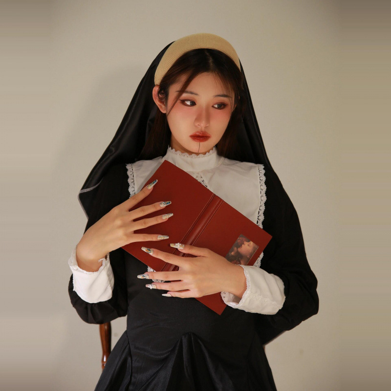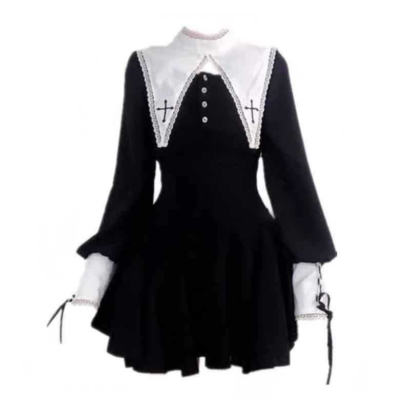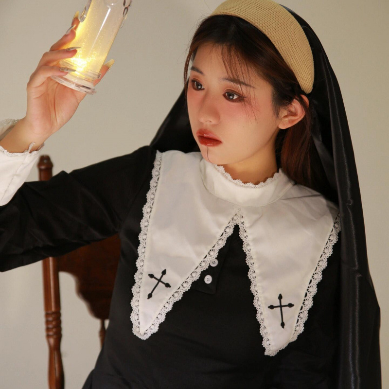 할로윈 코스프레 의상 대비 드레스 성인 여성 다크 스위트 쿨 자수 할로윈 수녀 의상