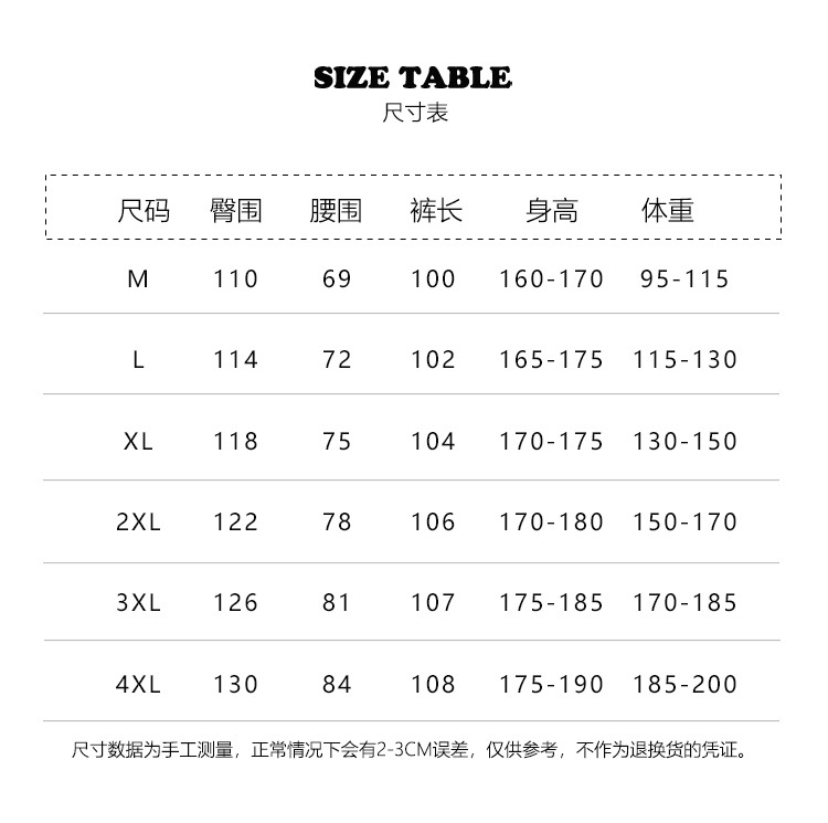 | 颜色 | 黑色, 浅灰, 深灰, 黑色-加绒, 浅灰-加绒, 深灰-加绒, 黑色+浅灰【2件装 更优惠】, 黑色+深灰【2件装 更优惠】, 浅灰+深灰【2件装 更优惠】, 黑色加绒+浅灰加绒【2件装 更优惠】, 黑色加绒+深灰加绒【2件装 更优惠】, 浅灰加绒+深灰加绒【2件装 更优惠】 | 尺码 | M(95-115)斤, L(115-130)斤, XL(130-150)斤, 2XL(150-170)斤, 3XL(170-185)斤, 4XL(185-200)斤 |