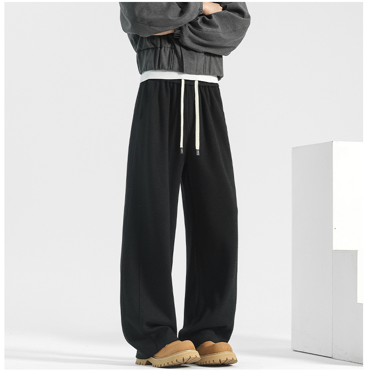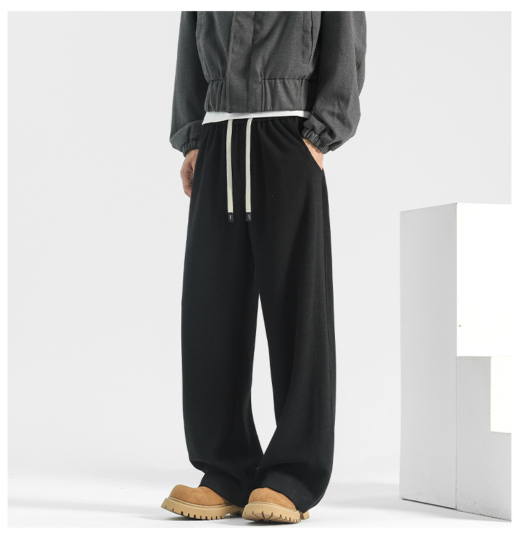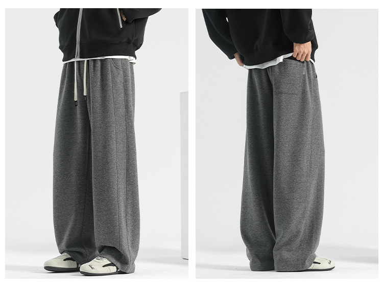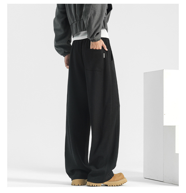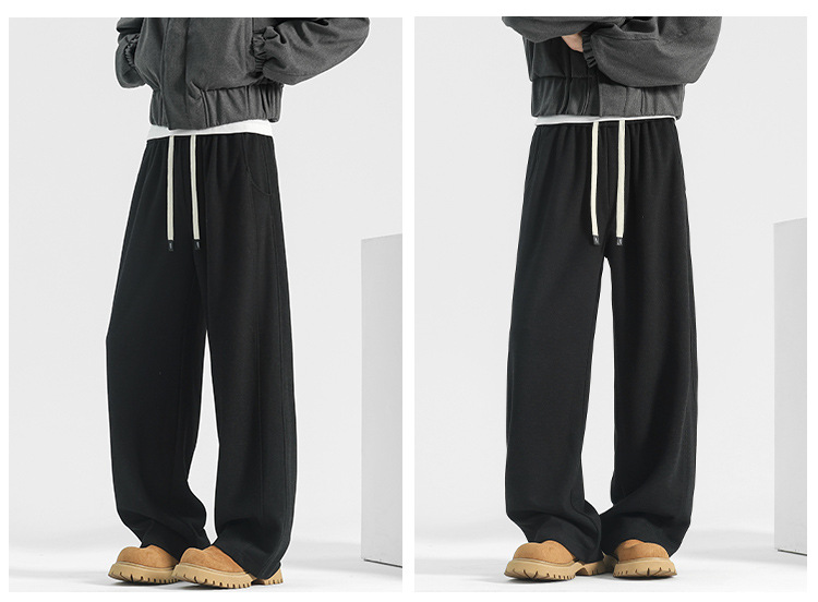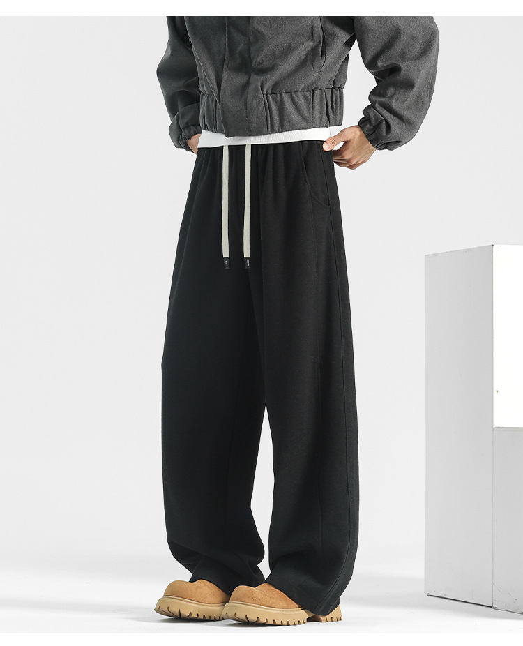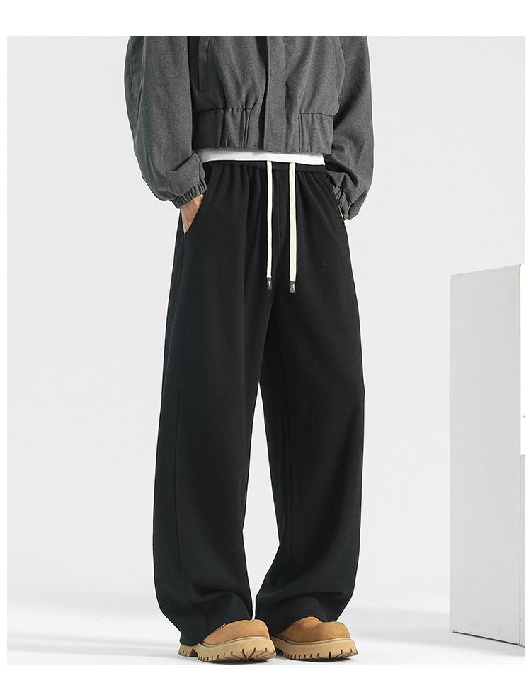 양모 스트레이트 팬츠 남성용 겨울용 루즈핏 와이드 팬츠 플리스 안감 캐주얼 롱 팬츠 남성용 스포츠 팬츠