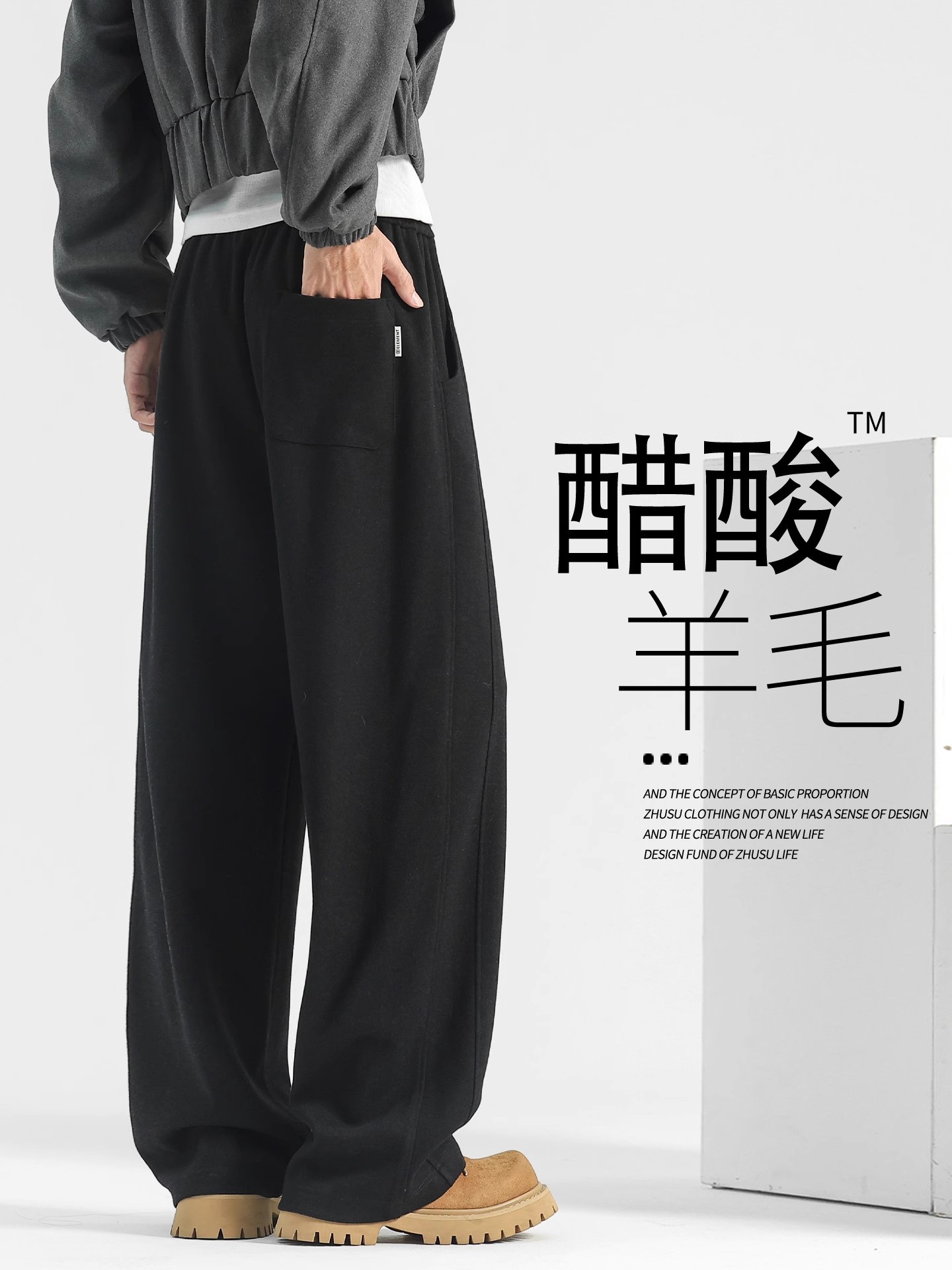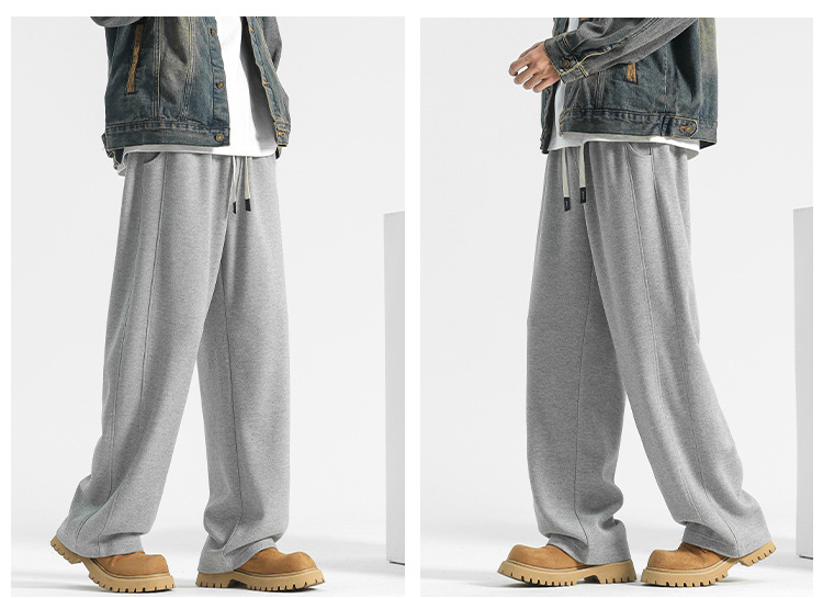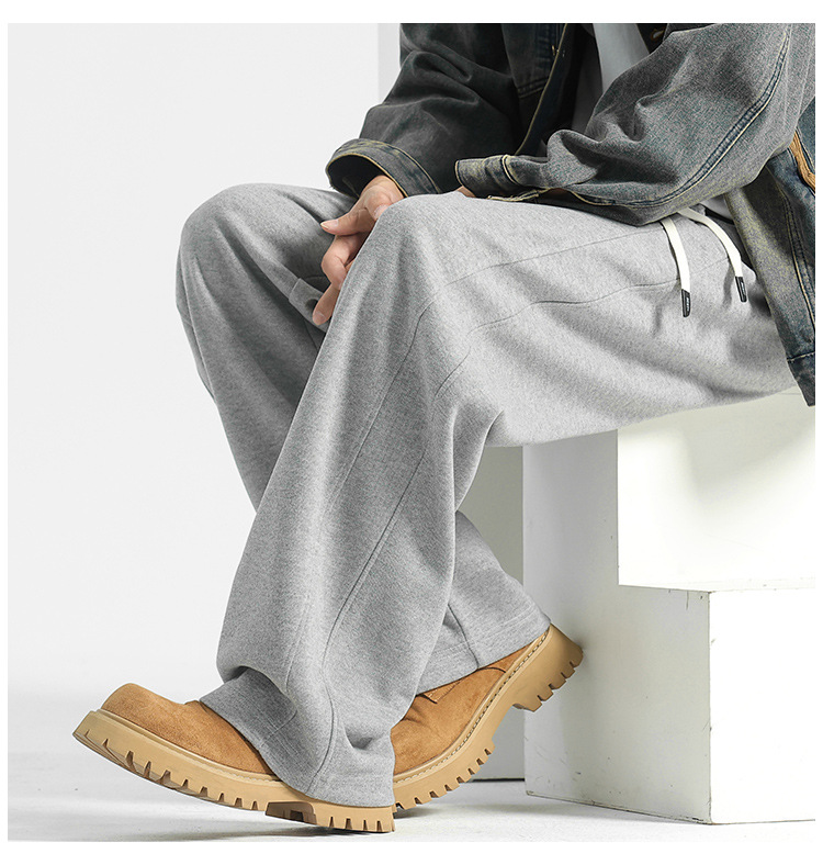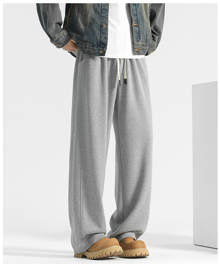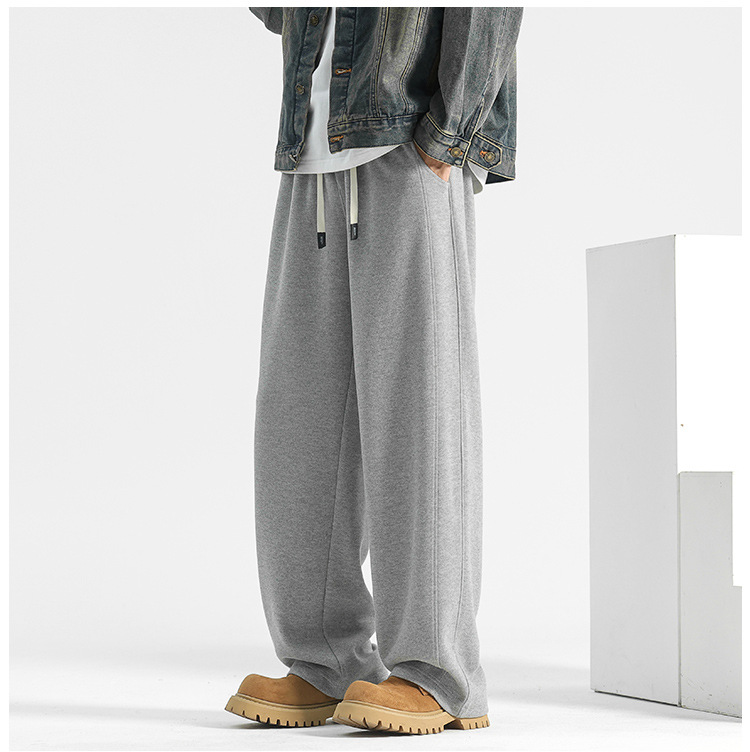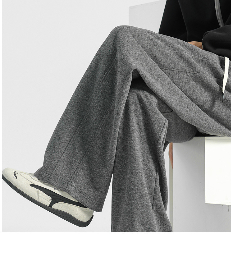 양모 스트레이트 팬츠 남성용 겨울용 루즈핏 와이드 팬츠 플리스 안감 캐주얼 롱 팬츠 남성용 스포츠 팬츠