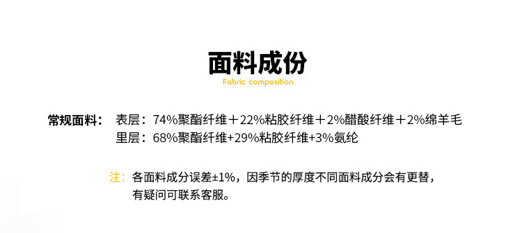 | 弹力 | 微弹 | 面料 | 羊毛混纺 |