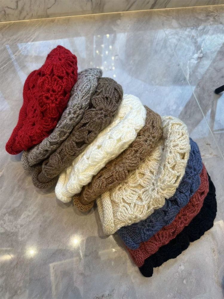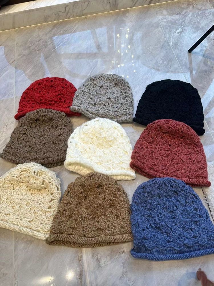 | 帽檐款式 | 无檐 | 颜色 | 钩花针织帽-卡其, 钩花针织帽-黑色, 钩花针织帽-咖啡, 钩花针织帽-白色, 钩花针织帽-红色, 钩花针织帽-藏青, 钩花针织帽-米色, 钩花针织帽-酒红 |